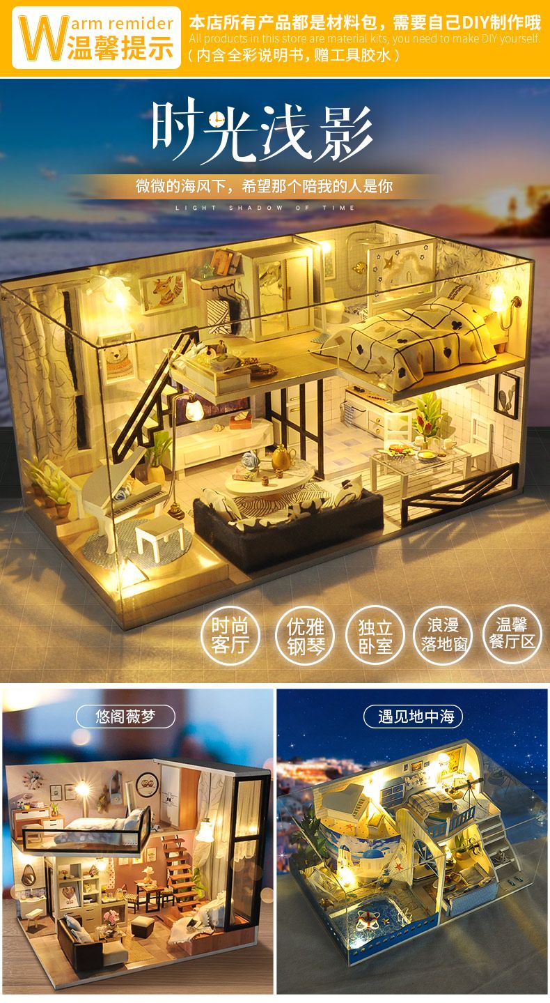 diy手工小屋建筑拼装模型木质房子微缩场景玩具生日礼物女生闺蜜
