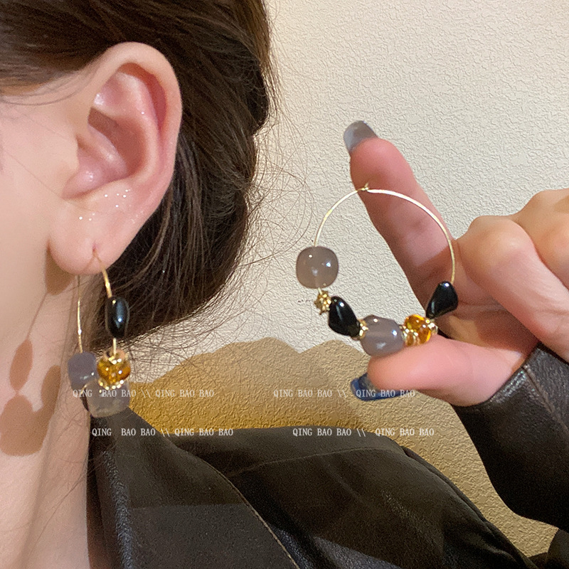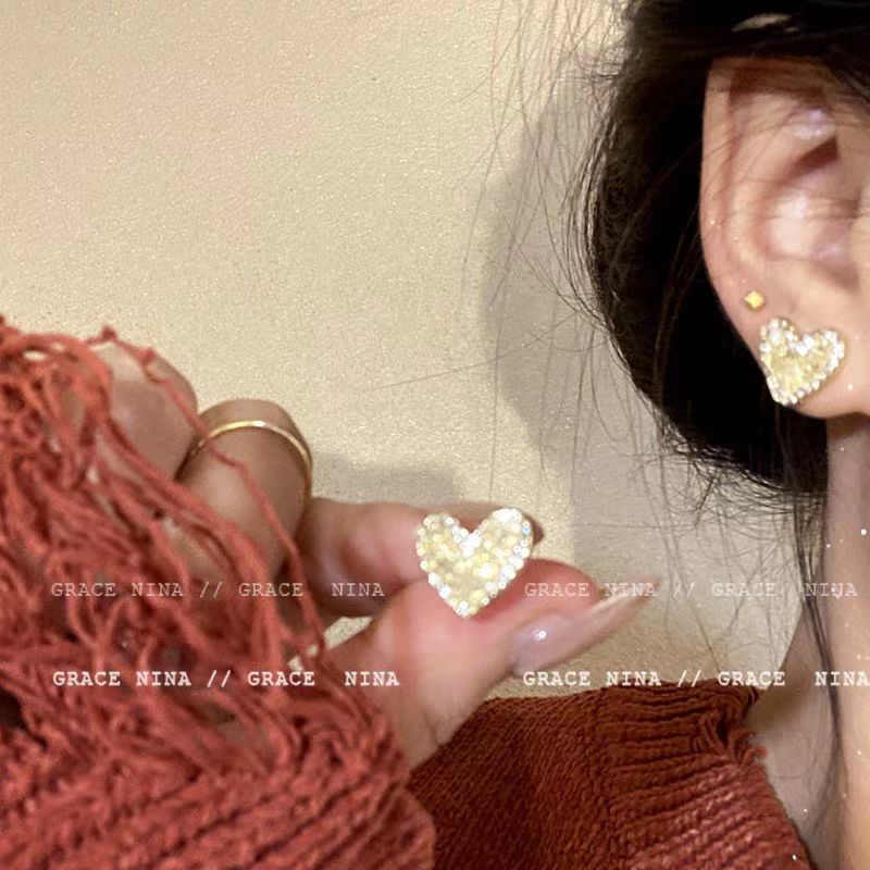 925银针珍珠锆石耳钉女时尚气质百搭高级感简约设计感耳环耳饰品