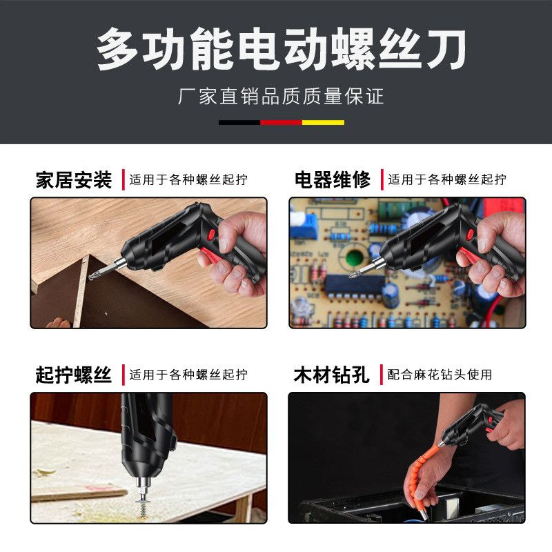 电动螺丝刀套装螺丝批头家用多功能充电式小型手钻带正反转电起子