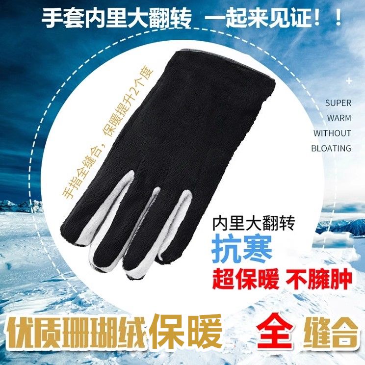 真皮手套男士冬季加绒加厚保暖女士羊皮骑行摩托车触屏薄款皮手套