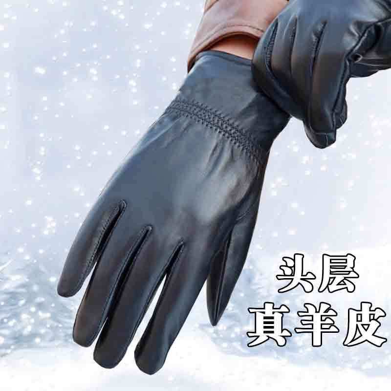 薄款单层山羊皮真皮手套男士软皮加绒冬季保暖加厚骑行摩托车防水