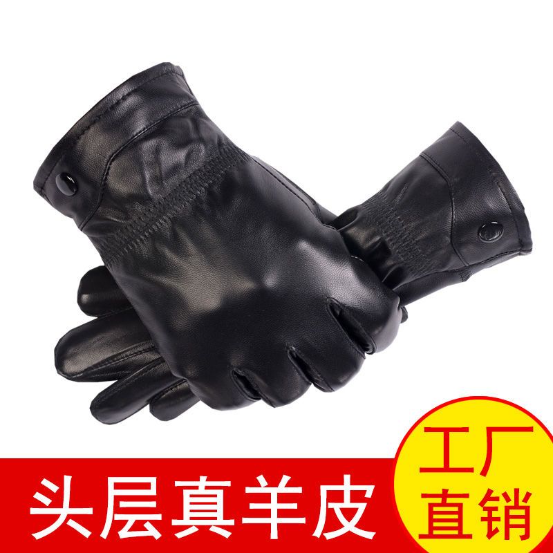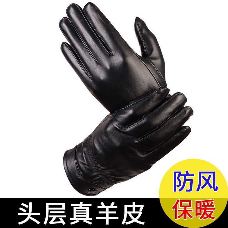 真皮手套男士女士骑行摩托车冬季绵羊皮手套加绒加厚保暖开车薄款