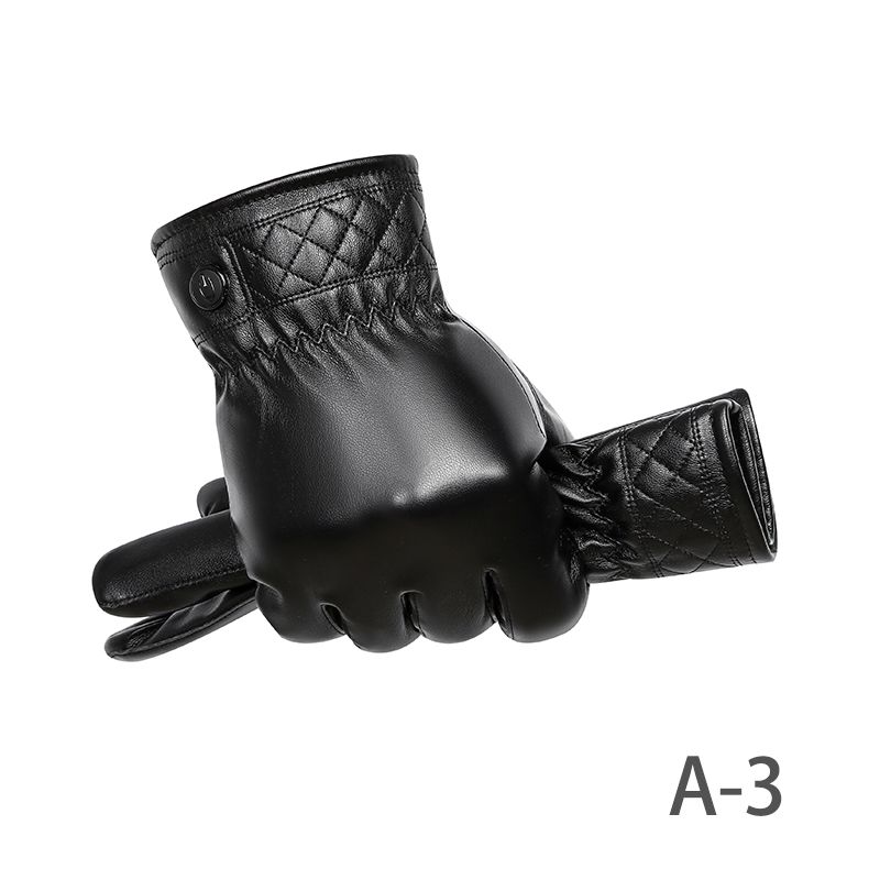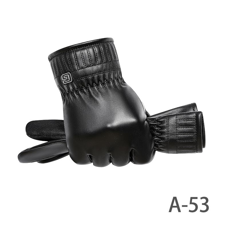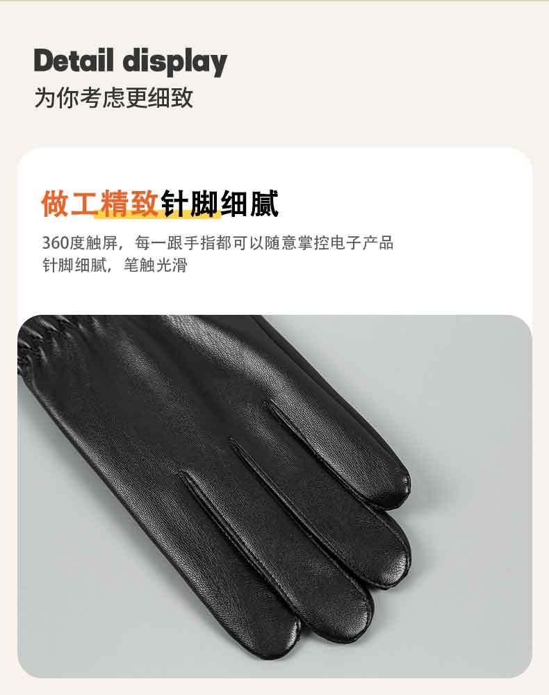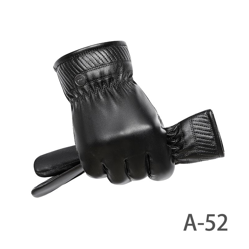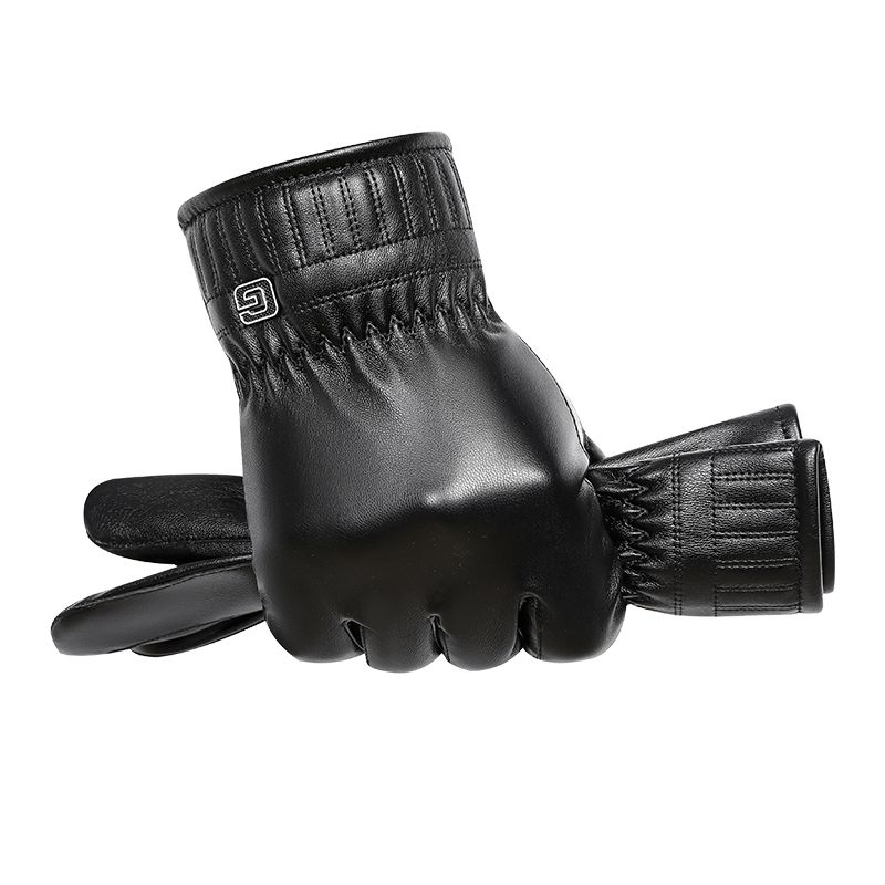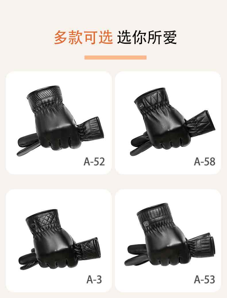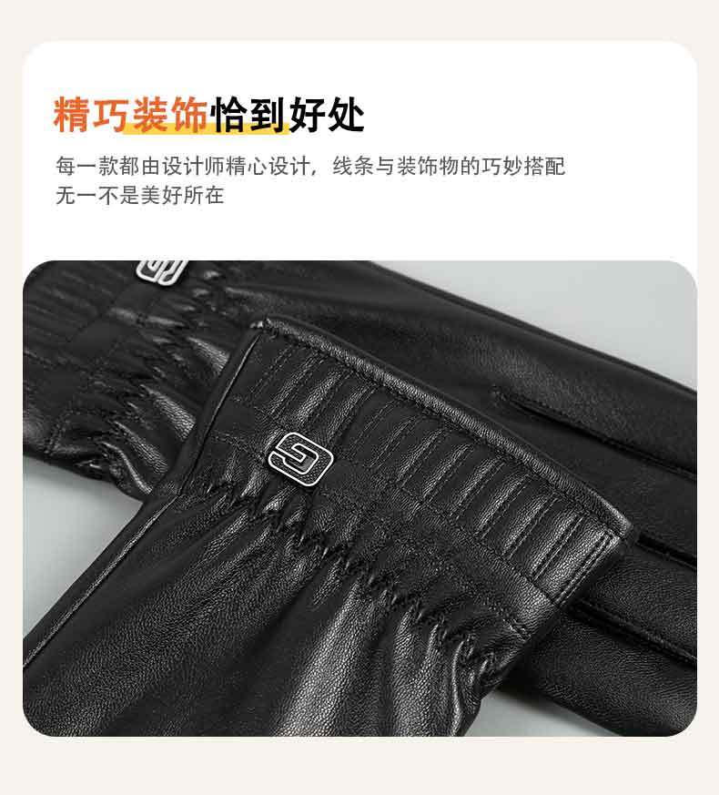 皮手套男全掌触屏防寒防风防滑软皮羊皮纹薄绒户外骑行手套秋冬款