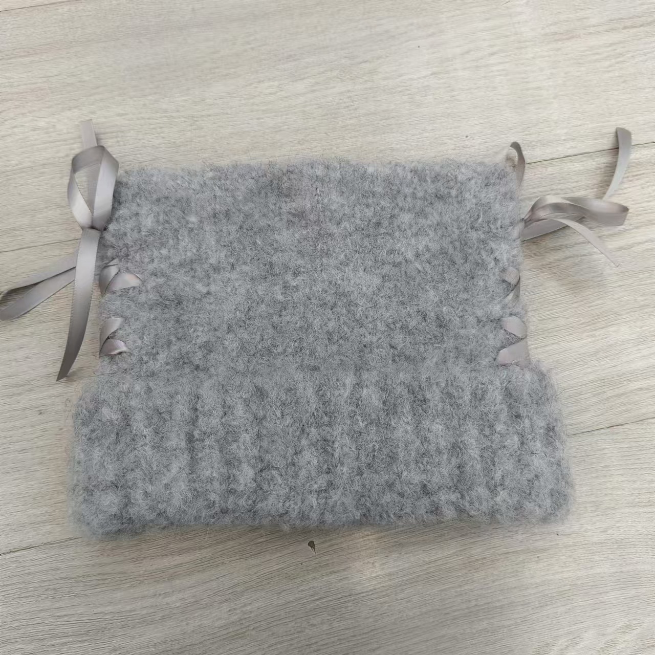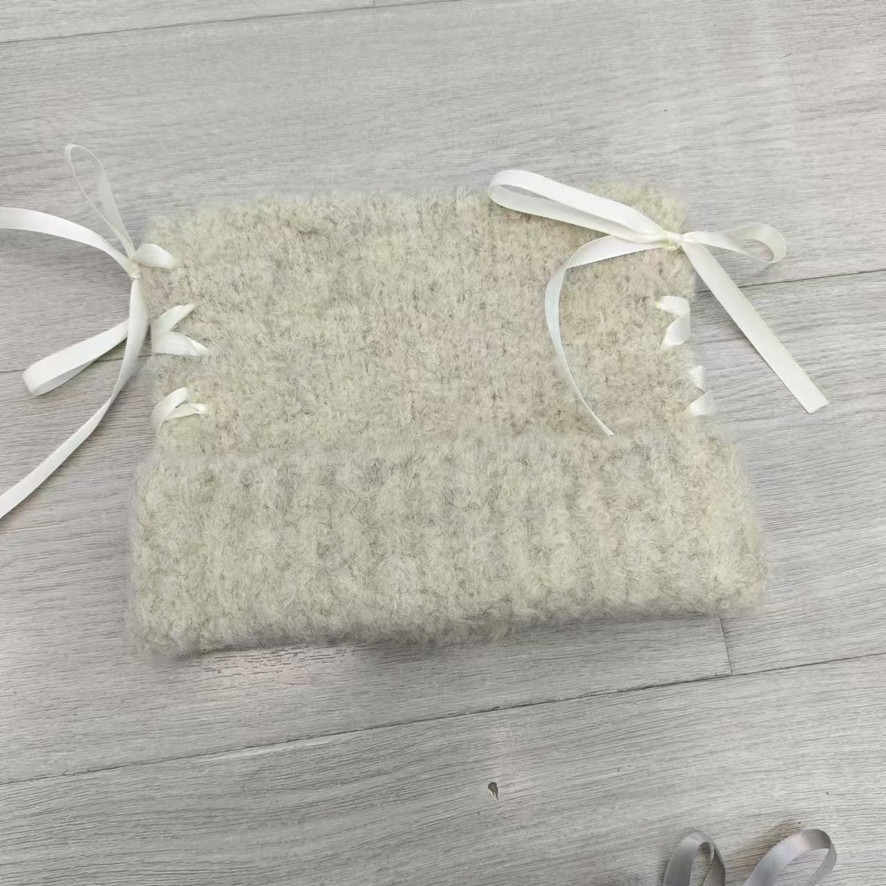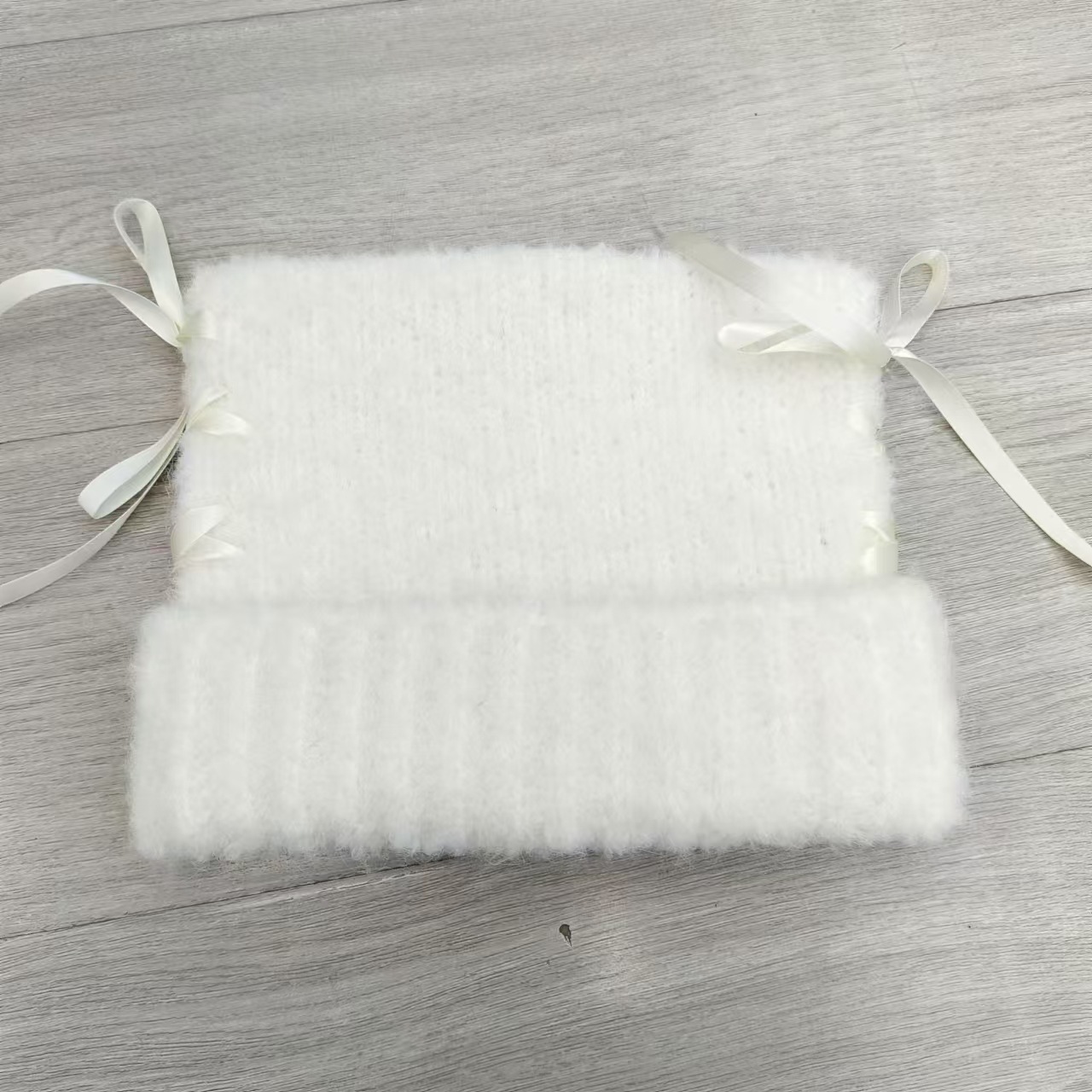 韩版甜美可爱猫耳朵毛绒针织保暖蝴蝶结毛线帽女绑带保暖包头帽