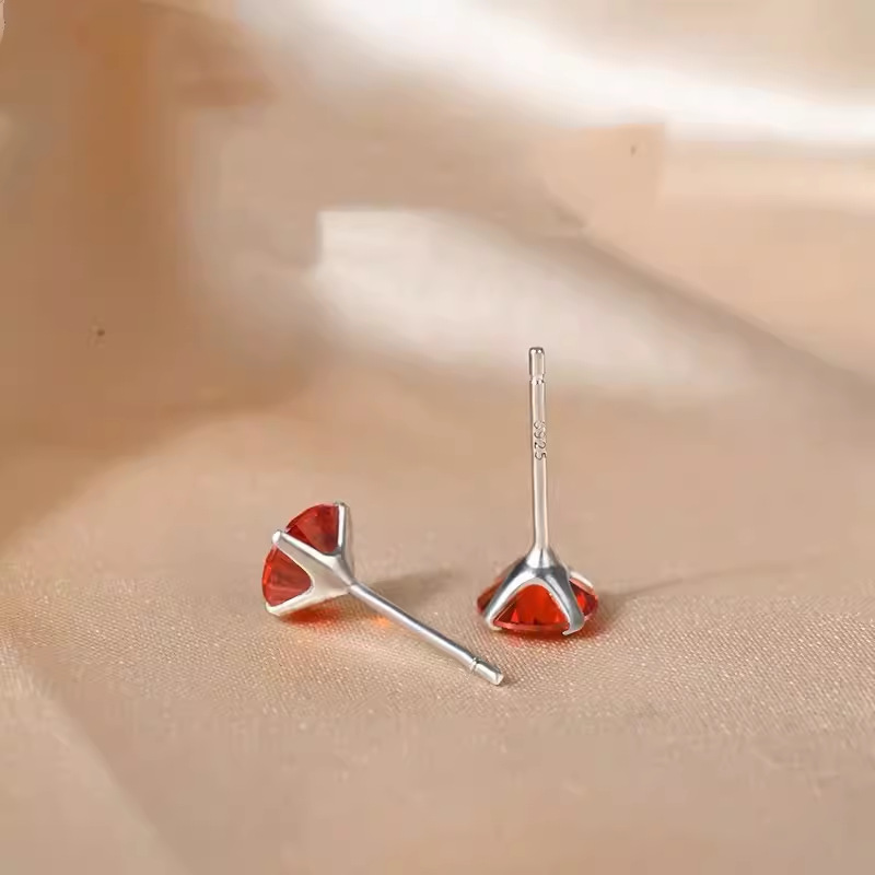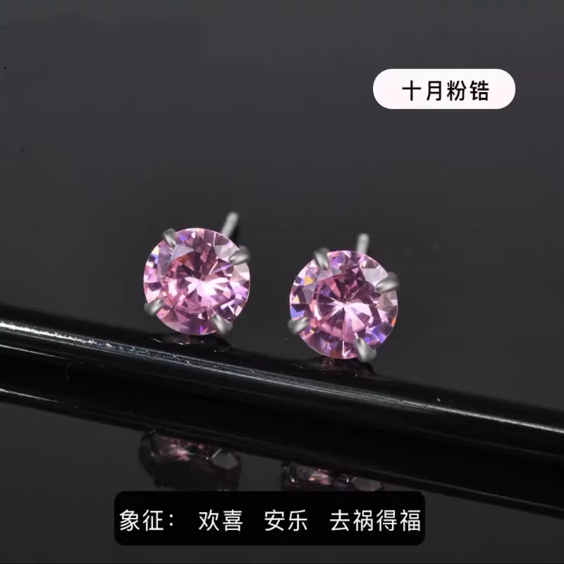 耳钉纯银S999锆石耳洞耳骨钉防过敏彩色闪钻石简约高级流苏耳饰