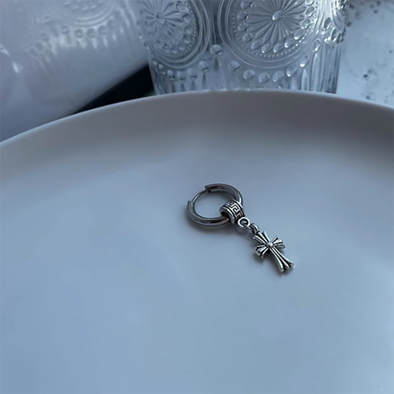 钛钢十字架耳钉帅气ins男个性耳圈不锈钢耳夹欧美冷淡风百搭气质