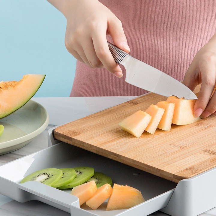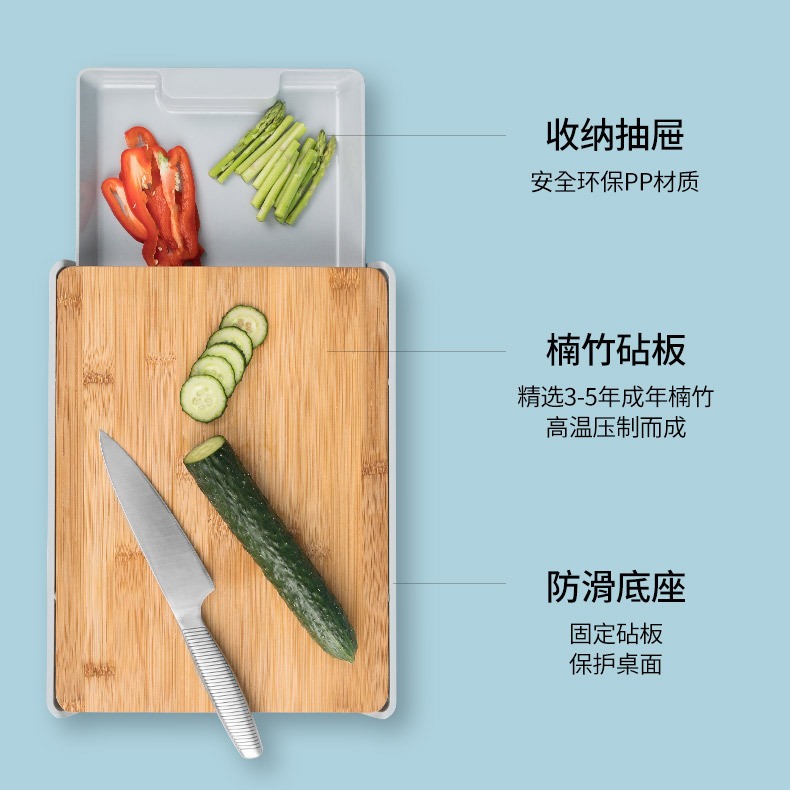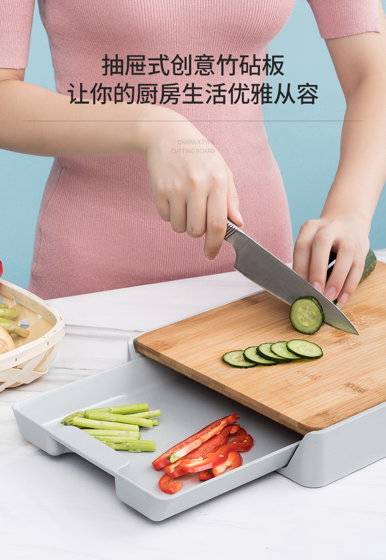 厂家定制多功能菜板 亚马逊外贸砧板竹制塑料抽屉式多功能菜板