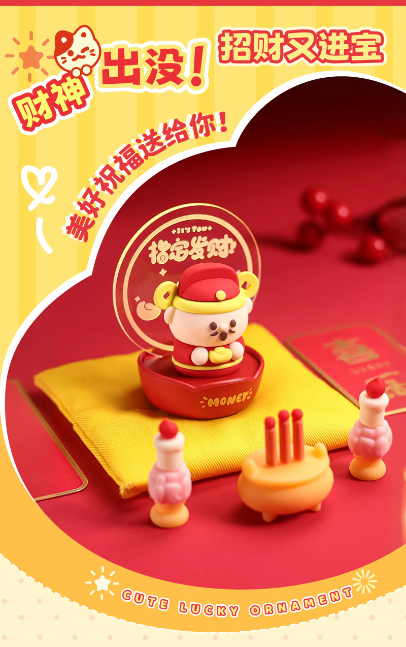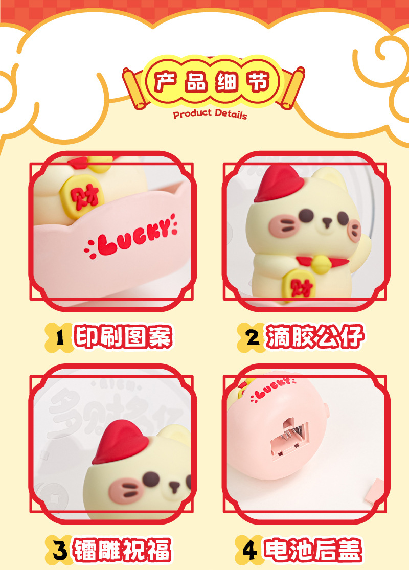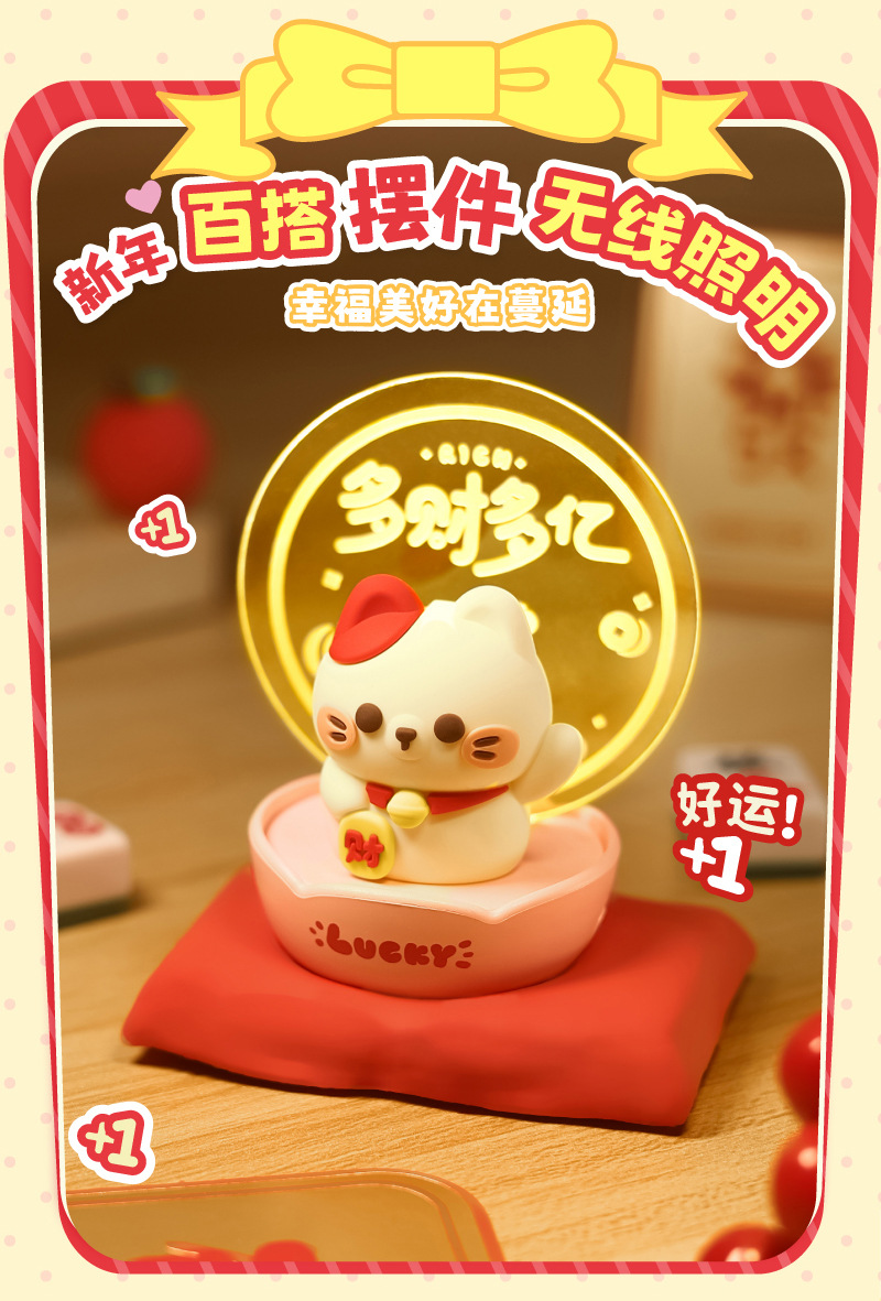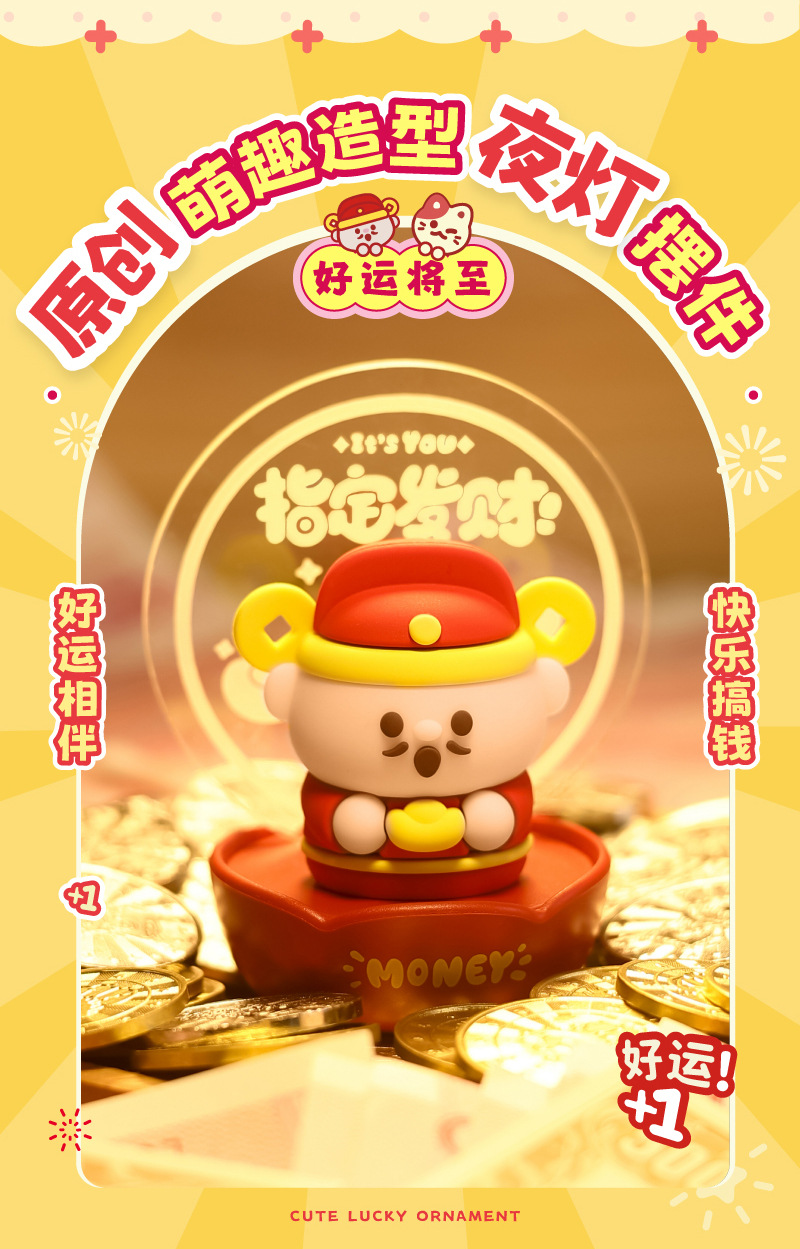 财神爷小夜灯猫桌面摆件可爱手办家用装饰台灯新年礼物