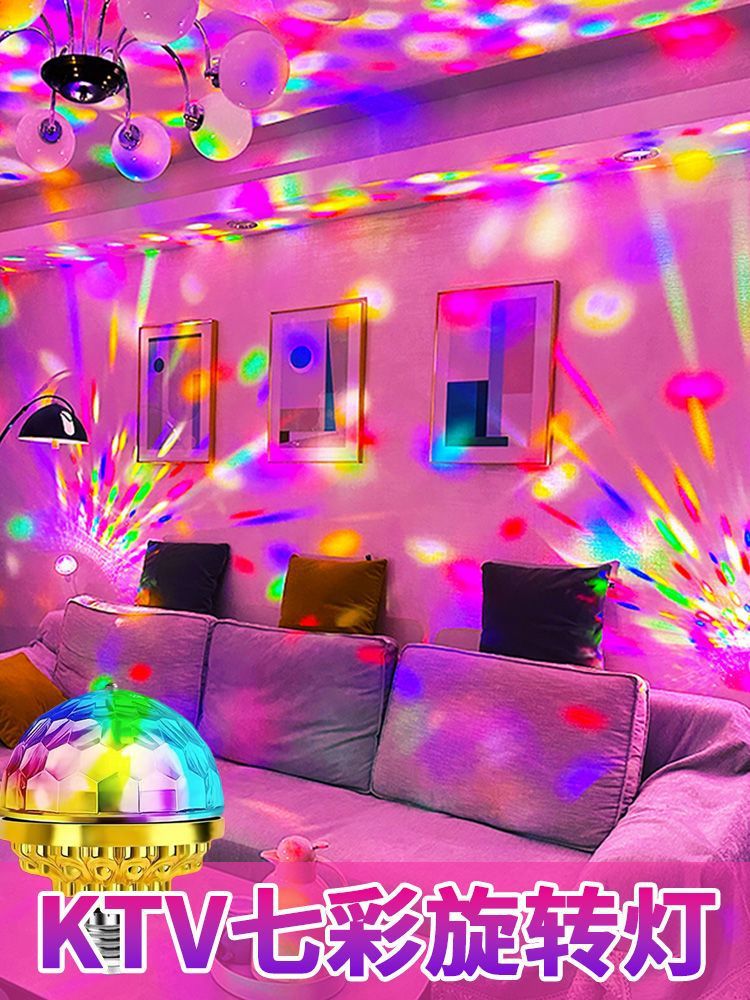 爆款七彩旋转魔球KTV蹦迪闪光灯网红直播舞台灯金色爆闪氛围彩灯
