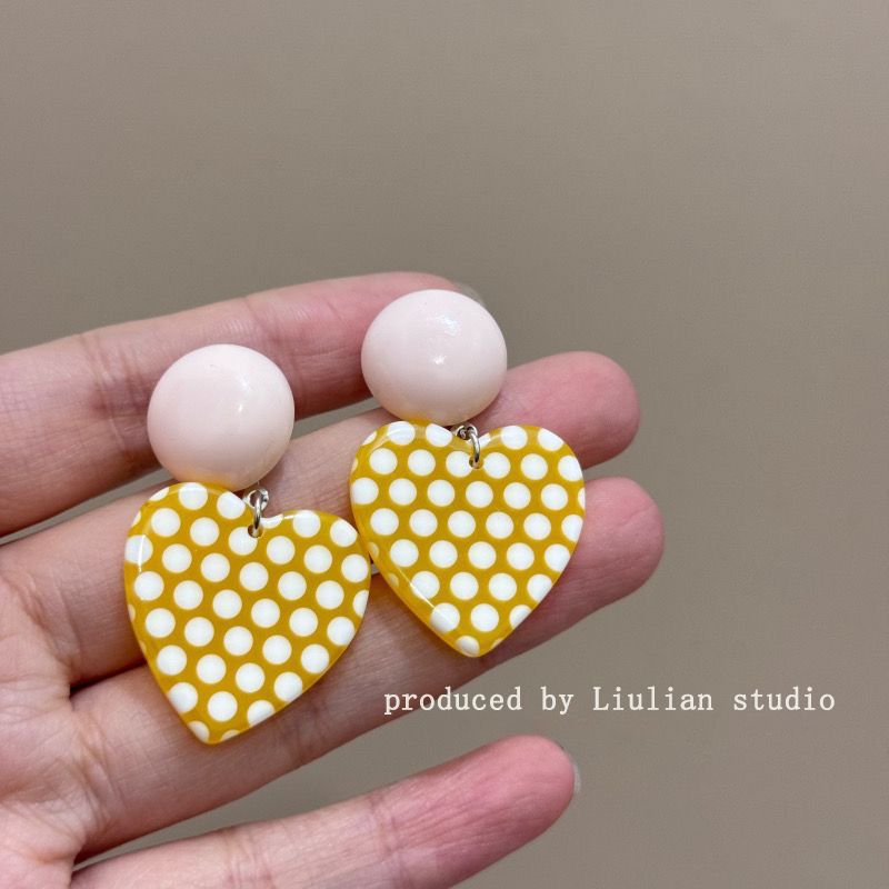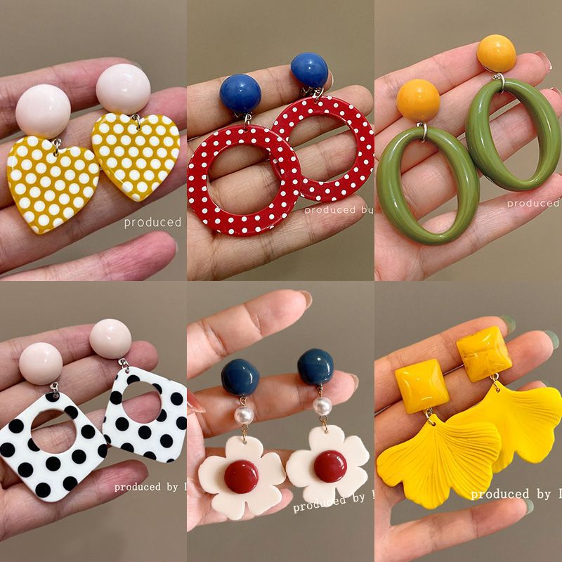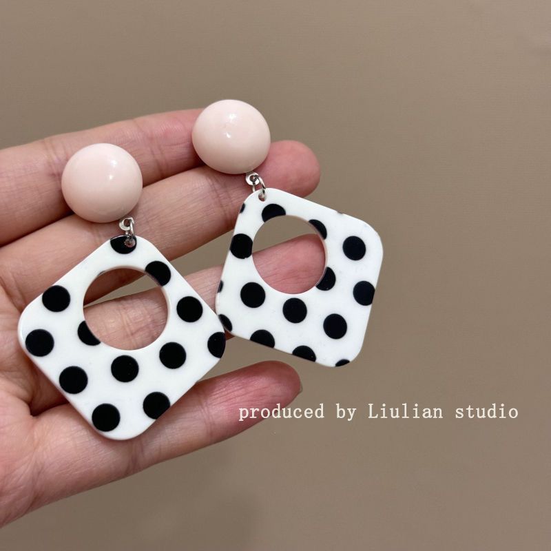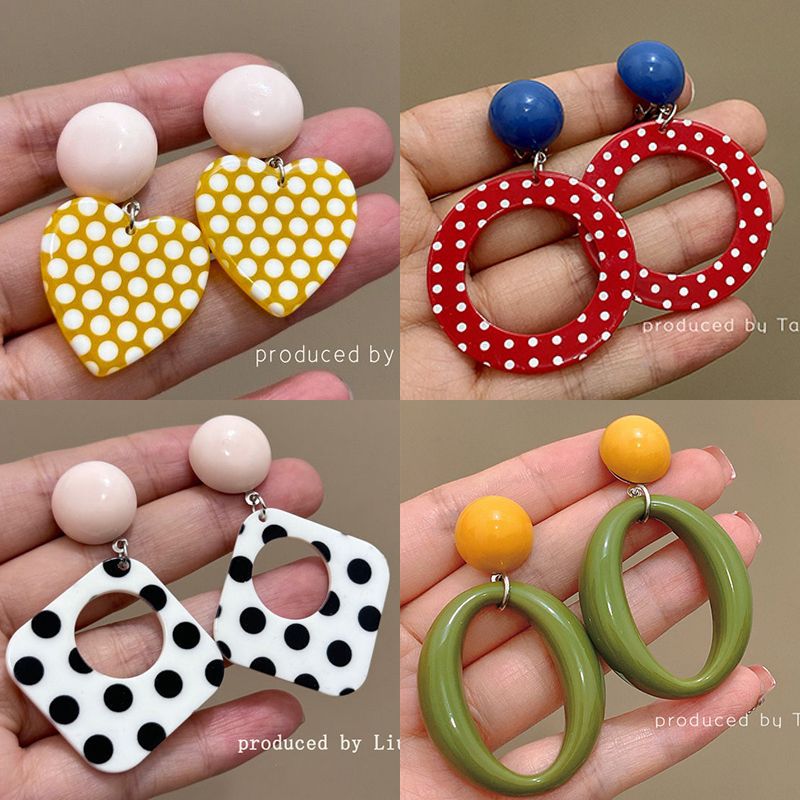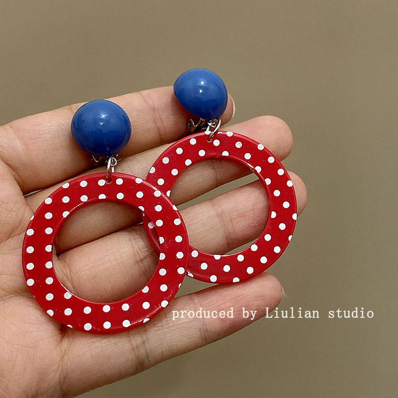 复古港风俏皮少女耳钉夸张波点大圆形耳环气质亮眼撞色耳饰百搭女