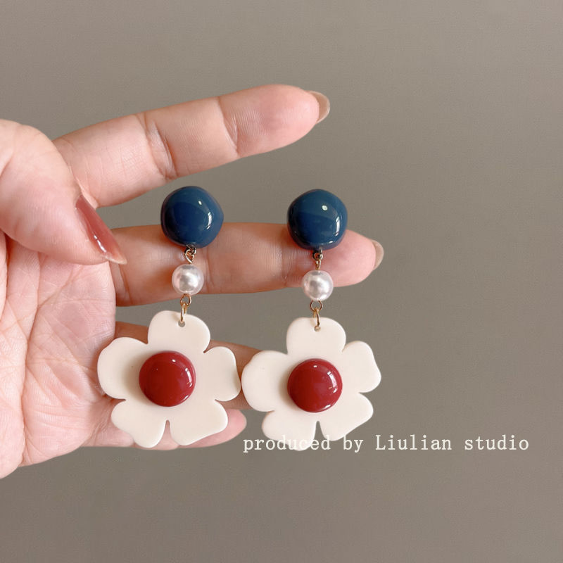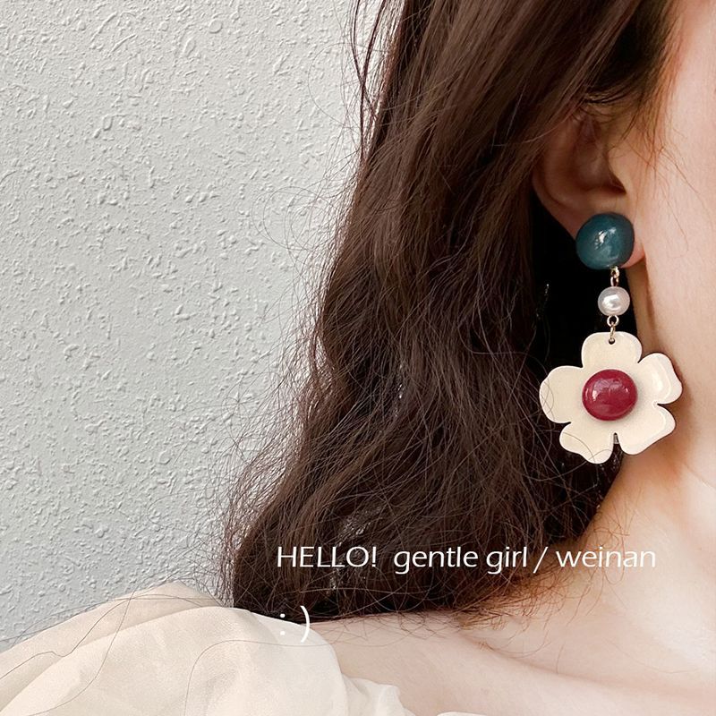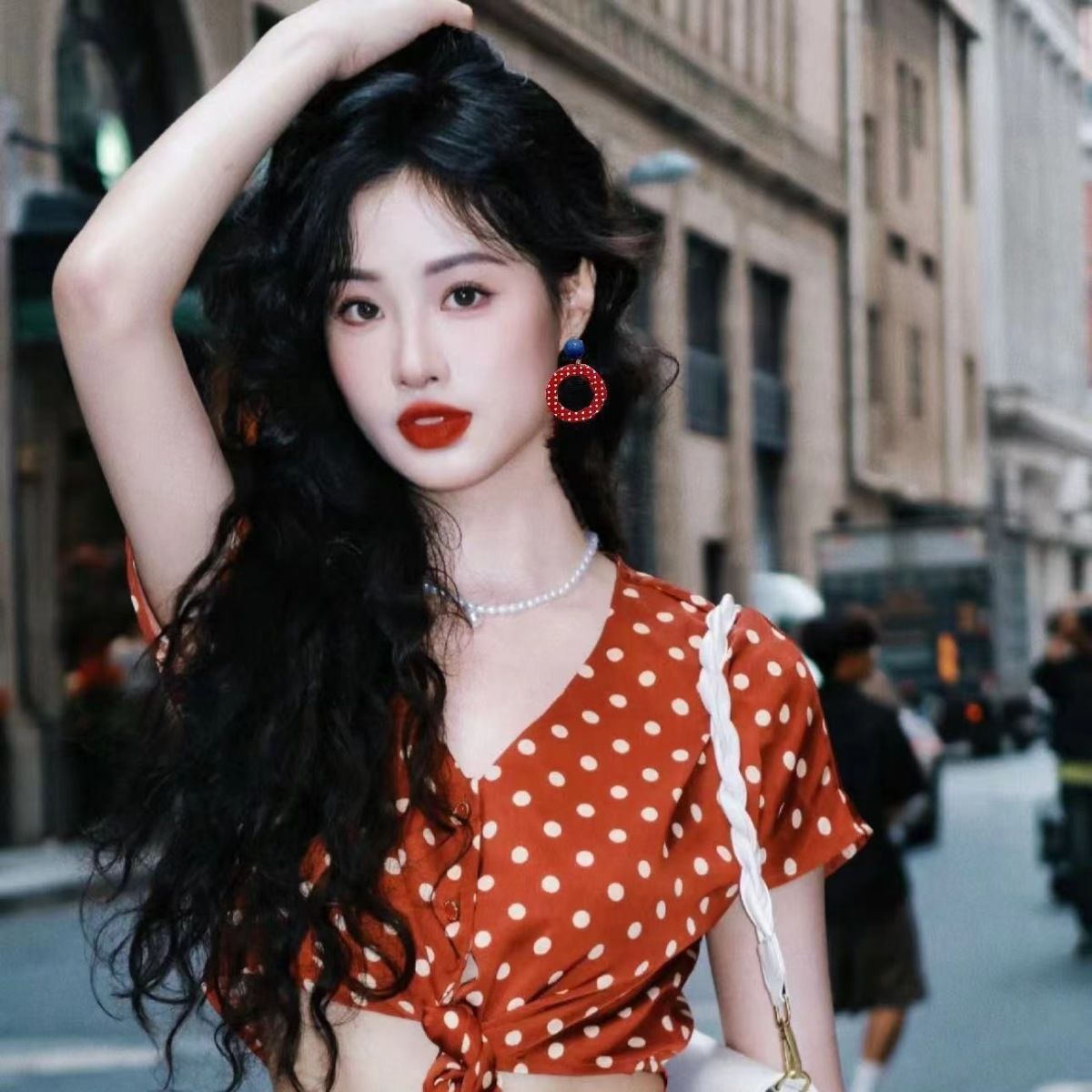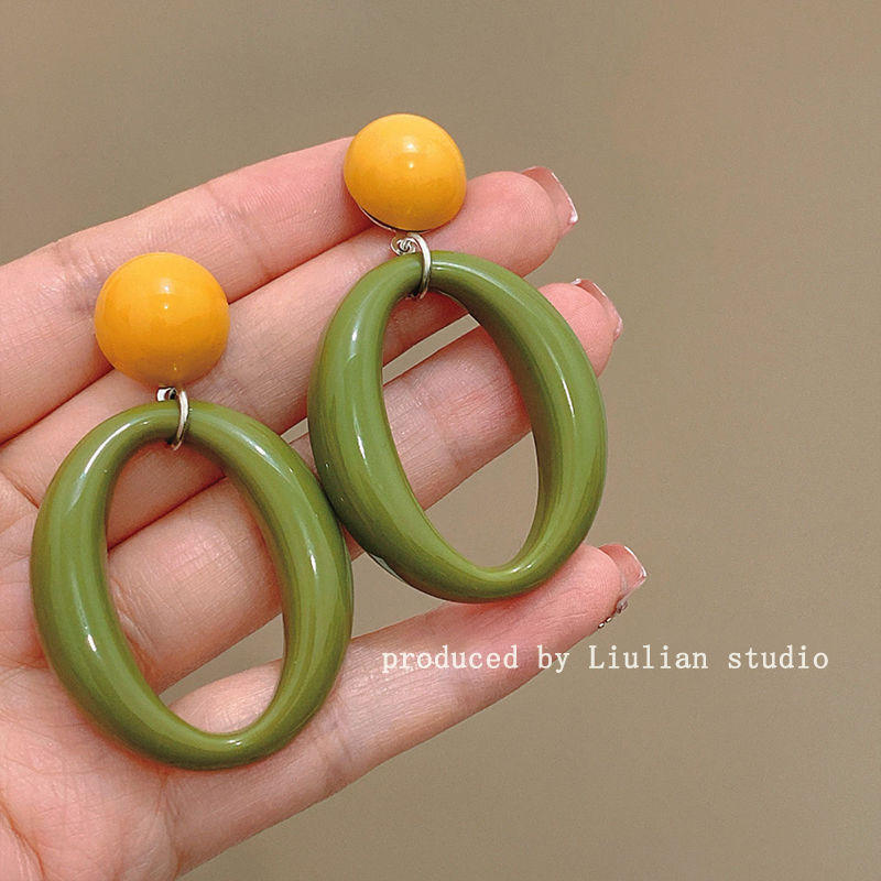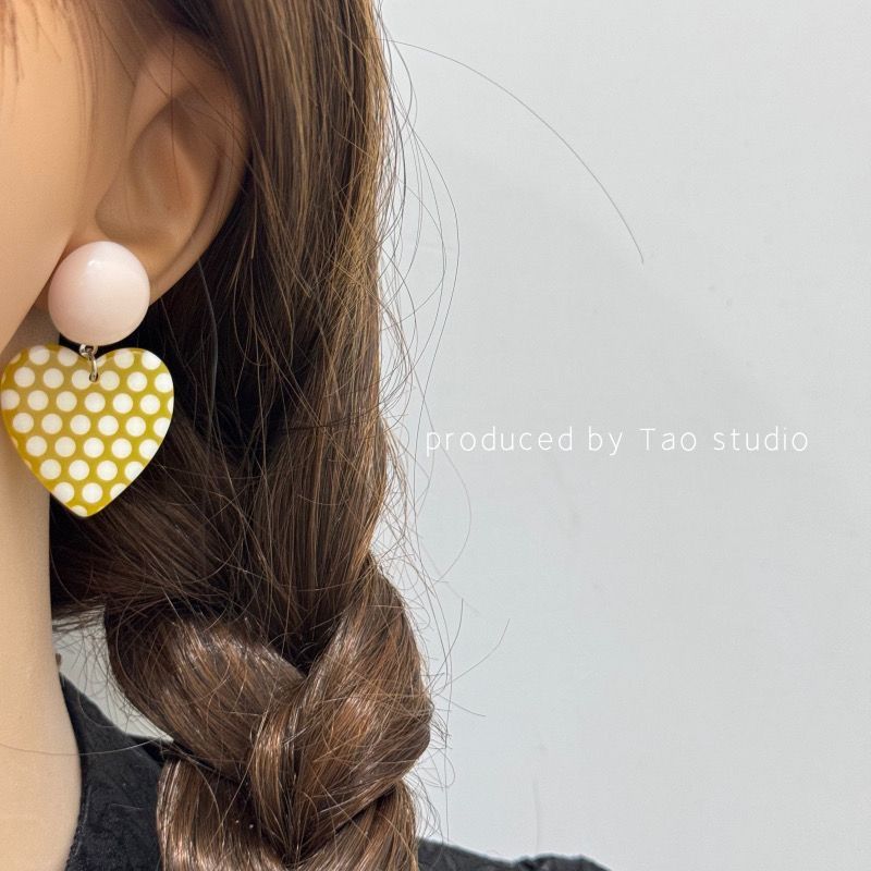 复古港风俏皮少女耳钉夸张波点大圆形耳环气质亮眼撞色耳饰百搭女