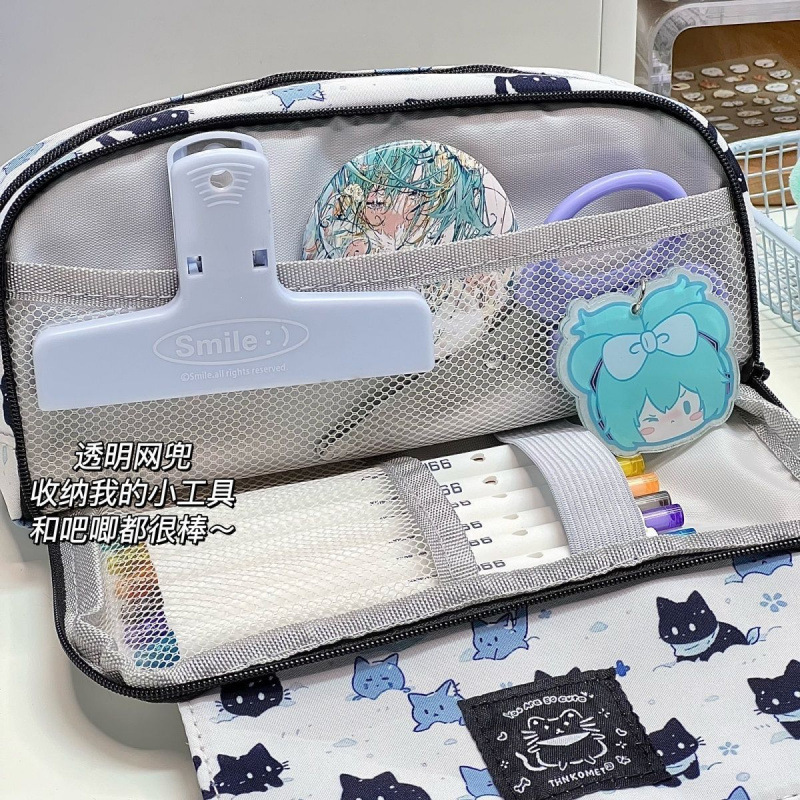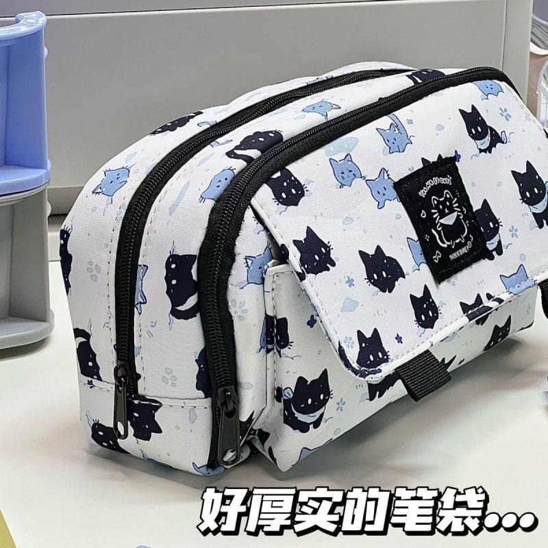 新爆款雪地小猫笔袋高颜值双层多功能印花小学生初中生高中生笔袋