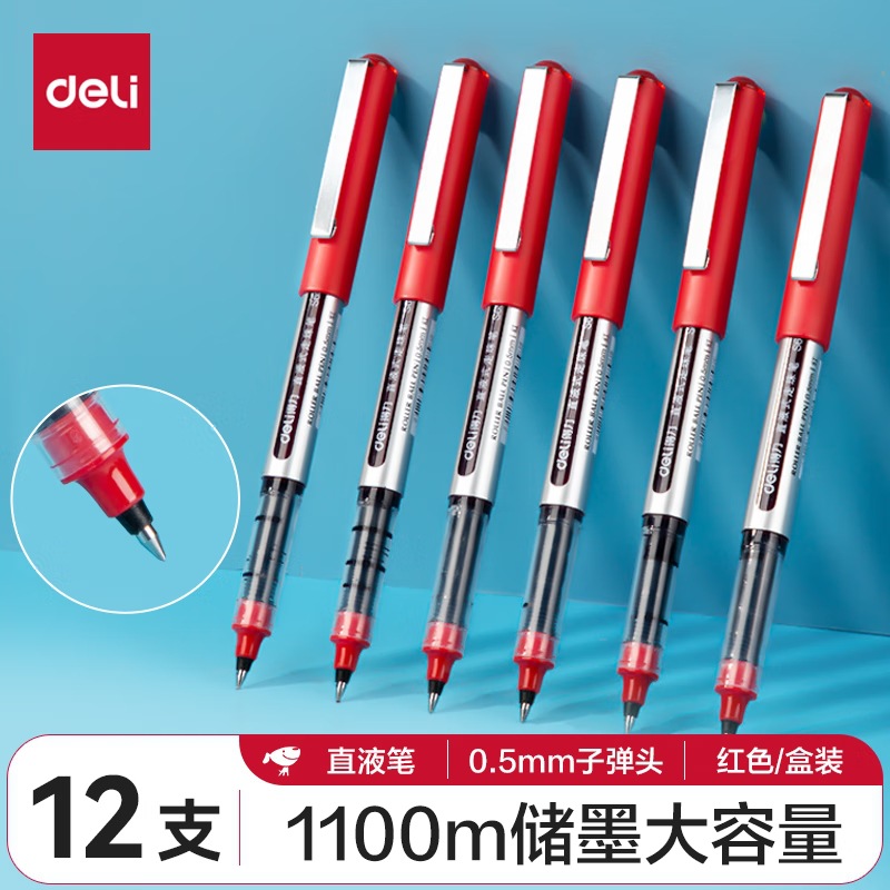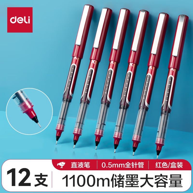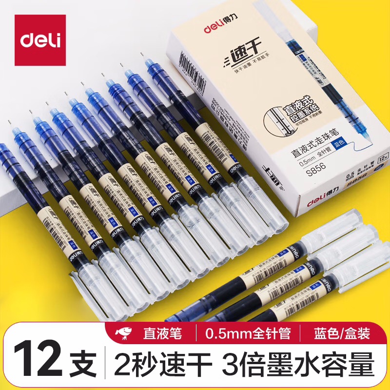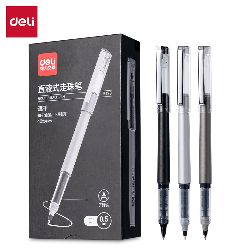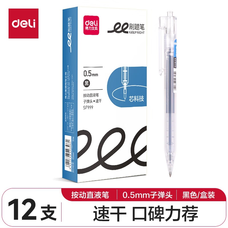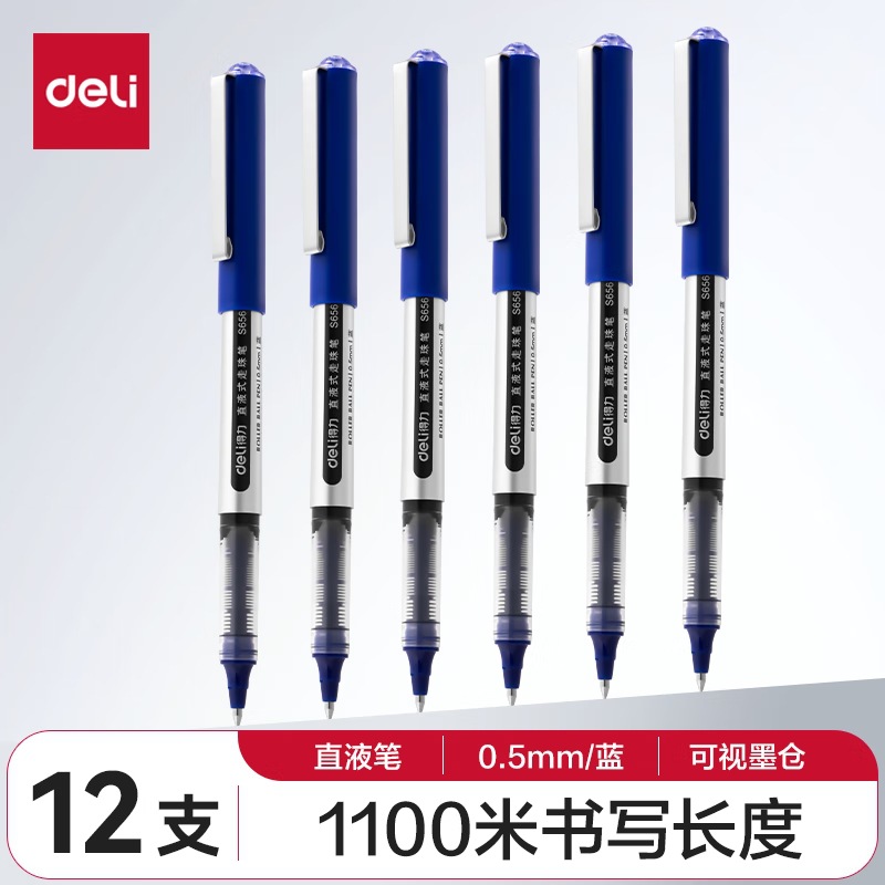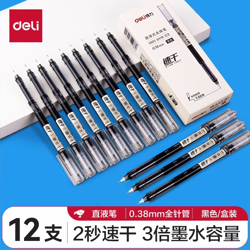 De.li晨光直液式走珠笔全针管大容量速干考试笔学生刷题笔签字笔
