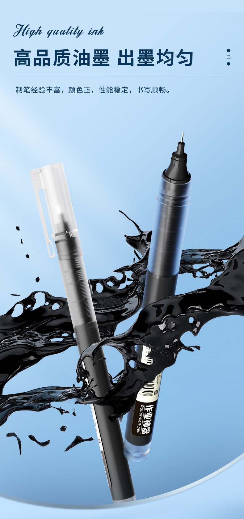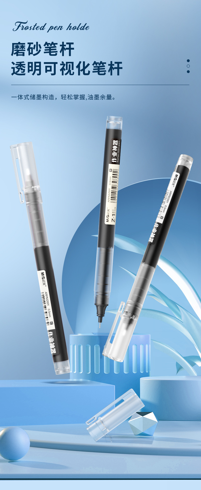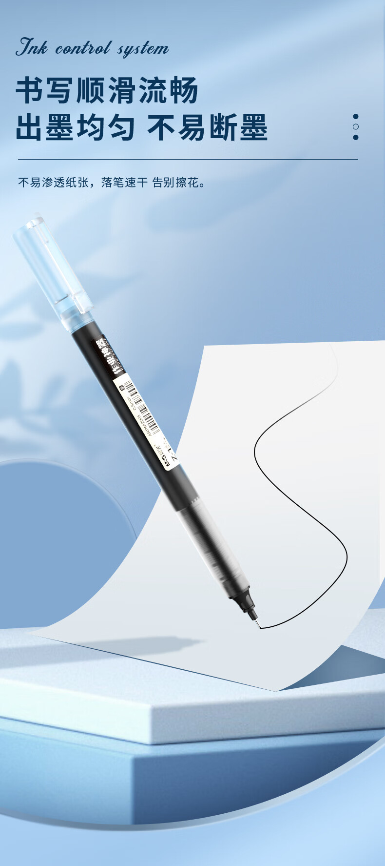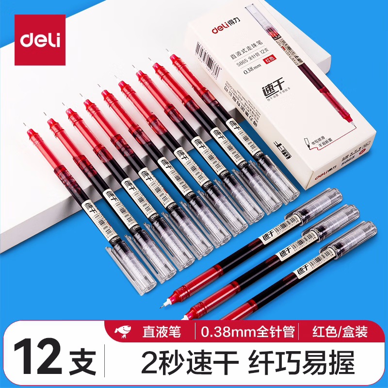 De.li晨光直液式走珠笔全针管大容量速干考试笔学生刷题笔签字笔
