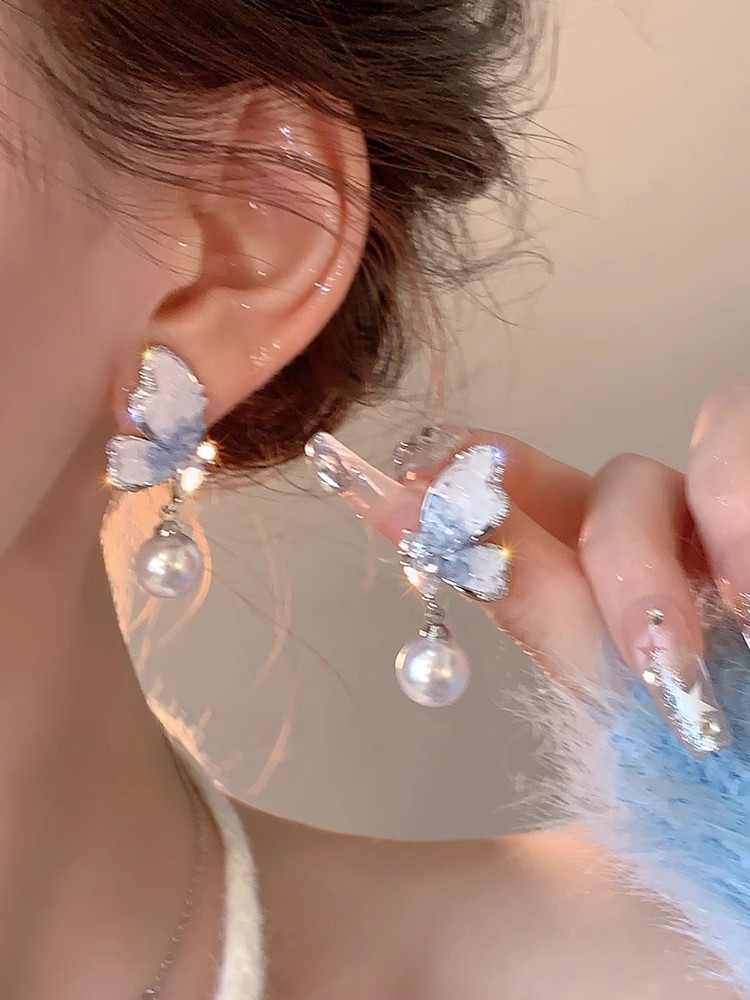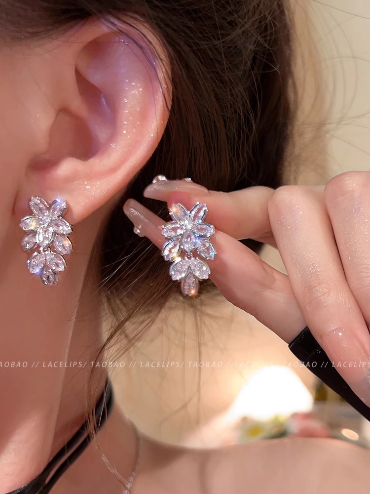 轻奢高级感锆石流苏耳环女小众设计百搭珍珠花朵耳钉简约气质耳饰