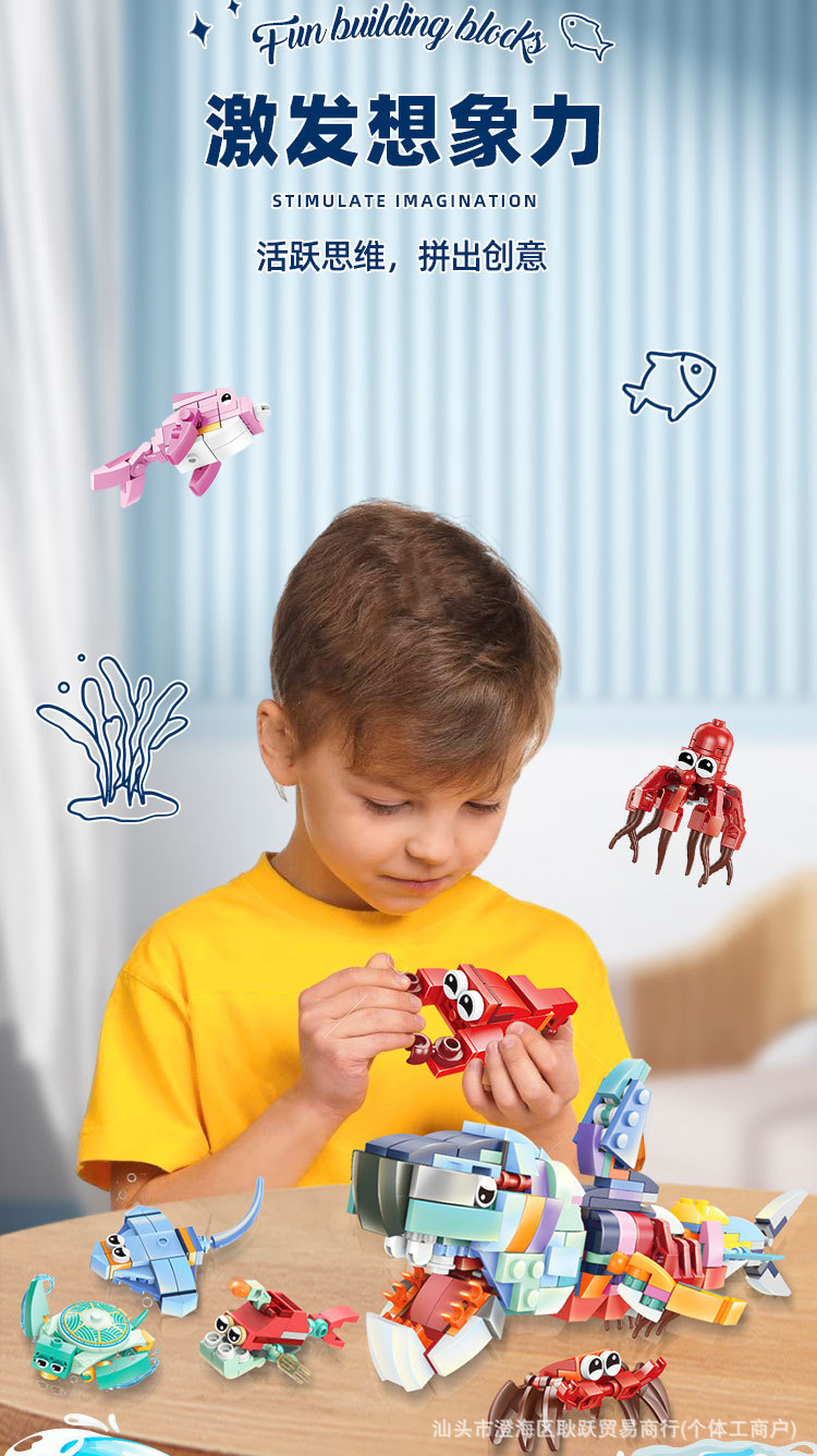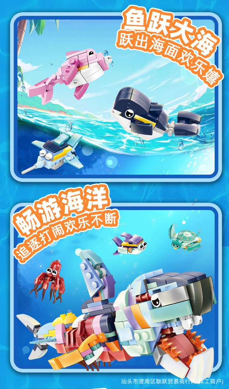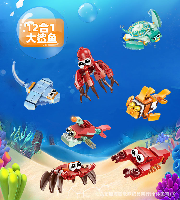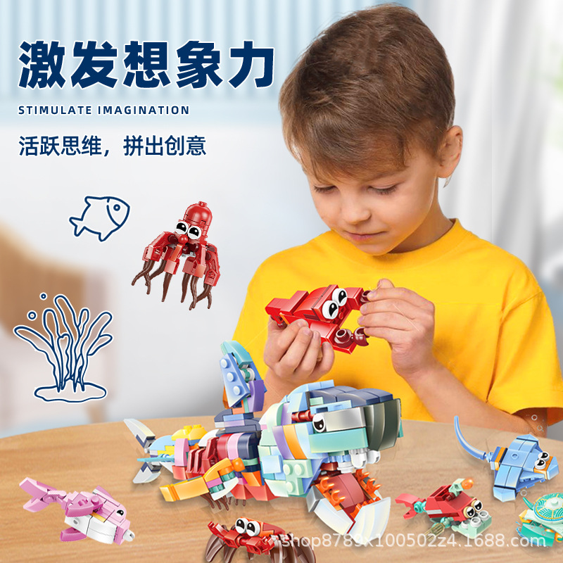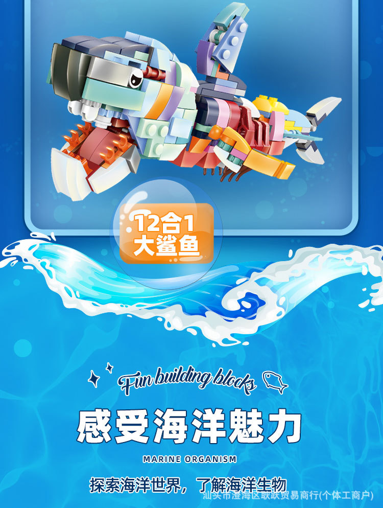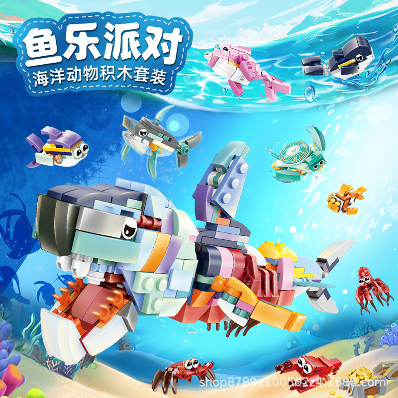 兼容乐高小学生海洋动物积木大白鲨益智拼装玩具男孩盒装颗粒礼物
