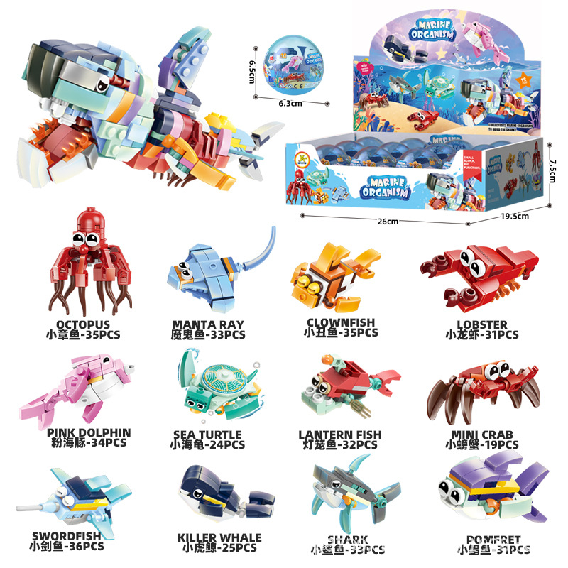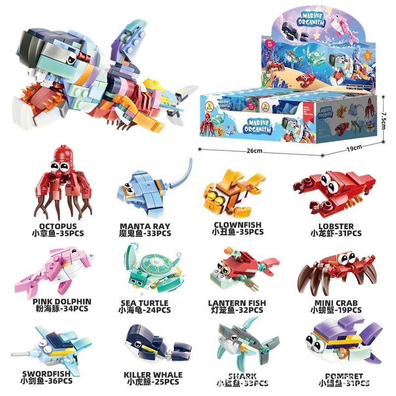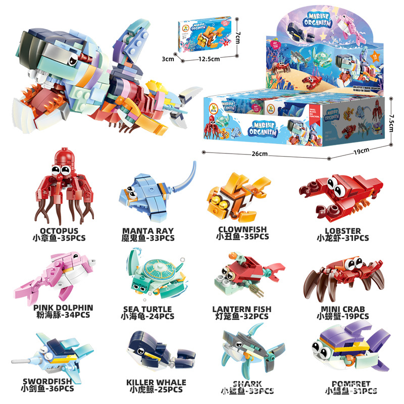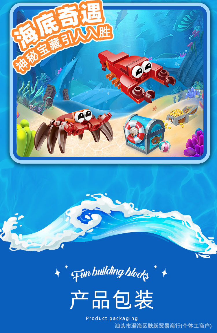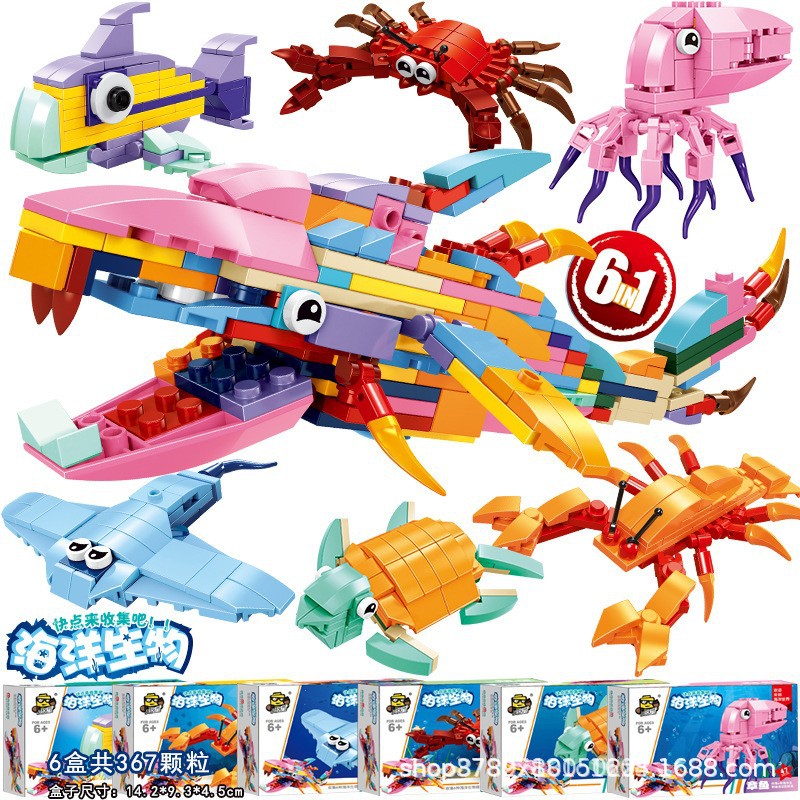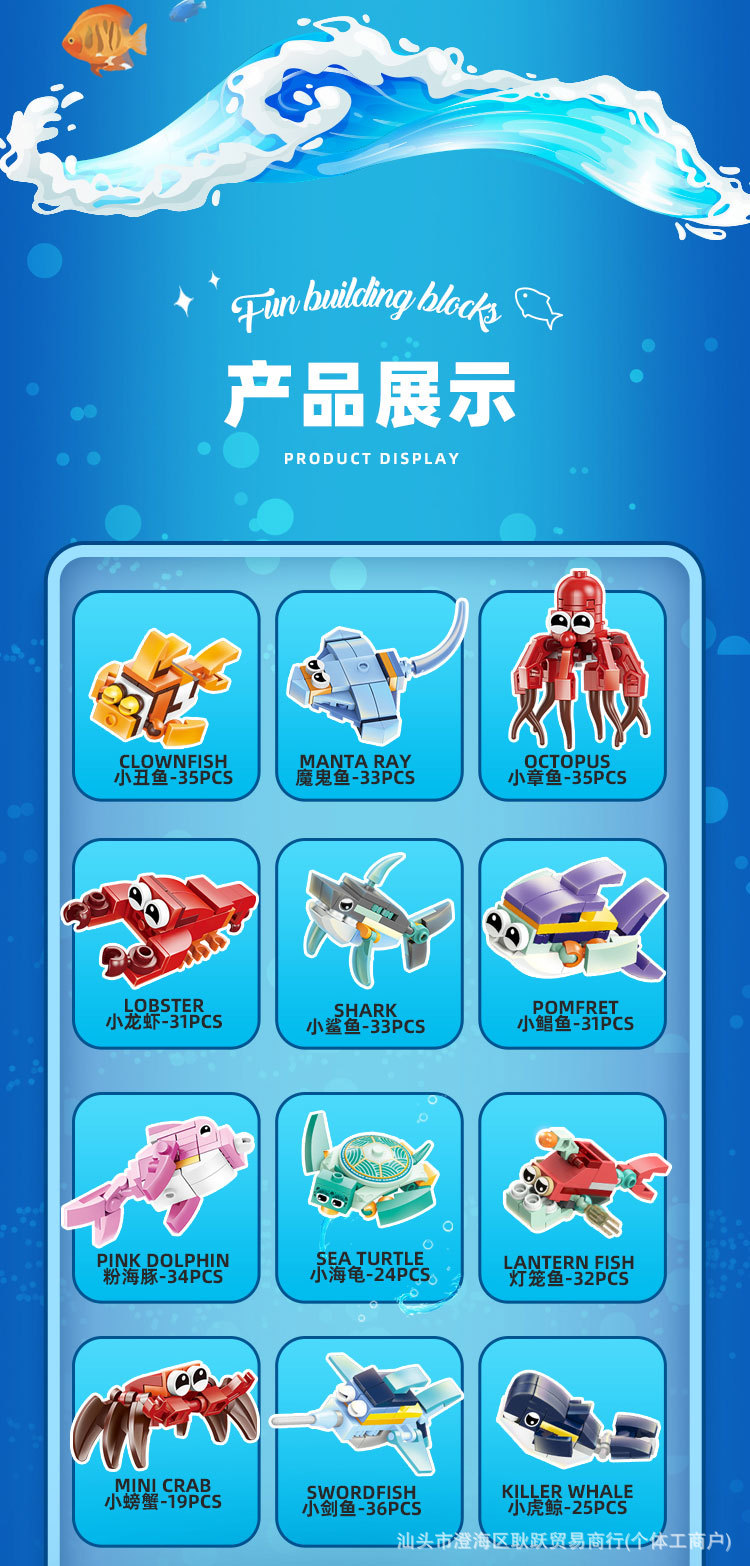 兼容乐高小学生海洋动物积木大白鲨益智拼装玩具男孩盒装颗粒礼物