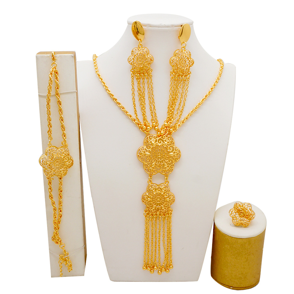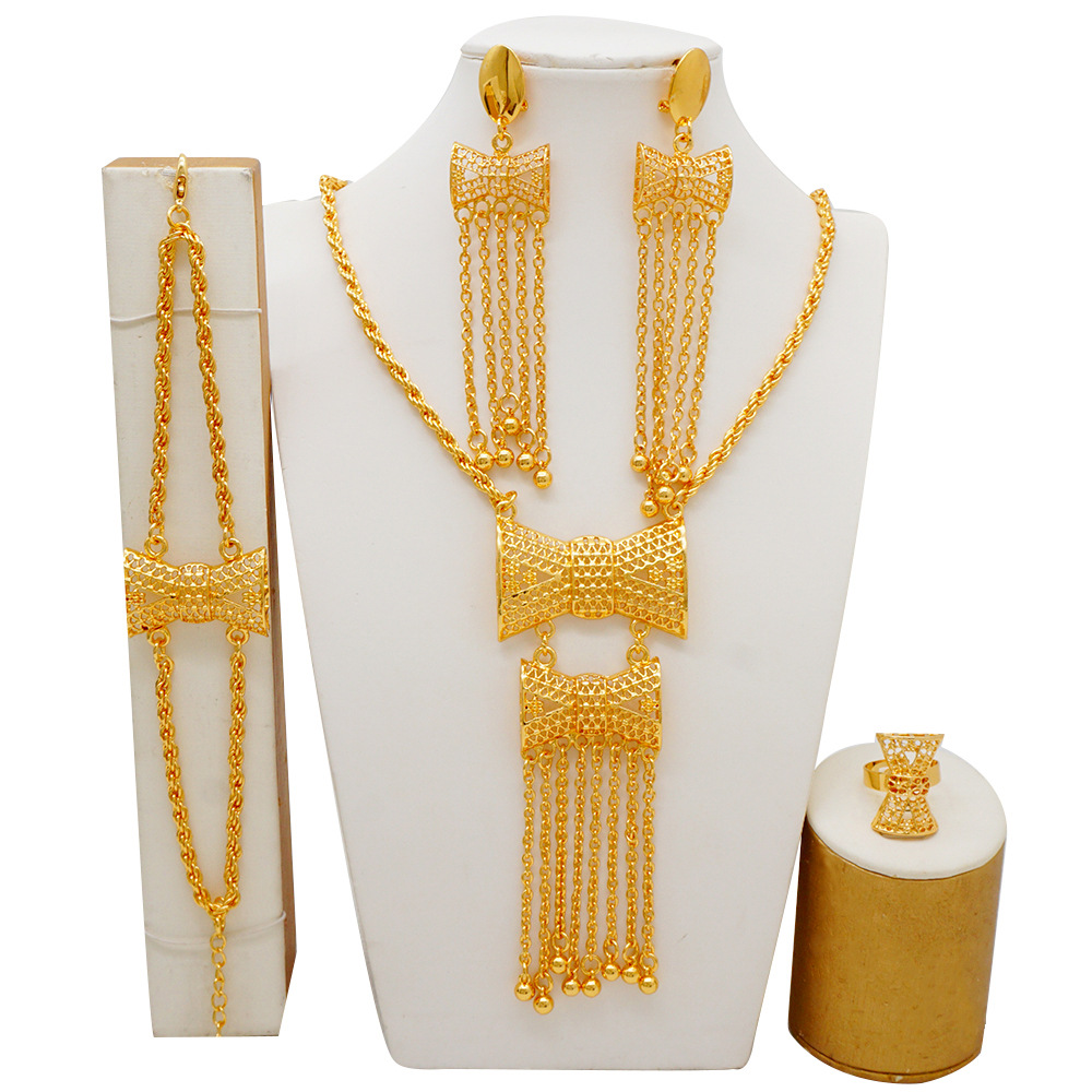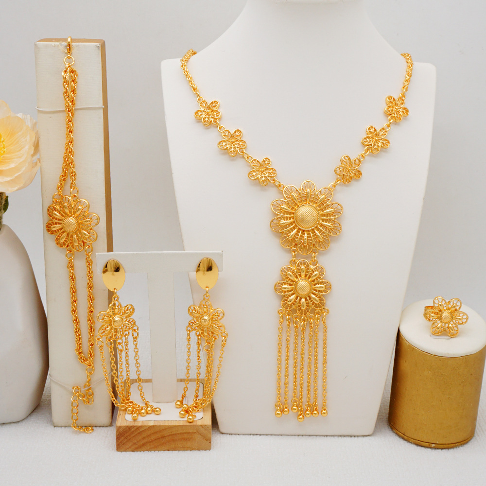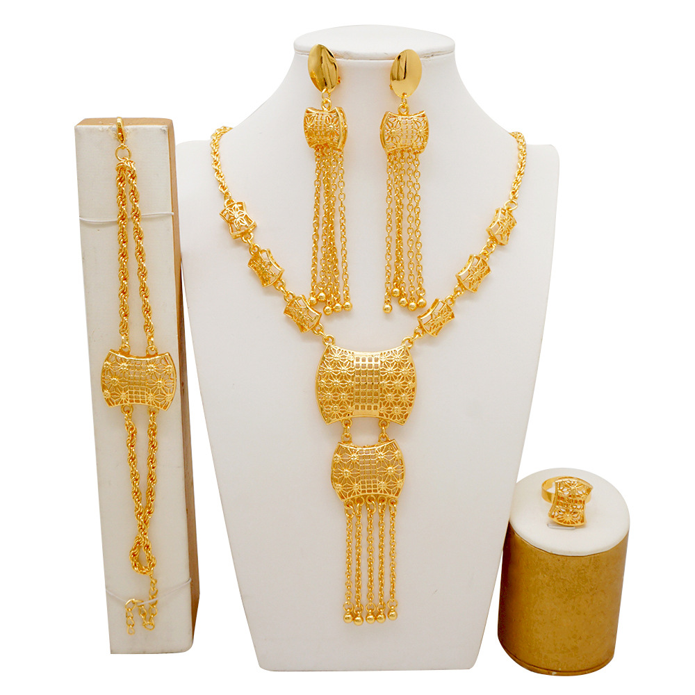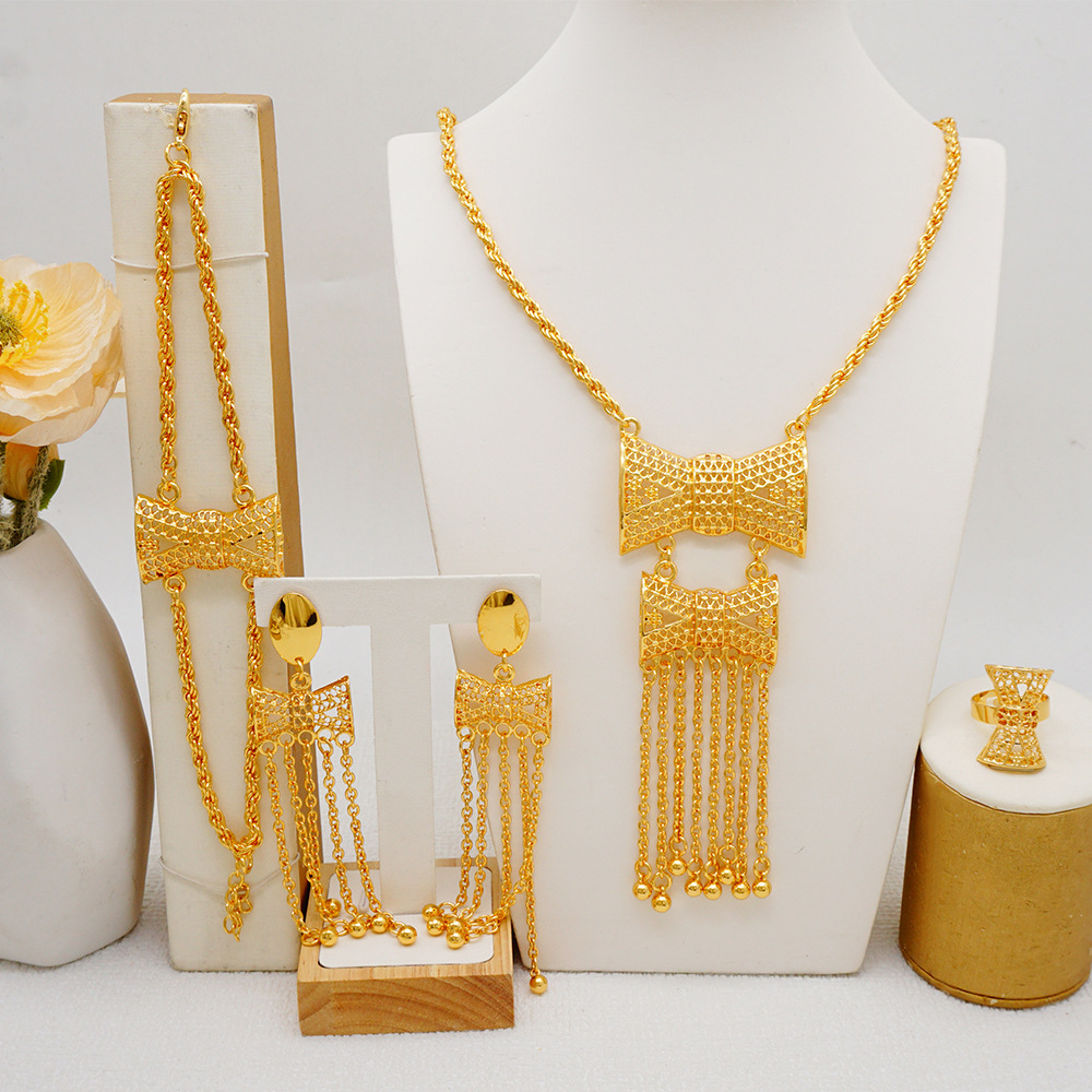 镀金项链迪拜非洲首饰套装跨境流行手链耳环饰品套装
