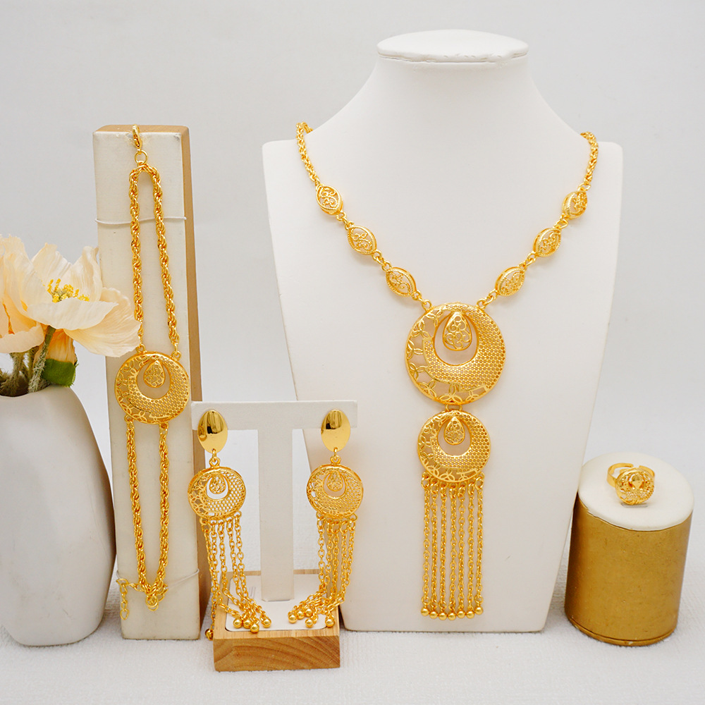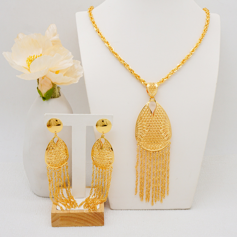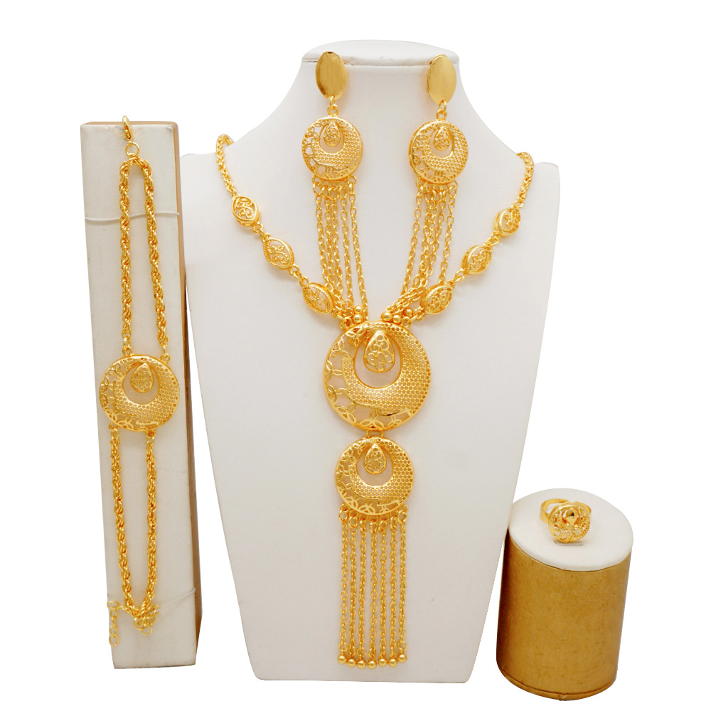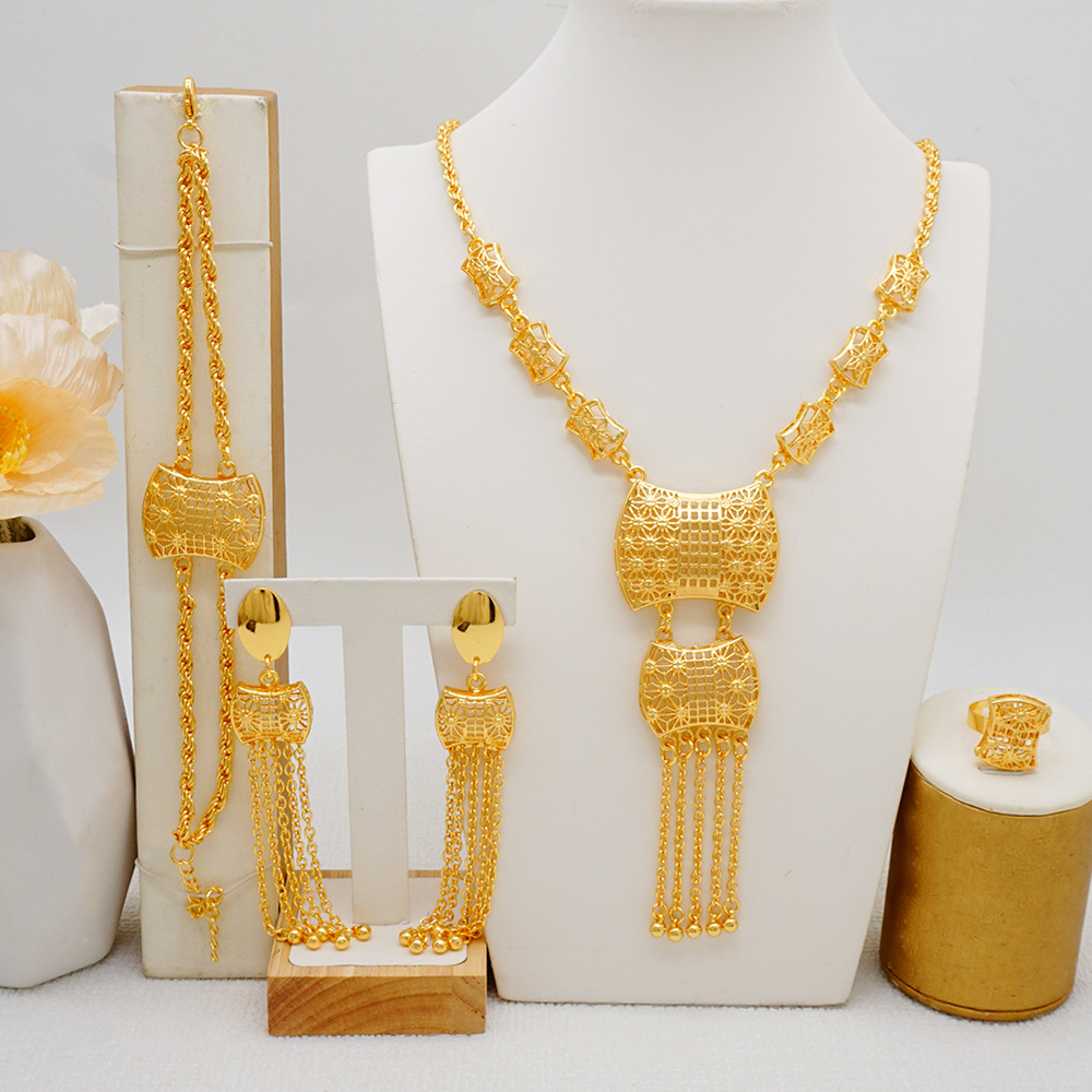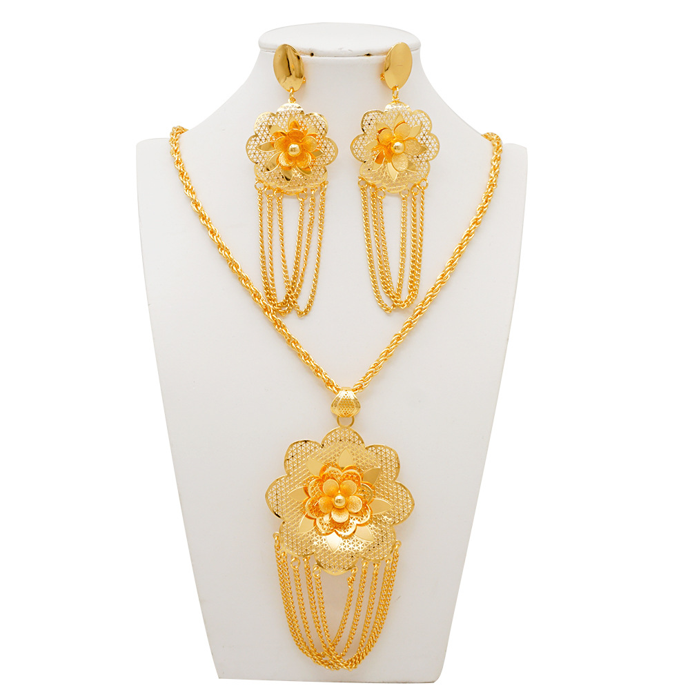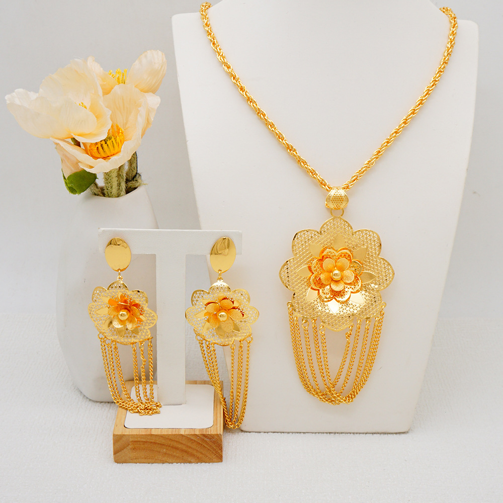 镀金项链迪拜非洲首饰套装跨境流行手链耳环饰品套装