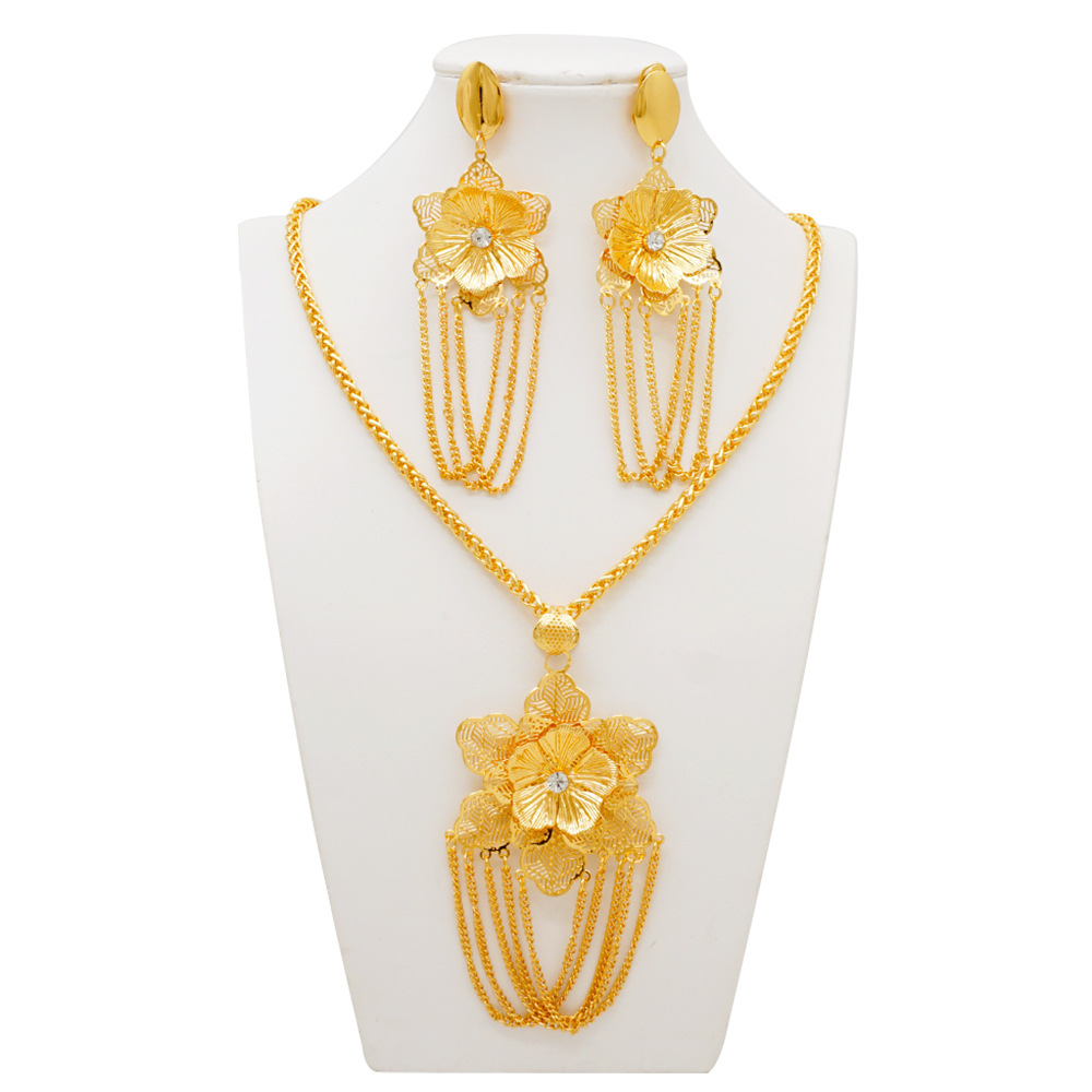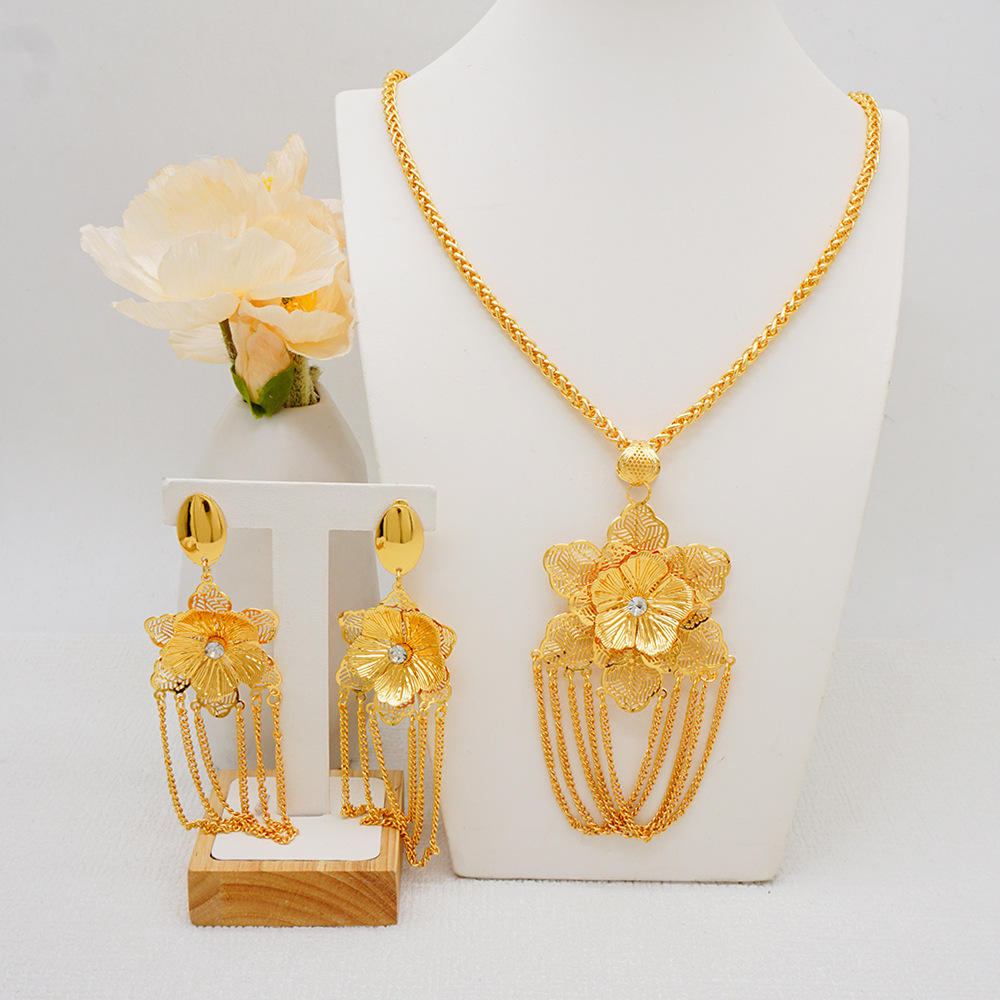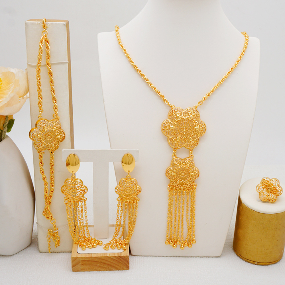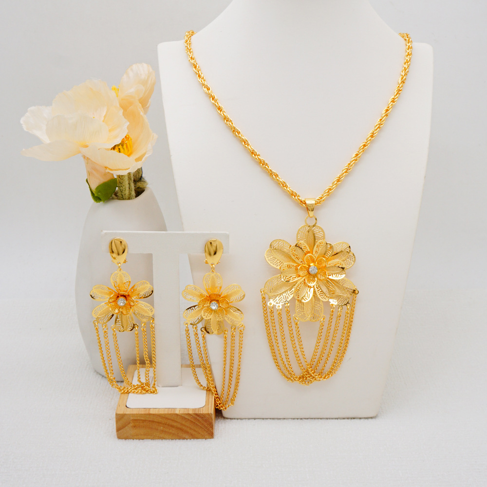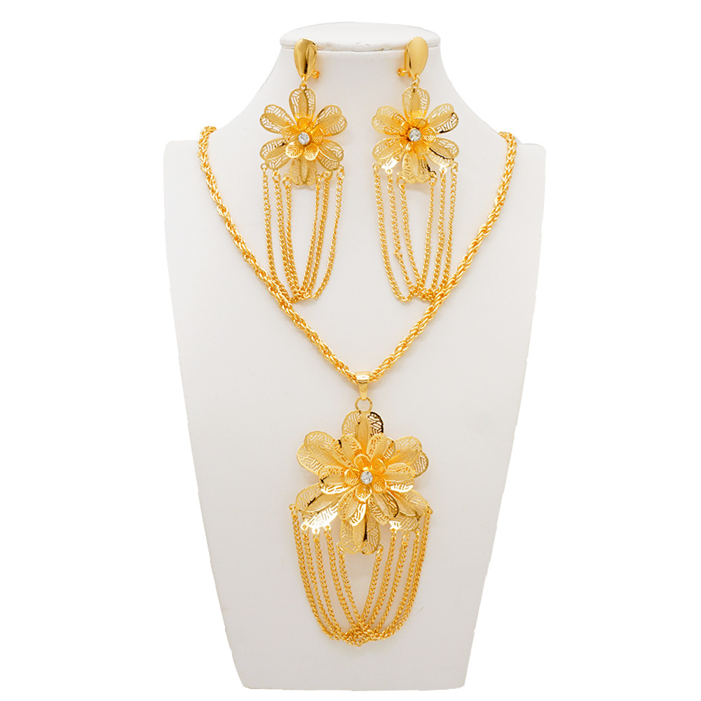 镀金项链迪拜非洲首饰套装跨境流行手链耳环饰品套装