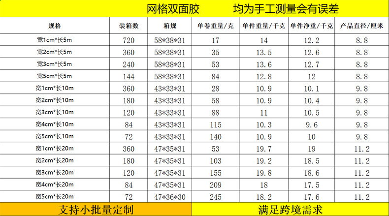 | width 1cm × length 5m; yellow mesh(宽1cm×长5m;黄色网格) | USD $0.1 | 32687733 volume available |