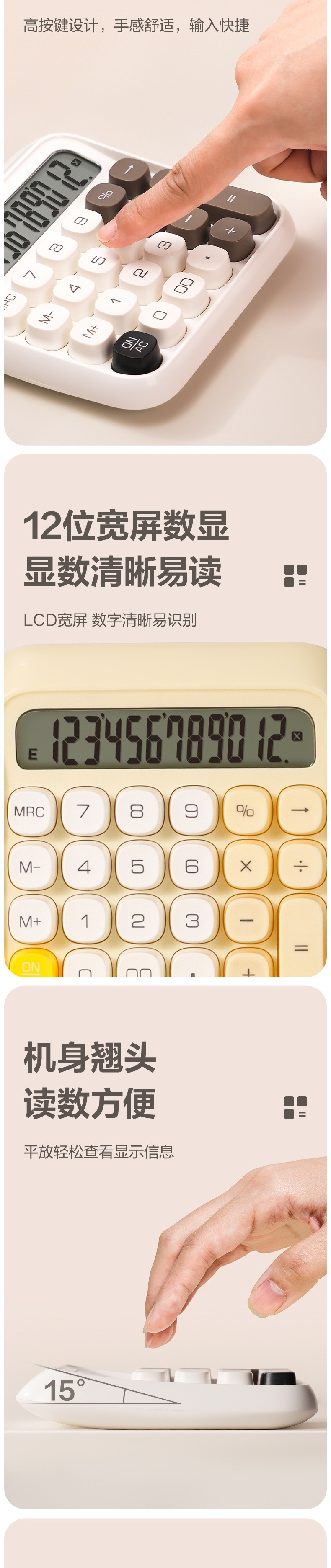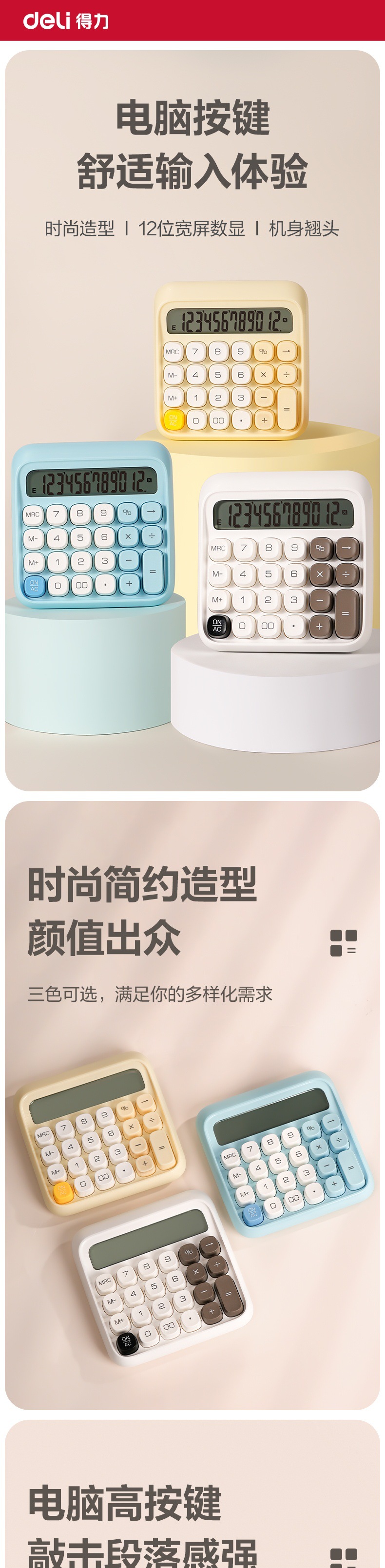 得力TE36桌面计算器高颜值小方糖计算机便携耐用学习商务会计办公