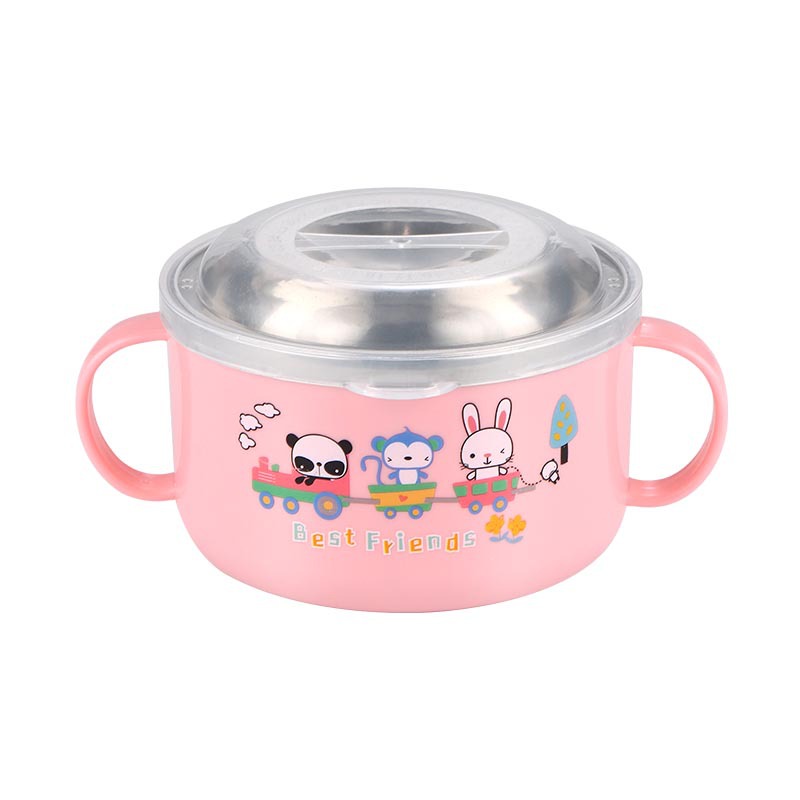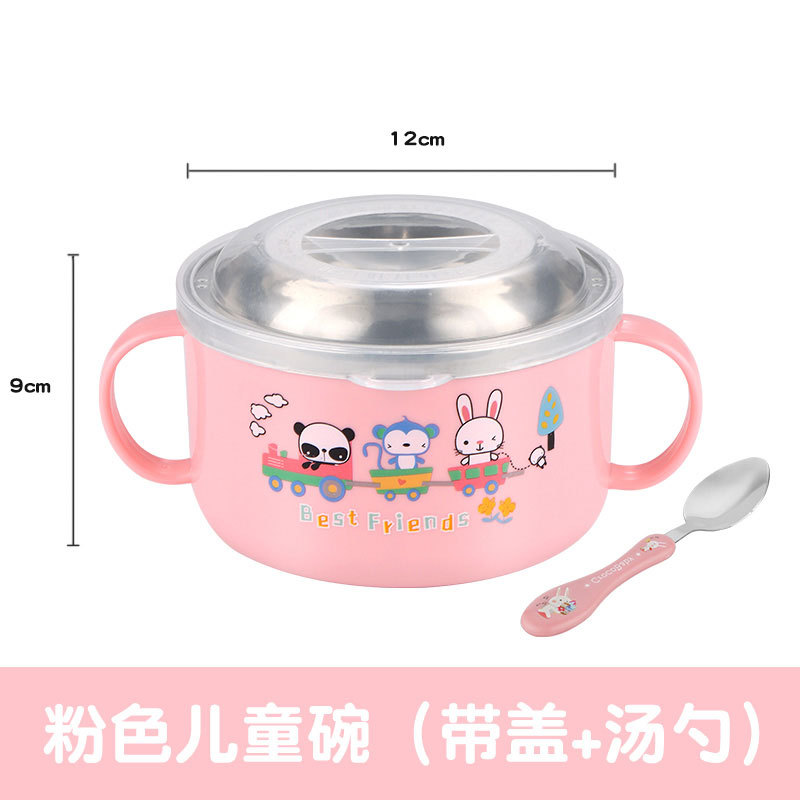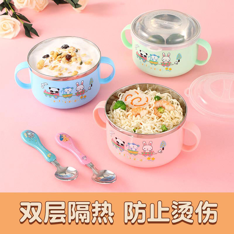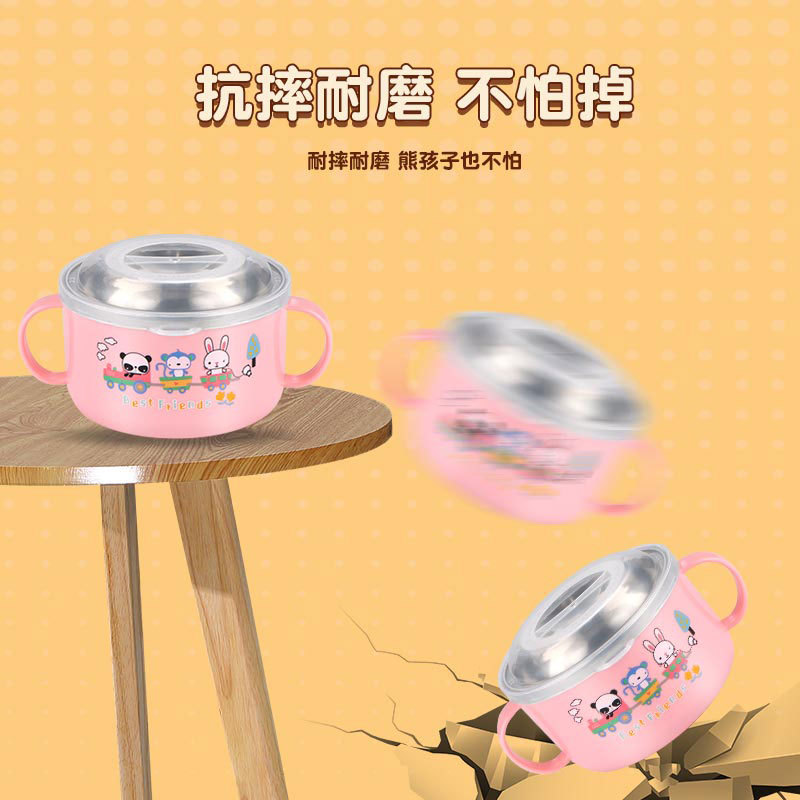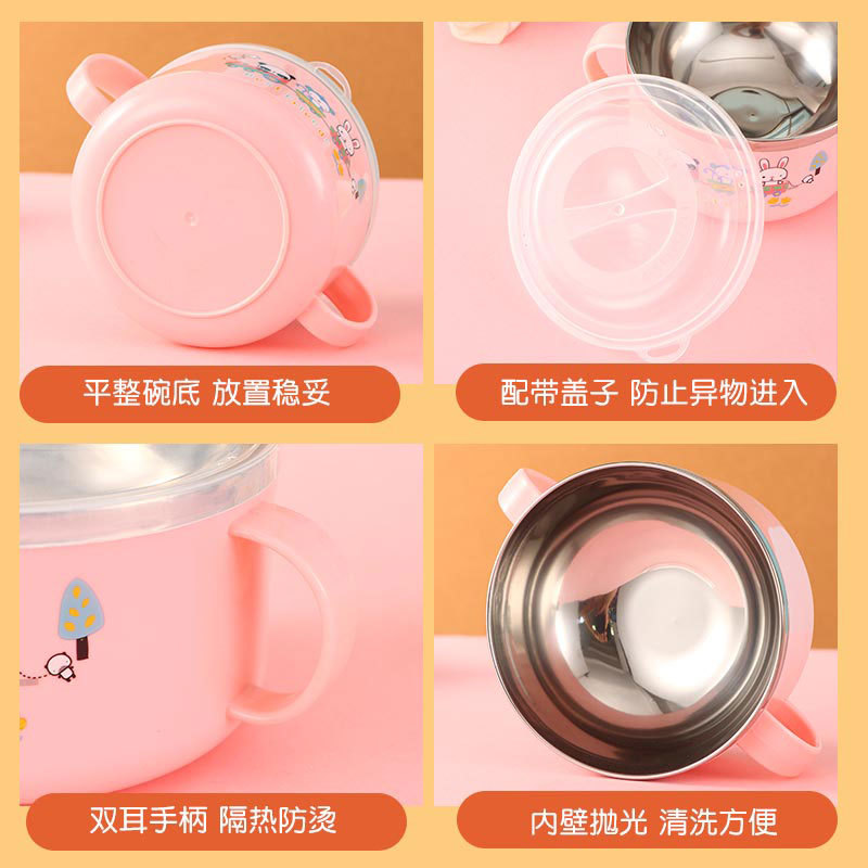 2024小红书同款儿童碗婴儿吃饭碗宝宝卡通不锈钢带盖碗幼儿园辅食