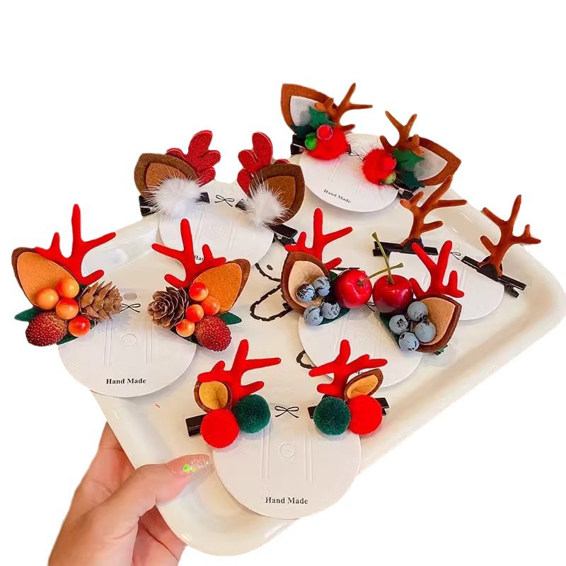圣诞节发夹儿童发卡女童宝宝节日小鹿夹子头饰圣诞发饰现货批发