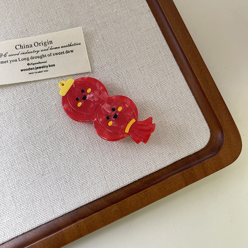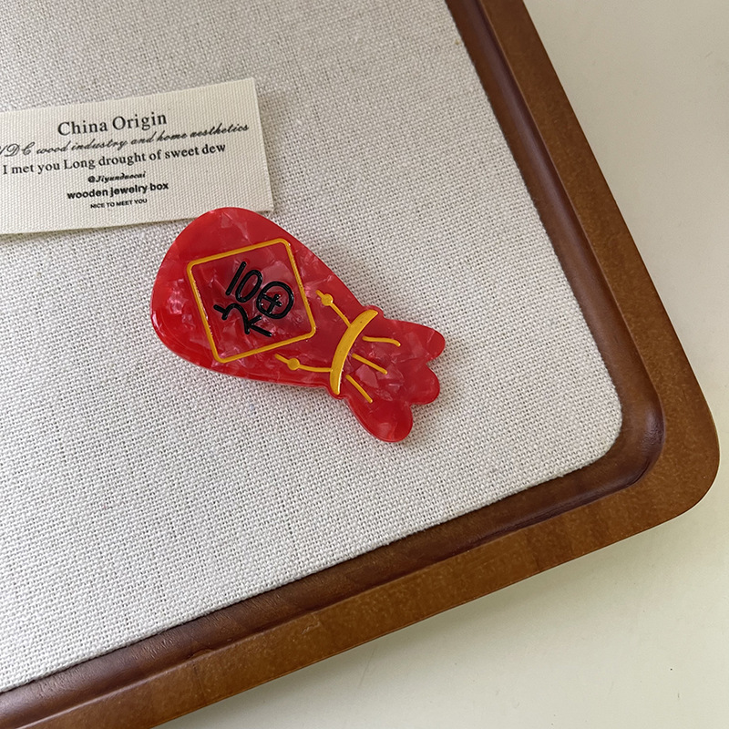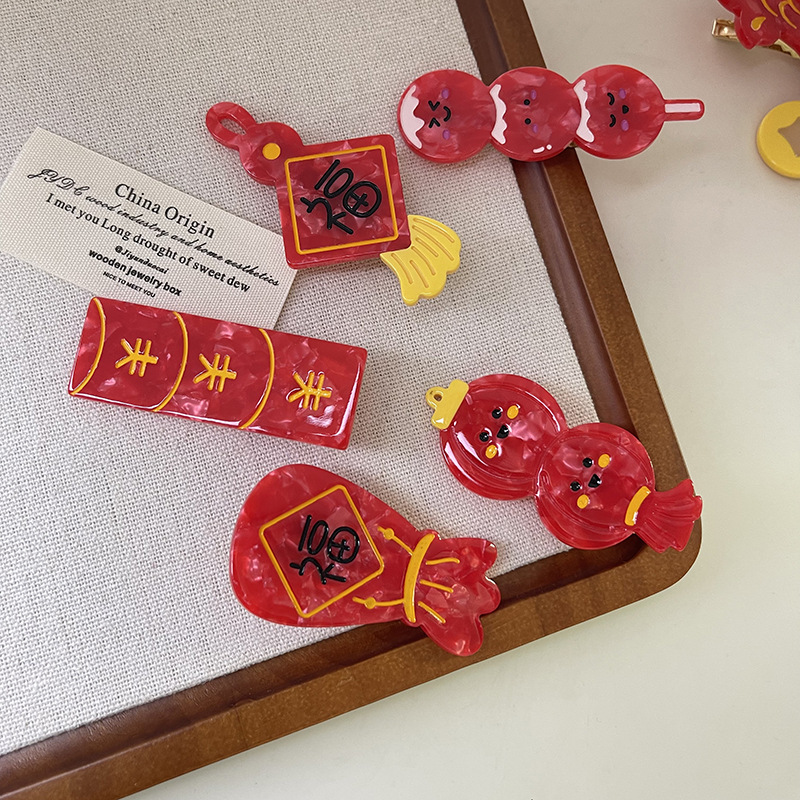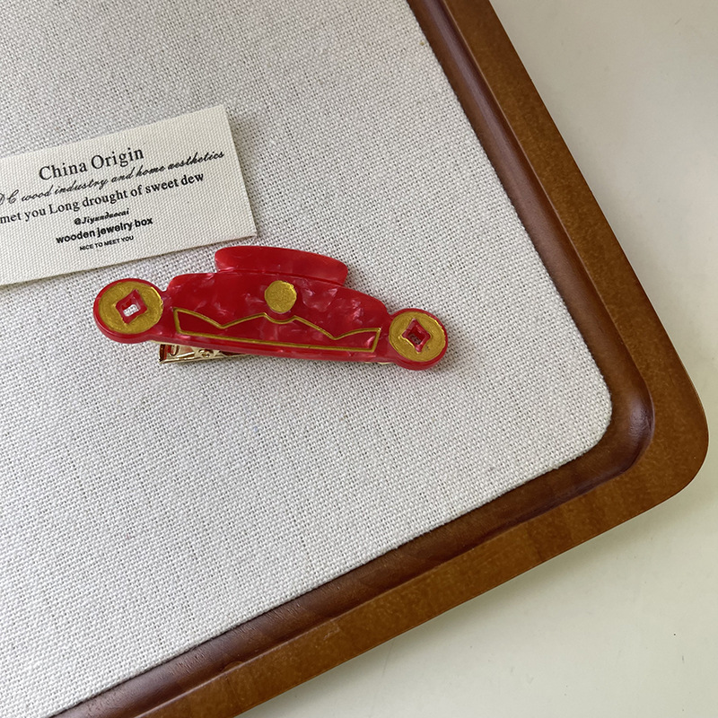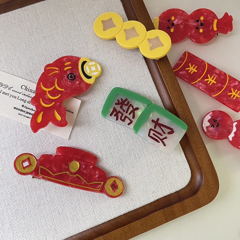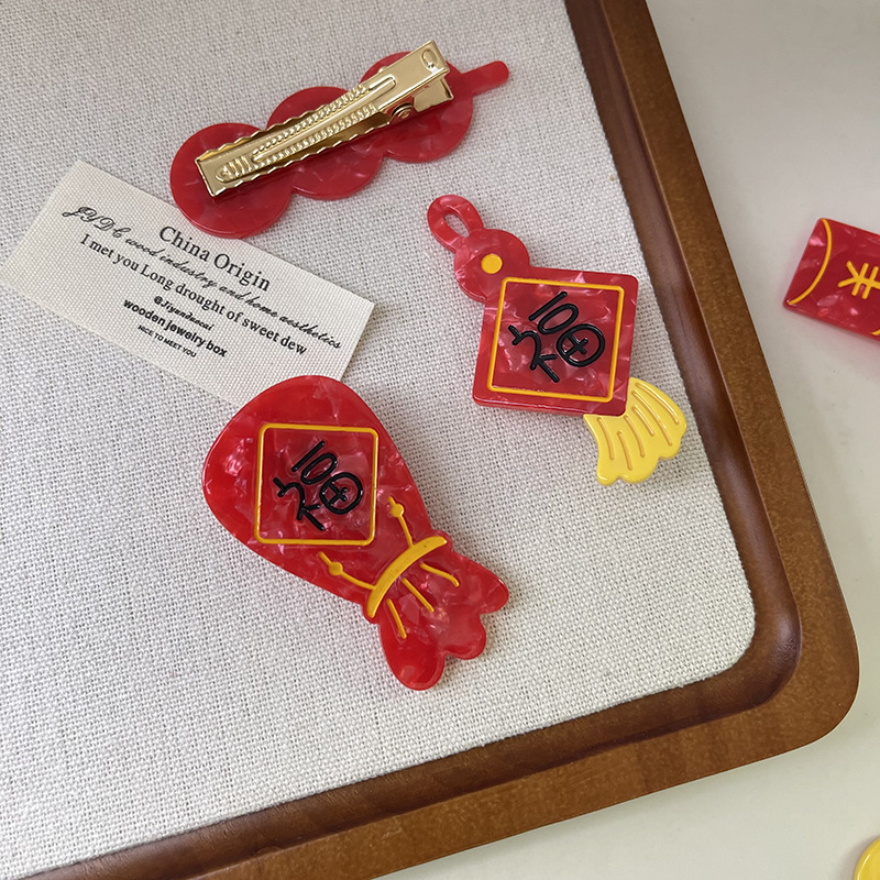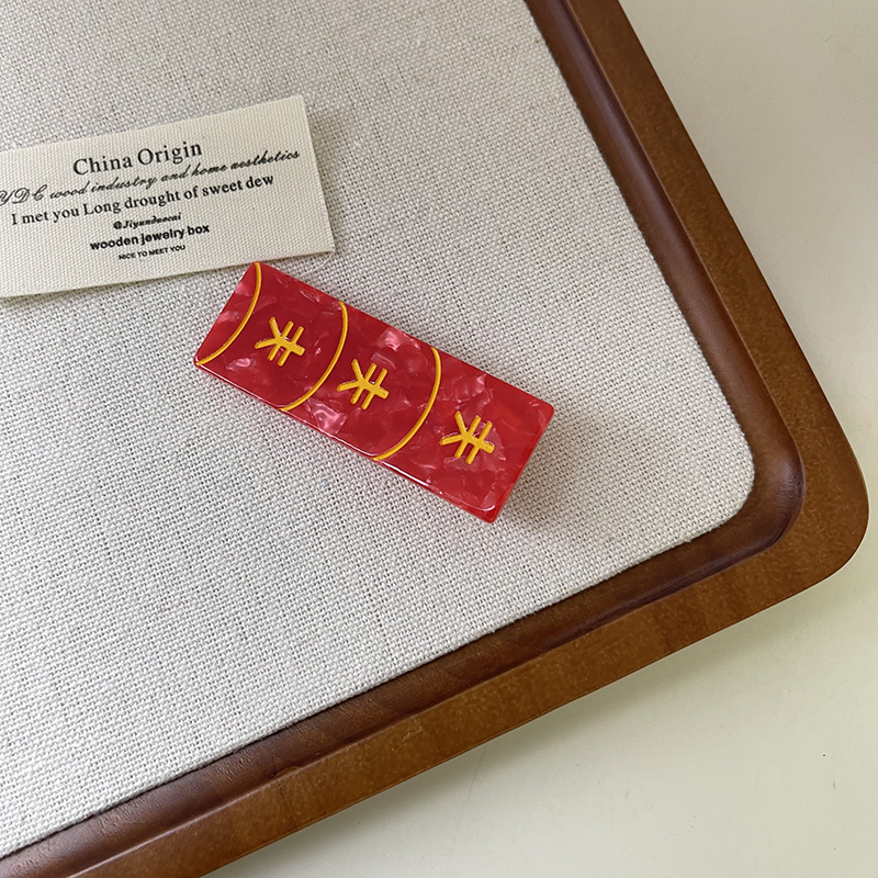 新年款红色边夹可爱财神福到碎发刘海发夹喜庆红包恭喜发财鸭嘴夹
