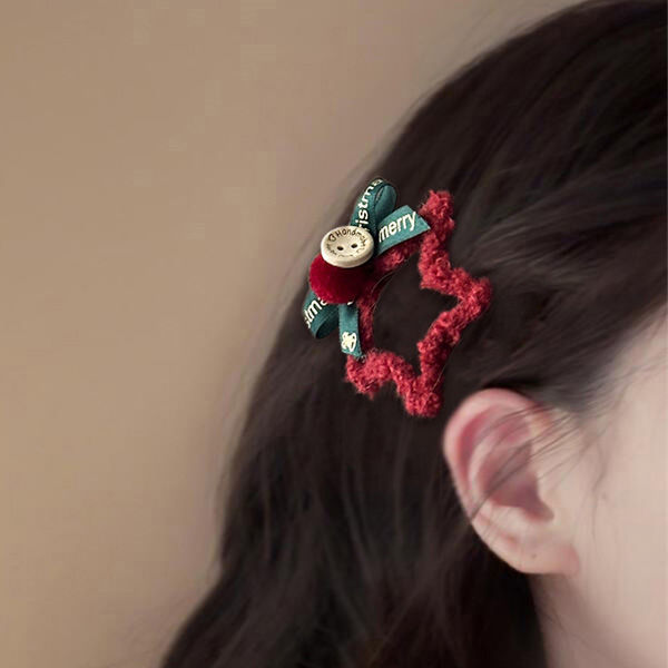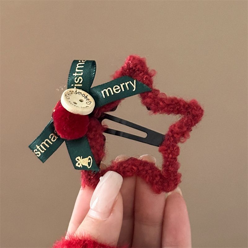 新年红色毛绒星星发夹蝴蝶结刘海BB夹侧边碎发夹发卡圣诞头饰发饰