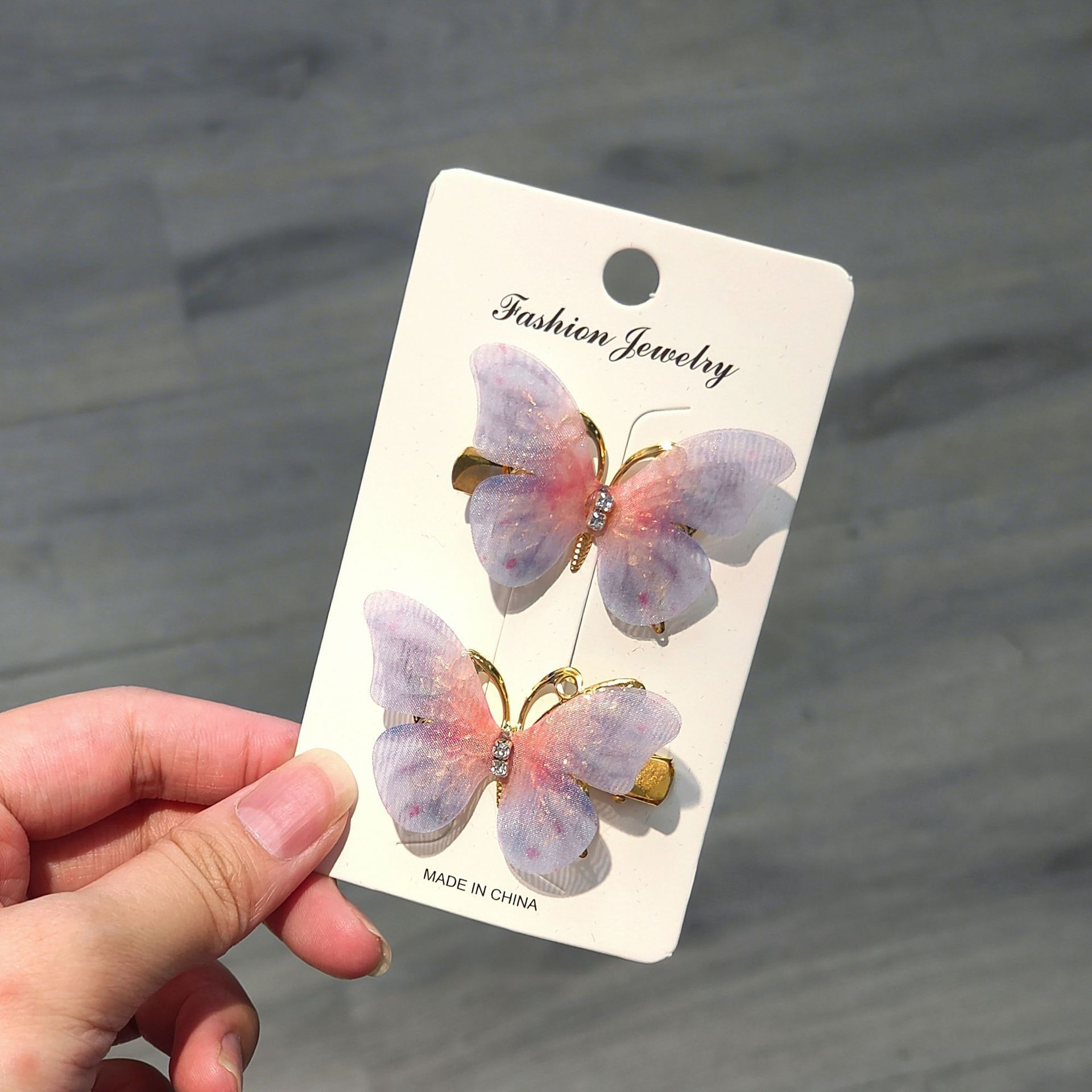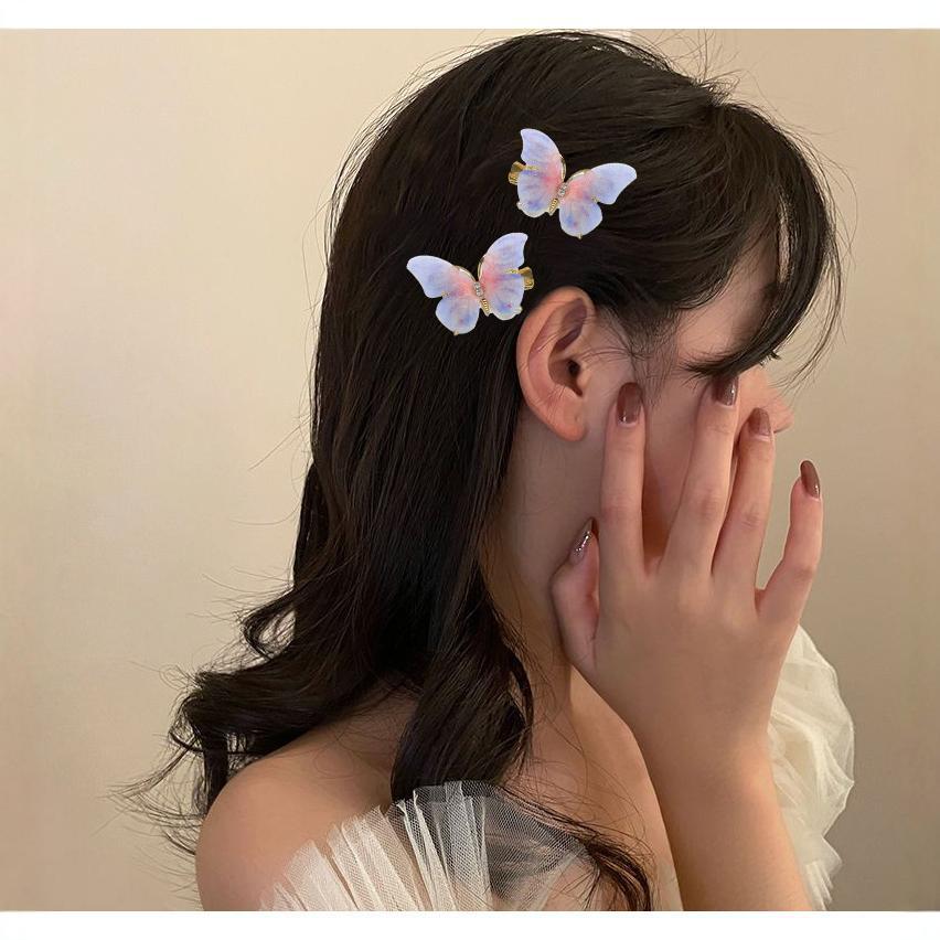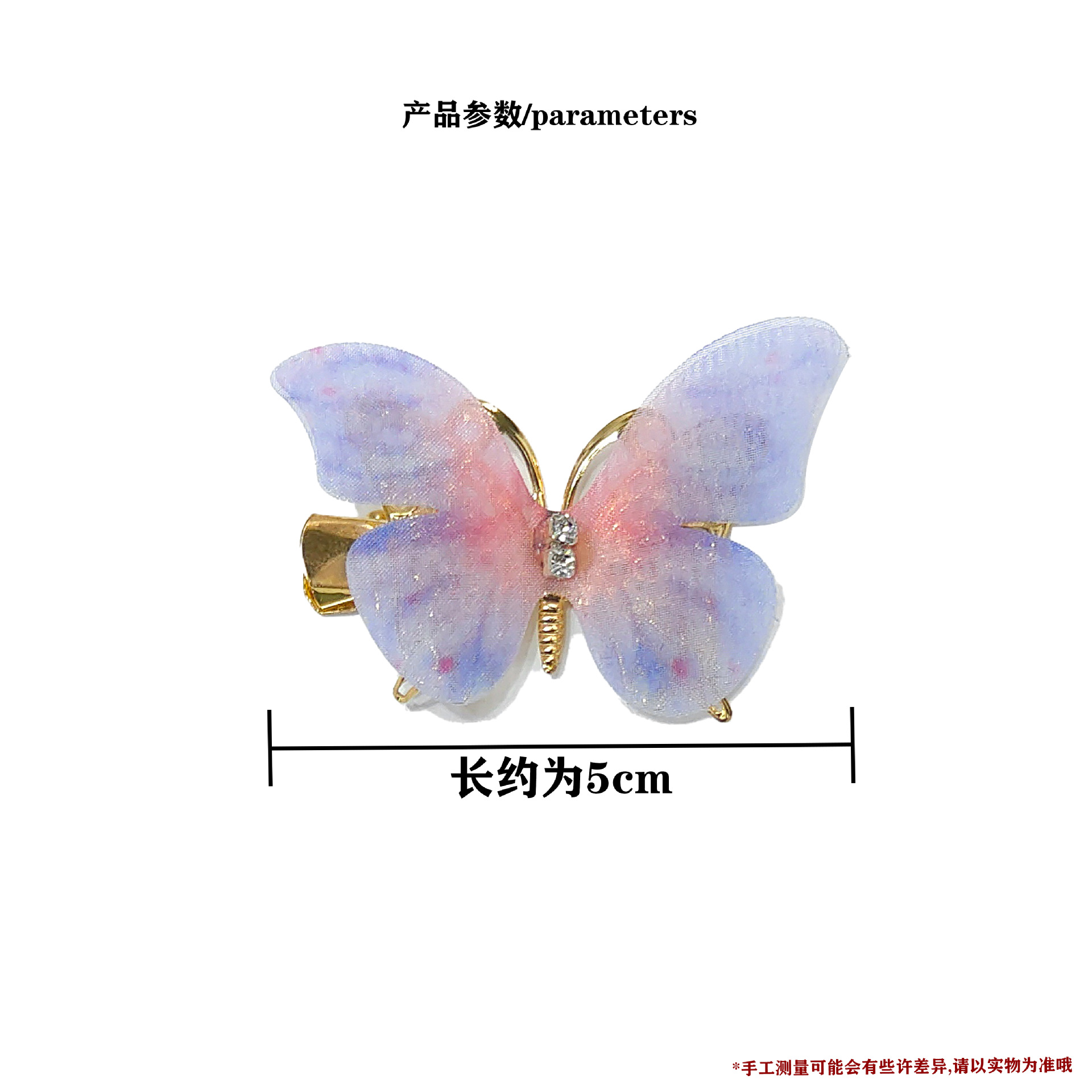 儿童蝴蝶发夹网纱合金可爱渐变超仙汉服发饰鸭嘴夹一元发卡批发