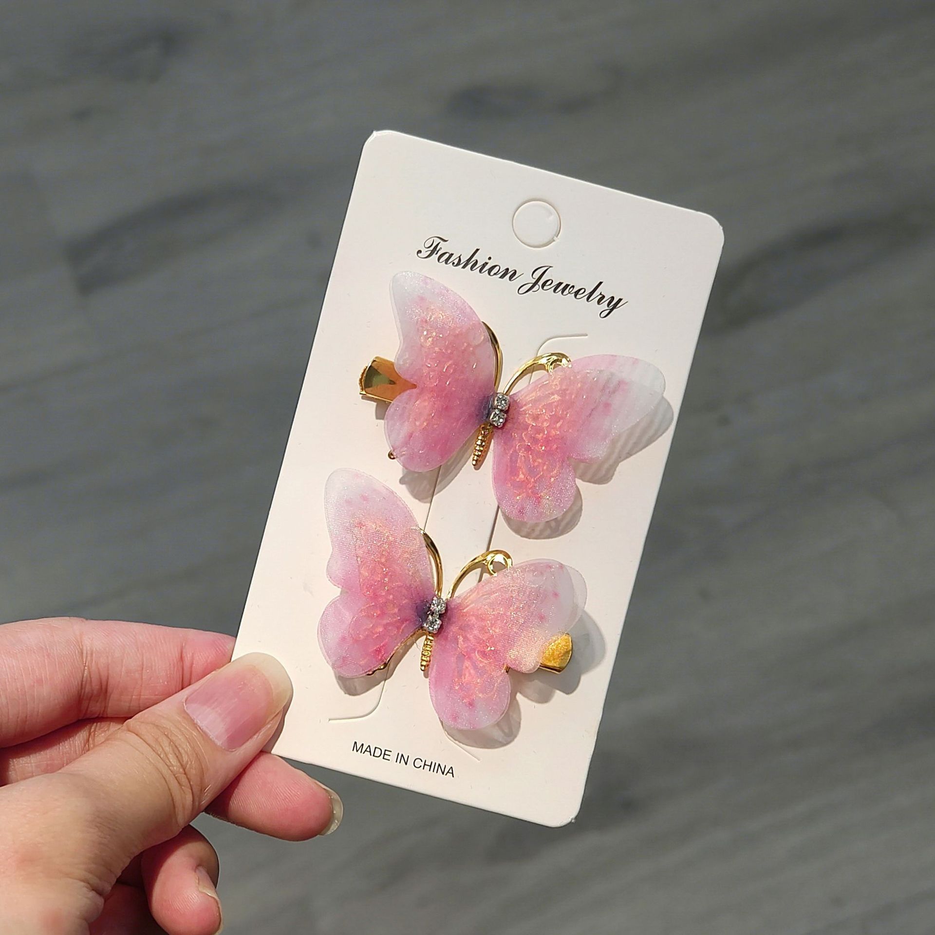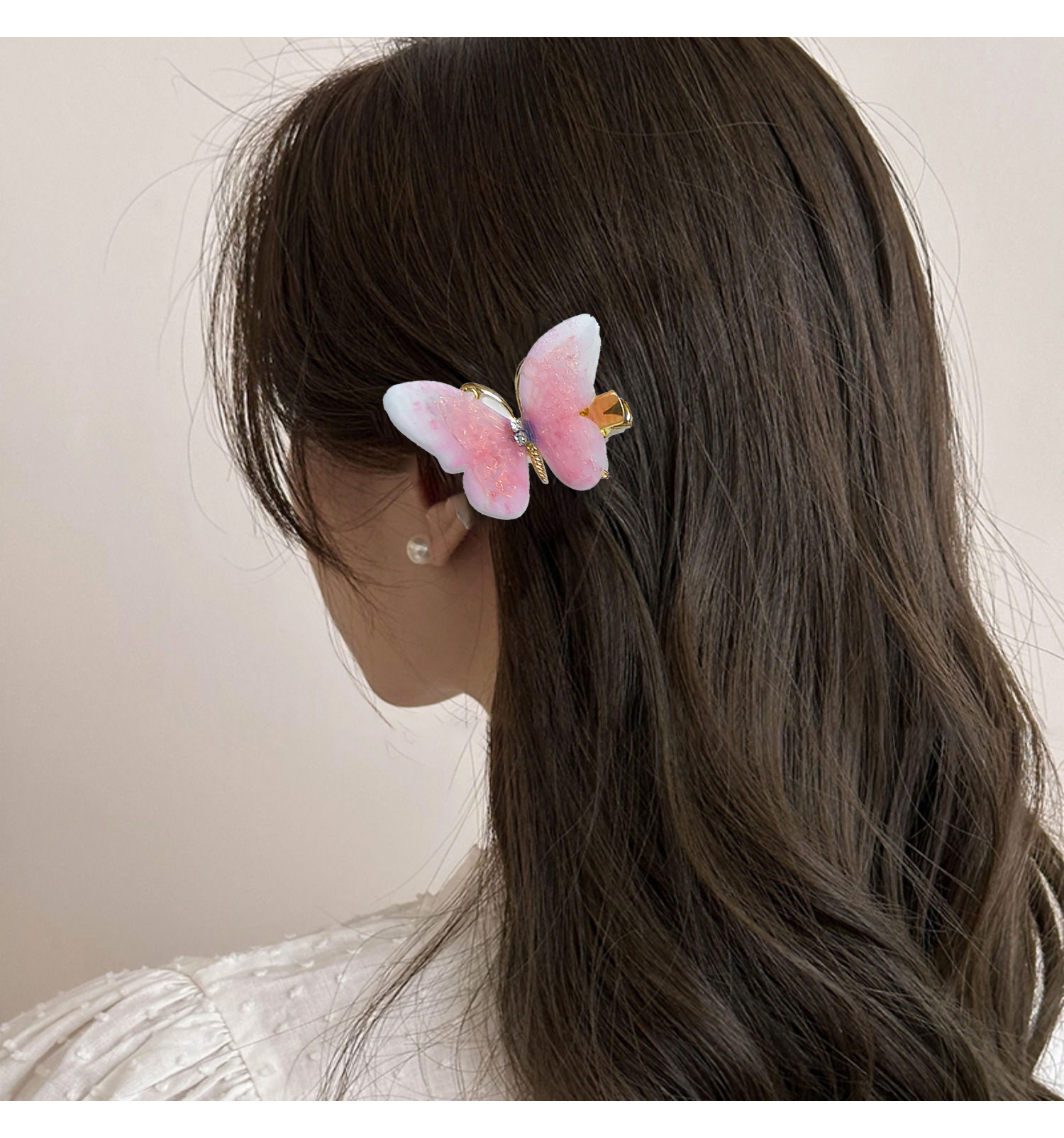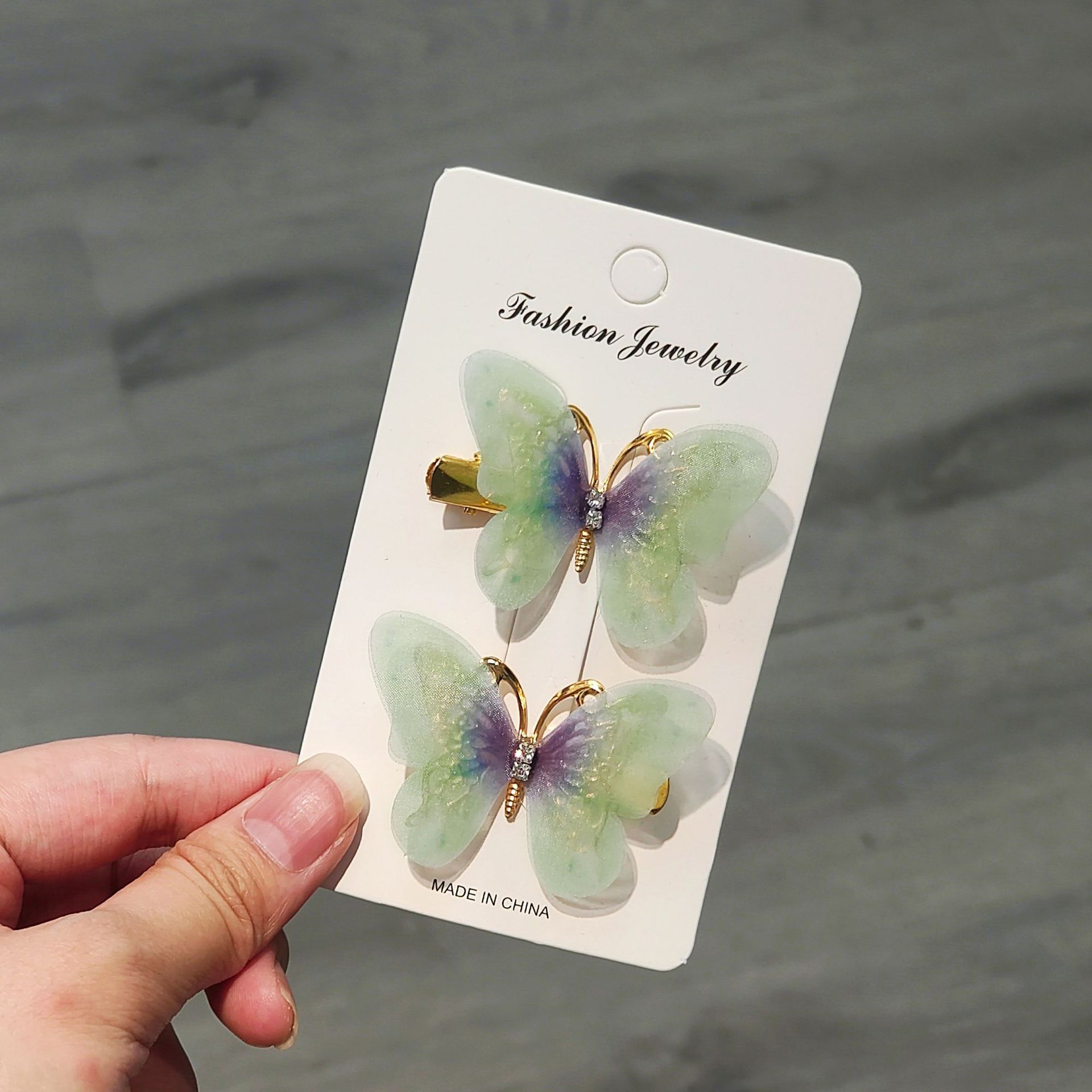 儿童蝴蝶发夹网纱合金可爱渐变超仙汉服发饰鸭嘴夹一元发卡批发