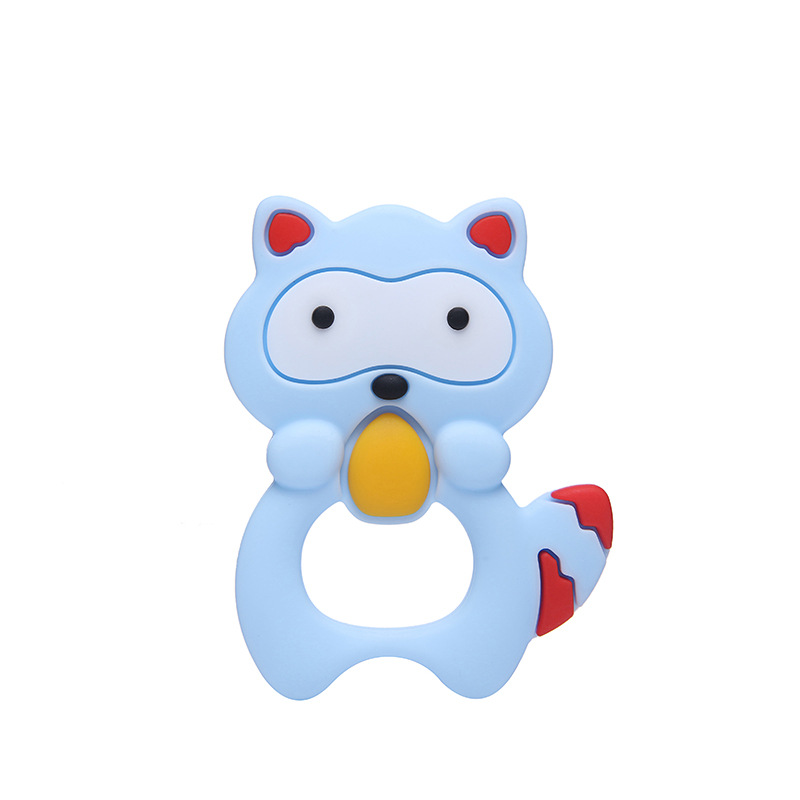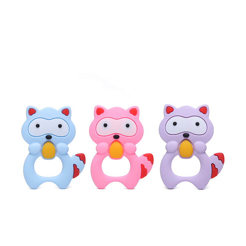 婴儿小浣熊牙胶磨牙棒硅胶婴儿玩具咬咬新款手摇铃食品级硅胶玩具