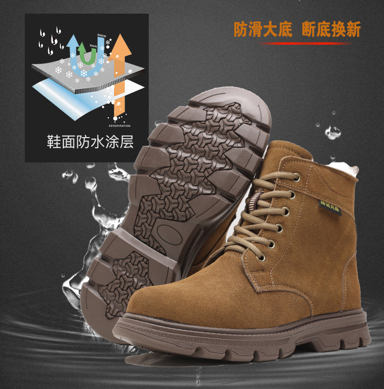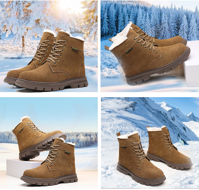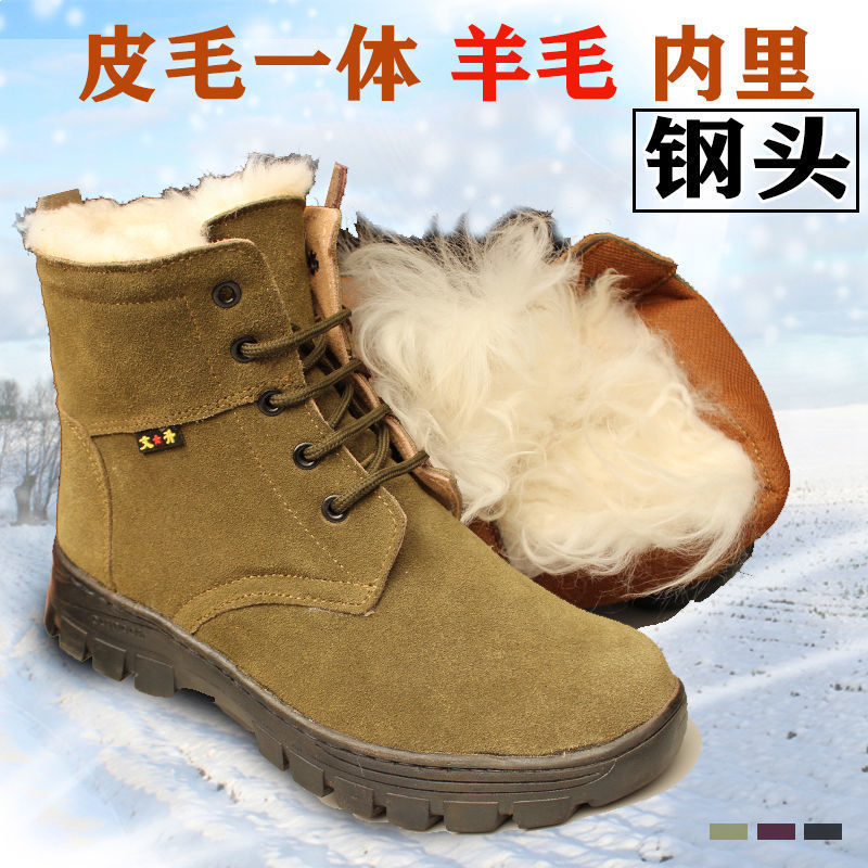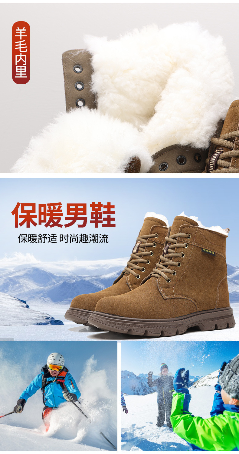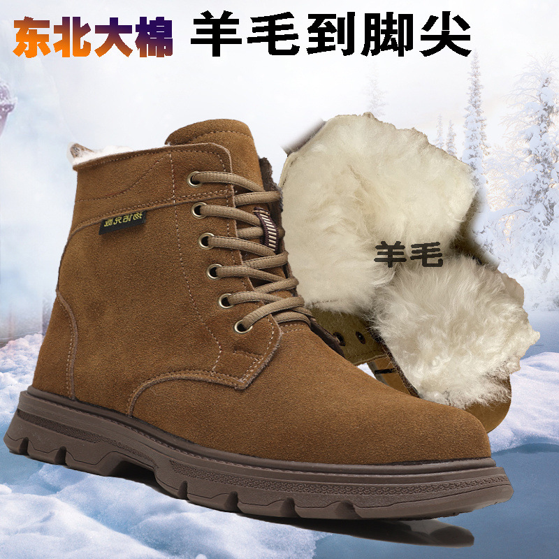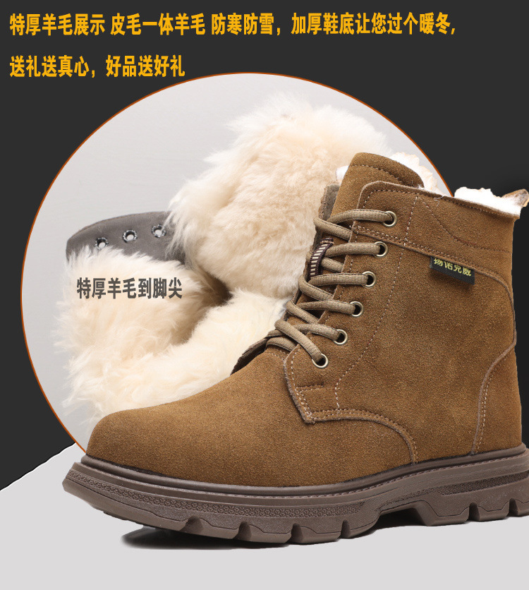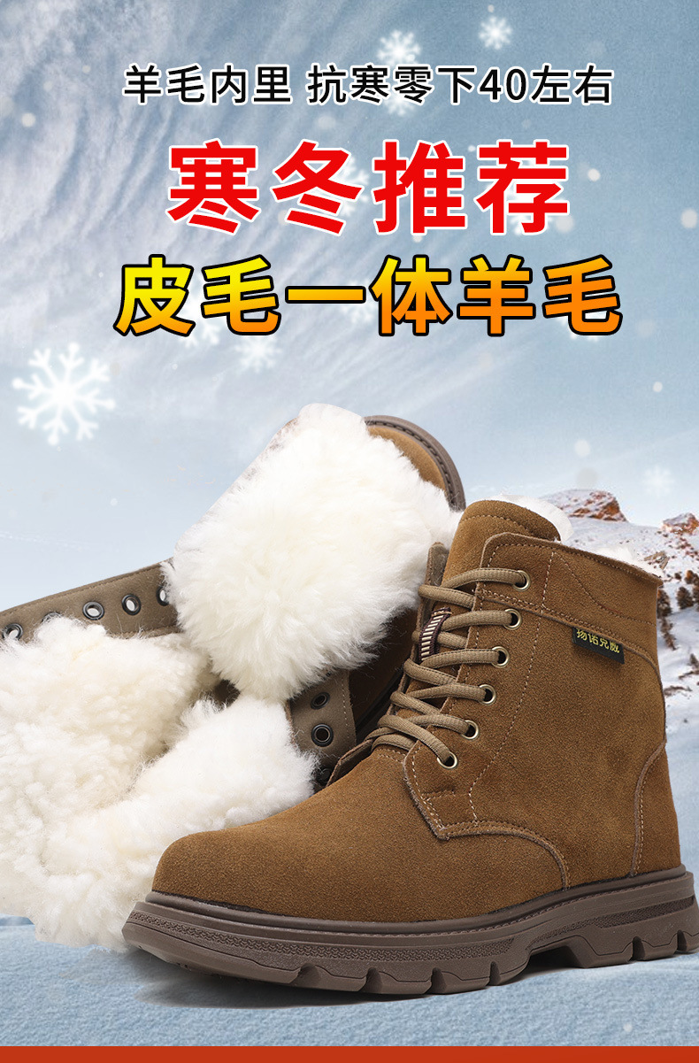 东北零下40雪地靴男款皮毛一体羊毛工装靴加绒特厚保暖棉鞋牛筋底