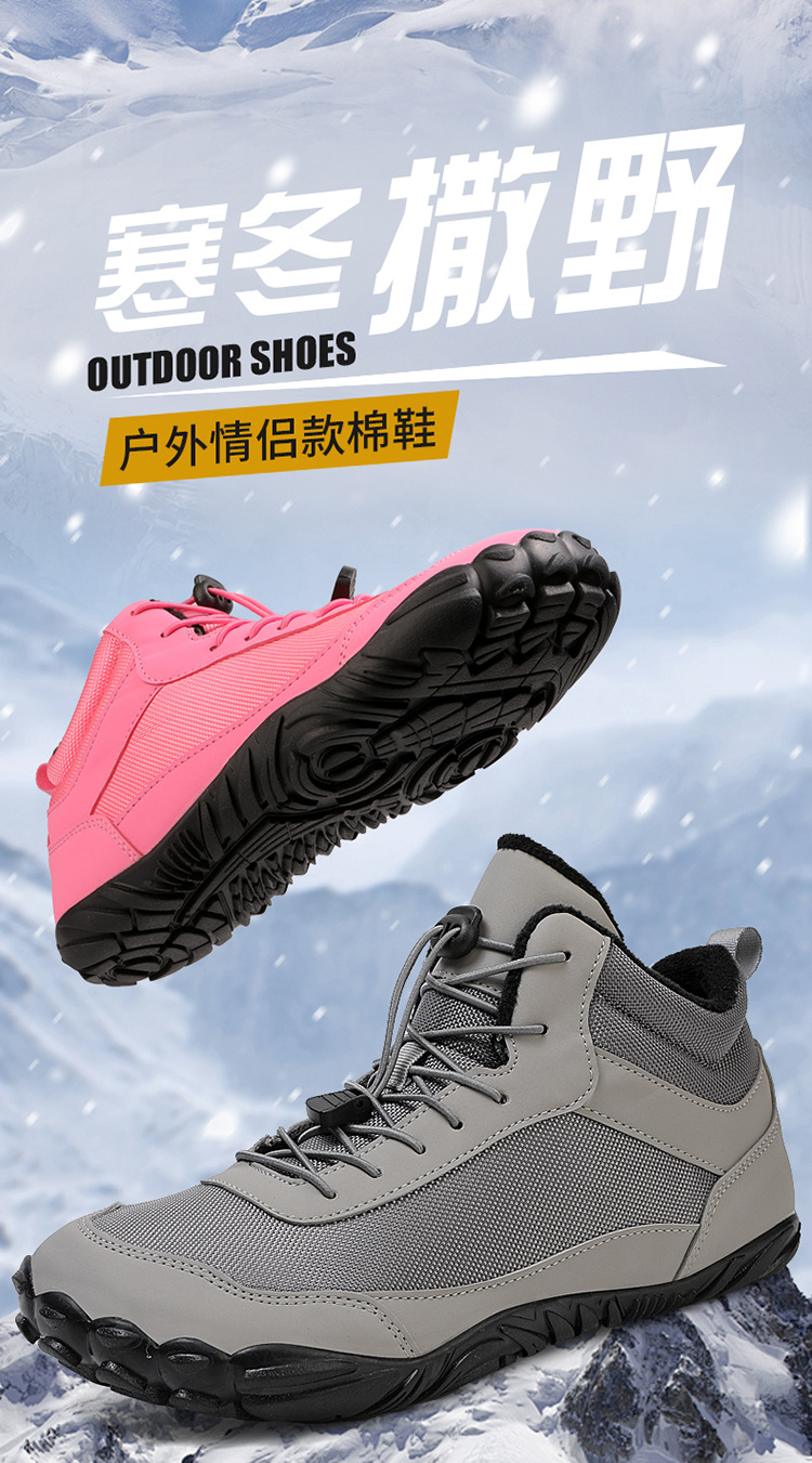 户外五指雪地靴2024跨境秋冬季男女情侣防水棉鞋加绒加厚登山棉靴
