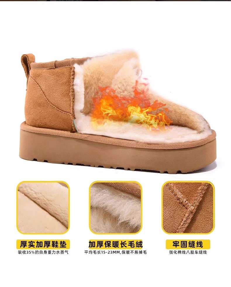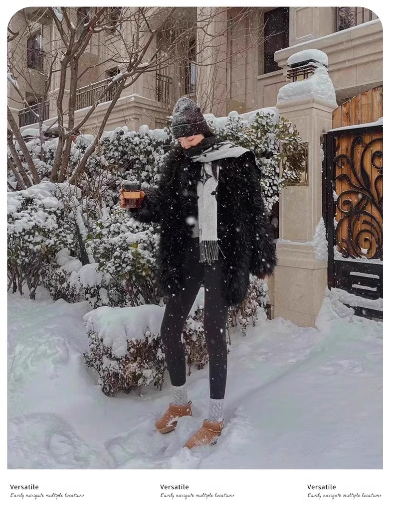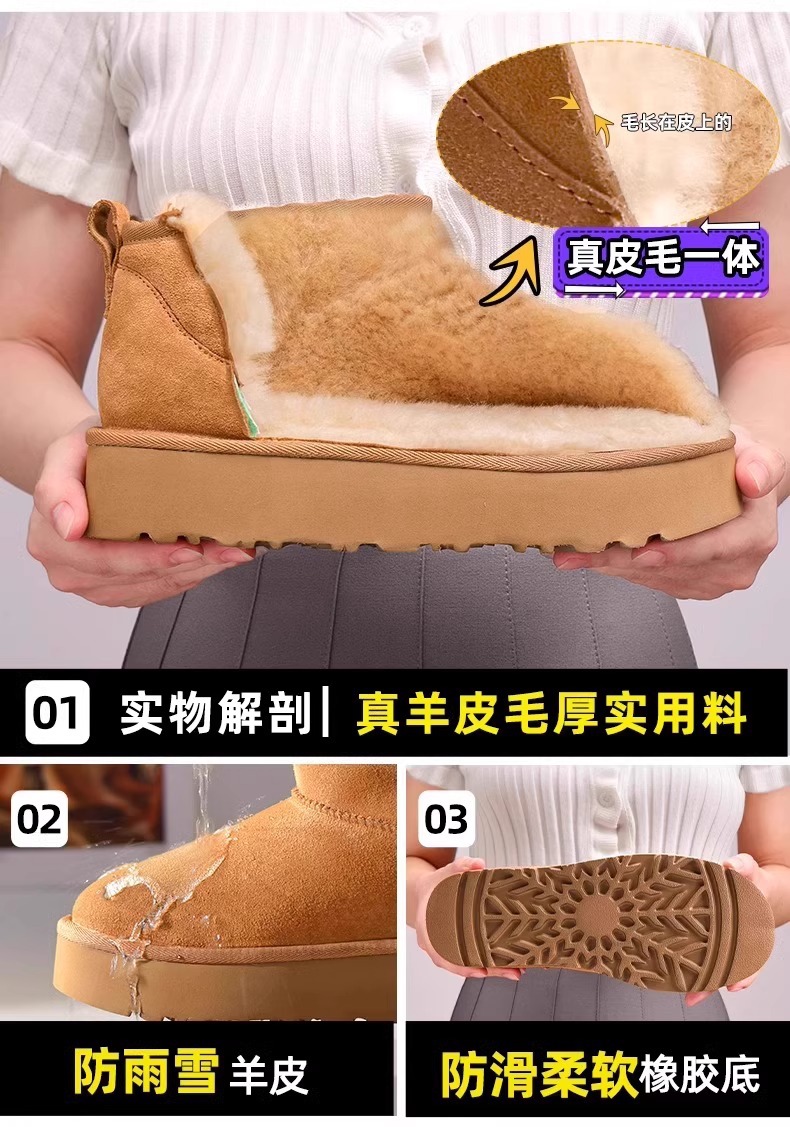 皮毛一体雪地靴男女款冬季保暖外穿加绒厚底棉鞋防寒防水男士靴子
