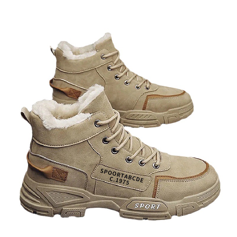 冬季工装靴男士高帮雪地靴百搭休闲马丁靴加绒保暖棉鞋劳保工作鞋