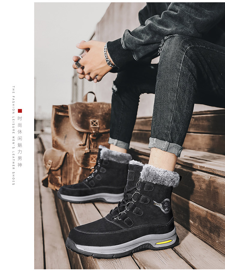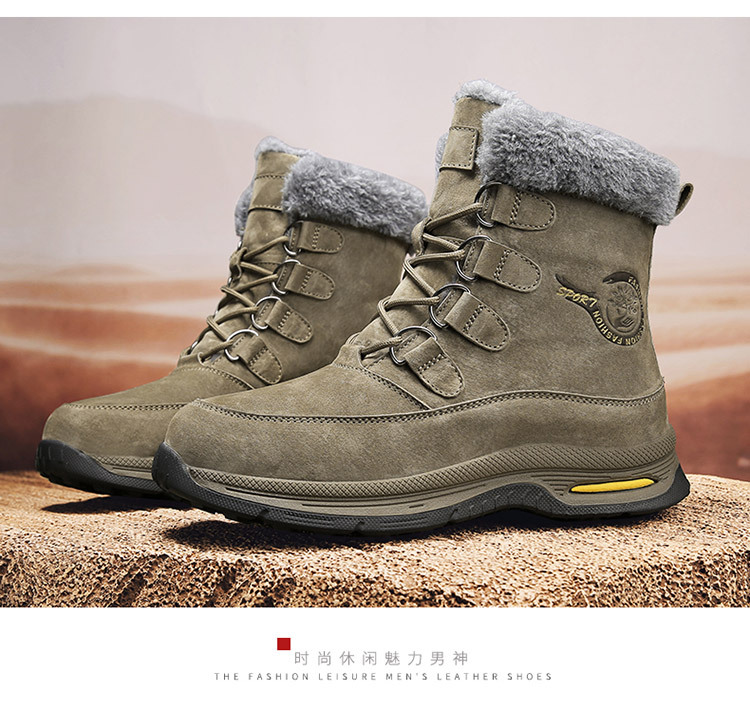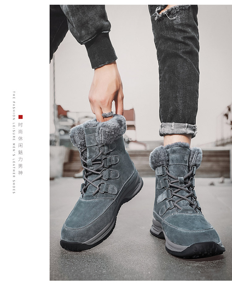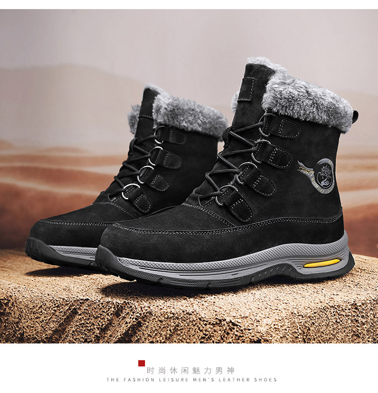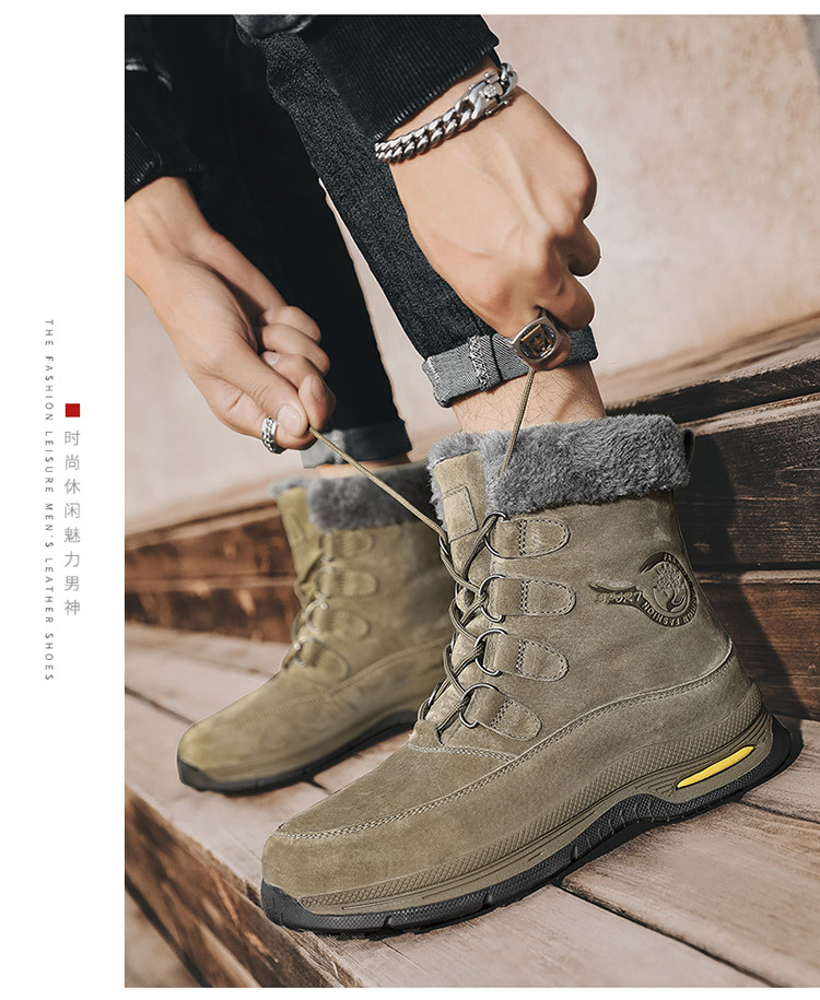 跨境真皮男士雪地靴冬季加绒防寒保暖厚底户外男鞋高帮靴子棉鞋