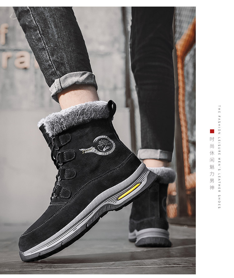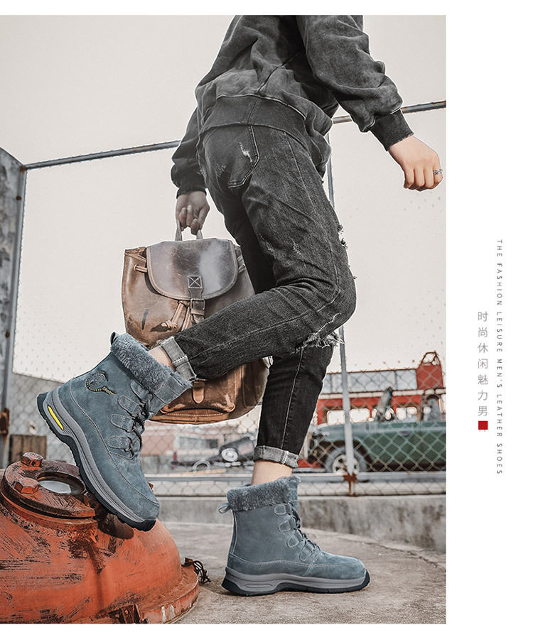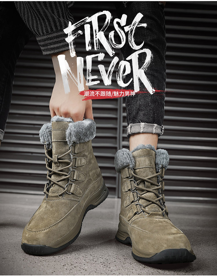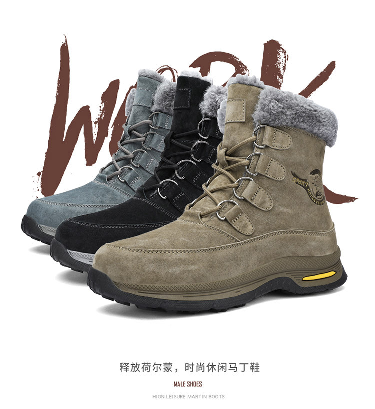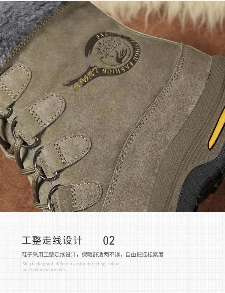 跨境真皮男士雪地靴冬季加绒防寒保暖厚底户外男鞋高帮靴子棉鞋