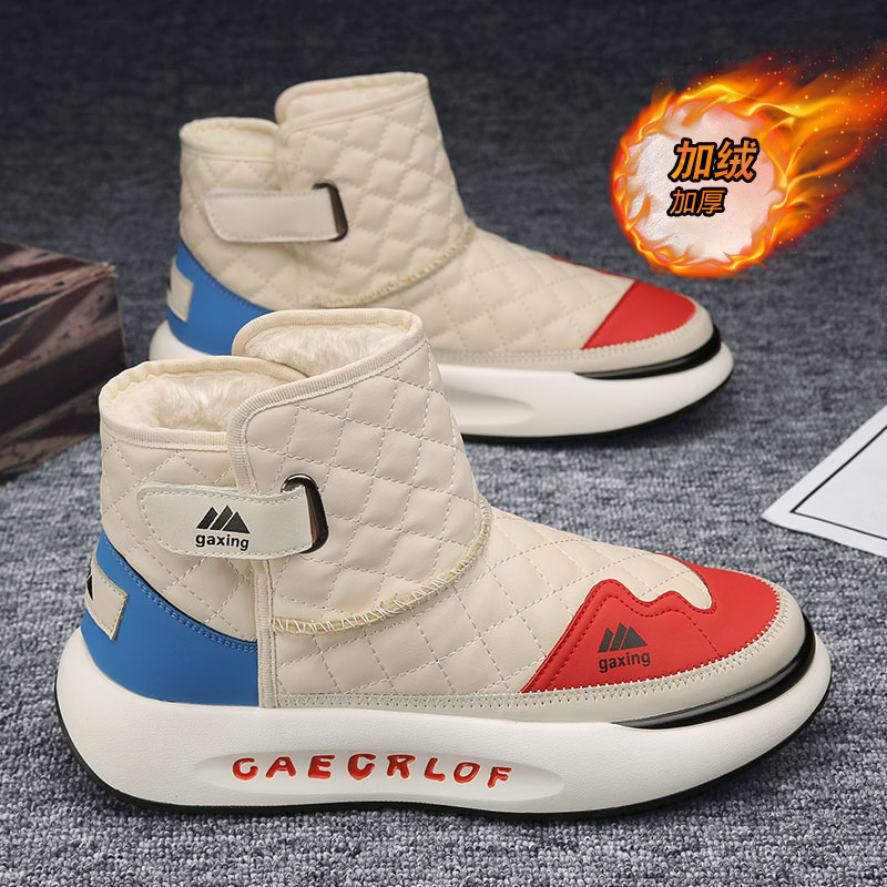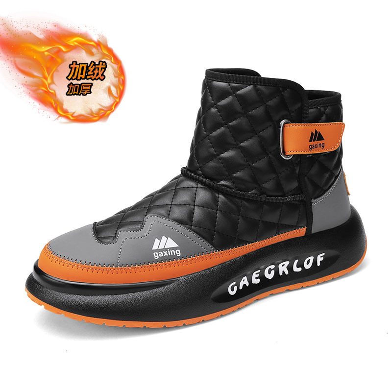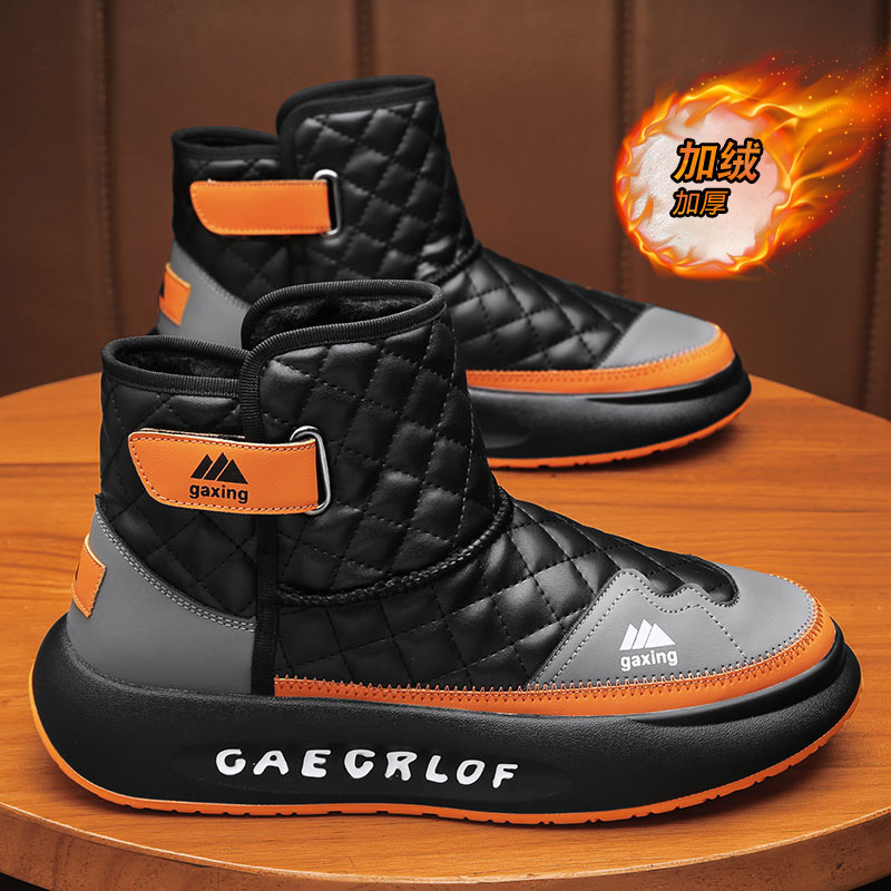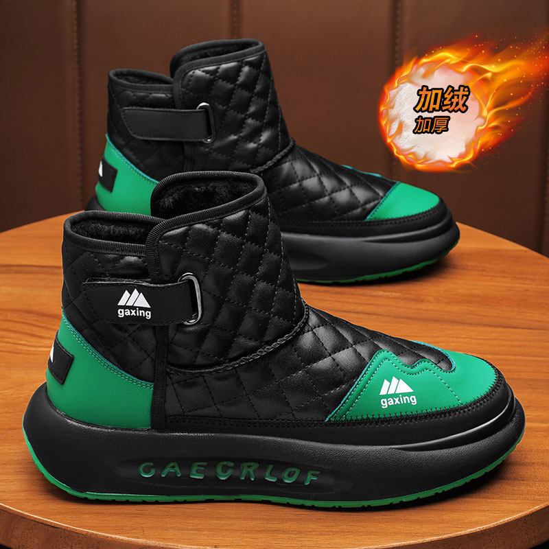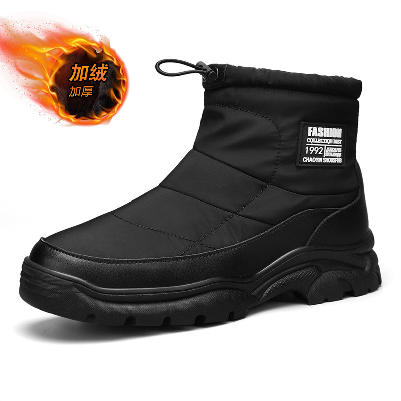 冬季男士厚底高帮雪地靴加绒加厚保暖棉鞋防滑直播东北抗寒男短靴