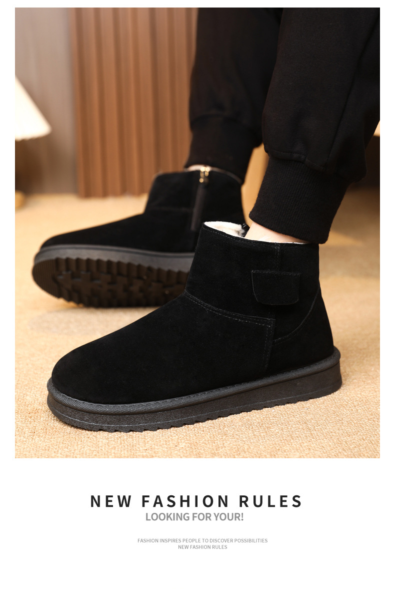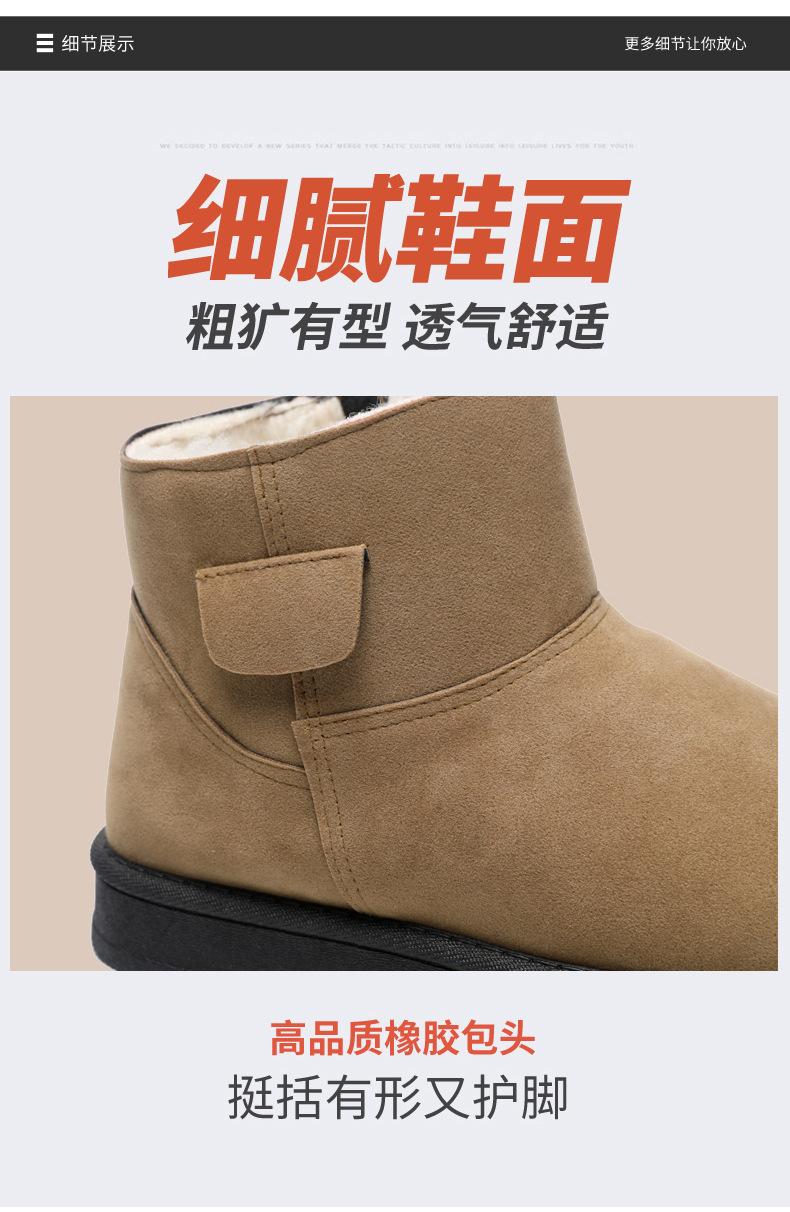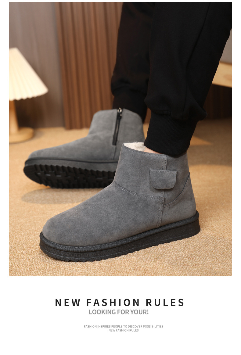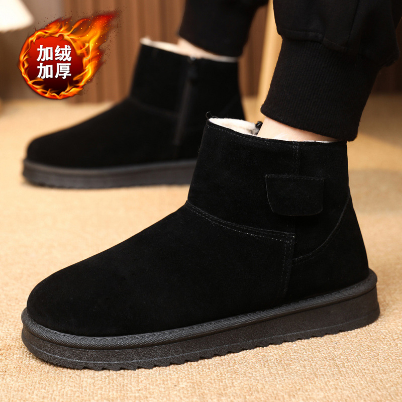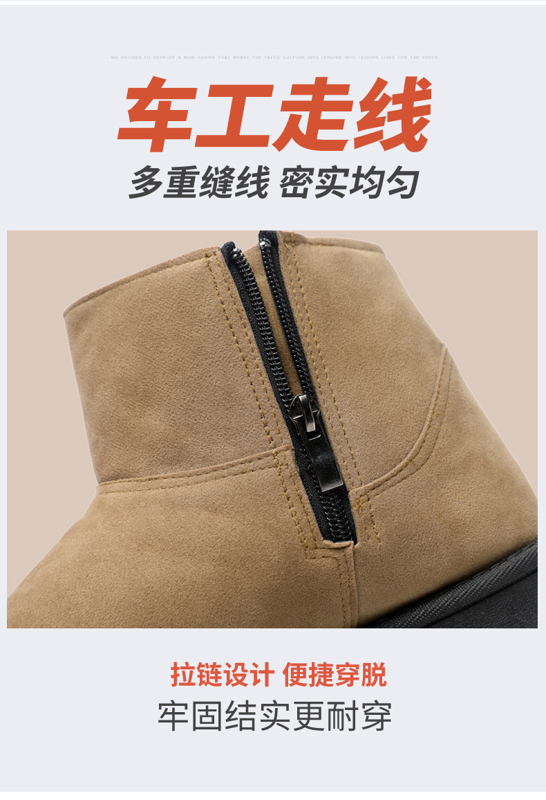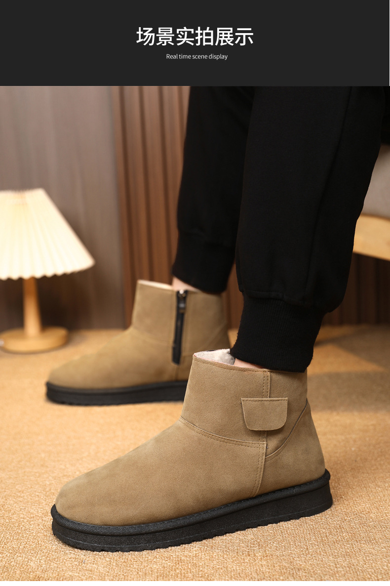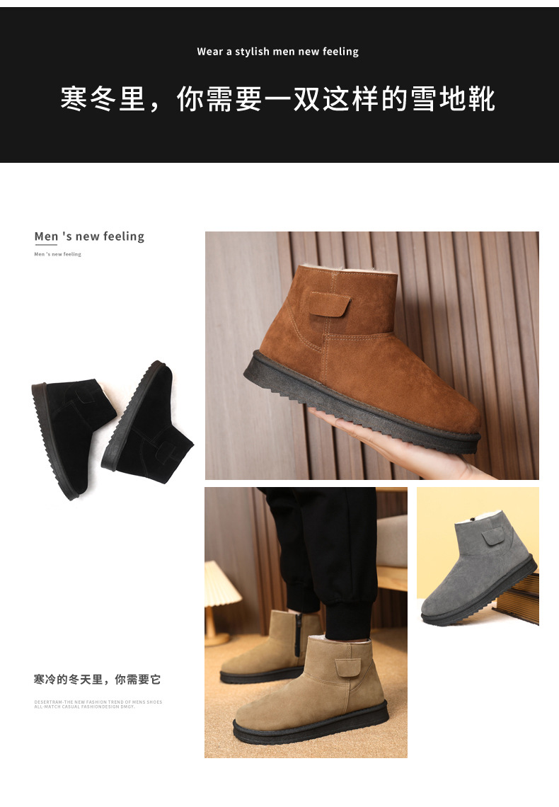 中帮雪地靴网红情侣同款冬季牛反绒防水保暖一脚蹬厚绒保暖男鞋子