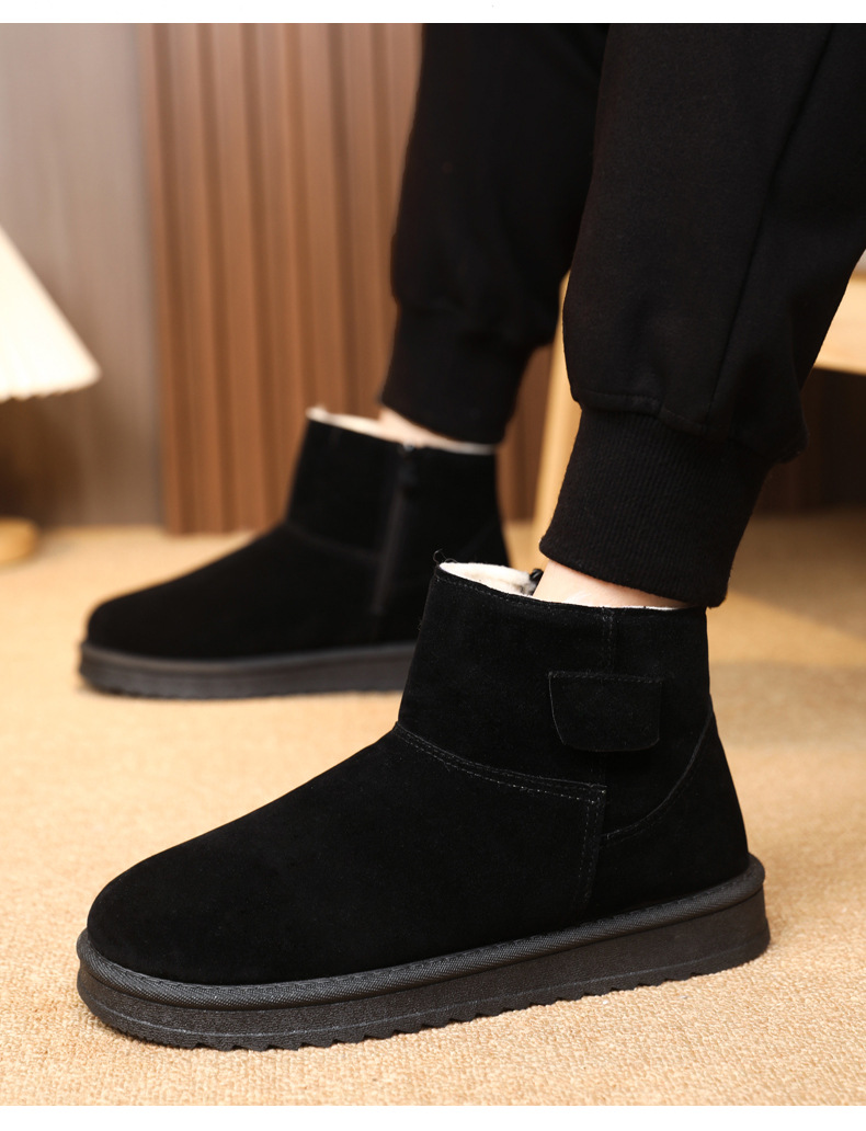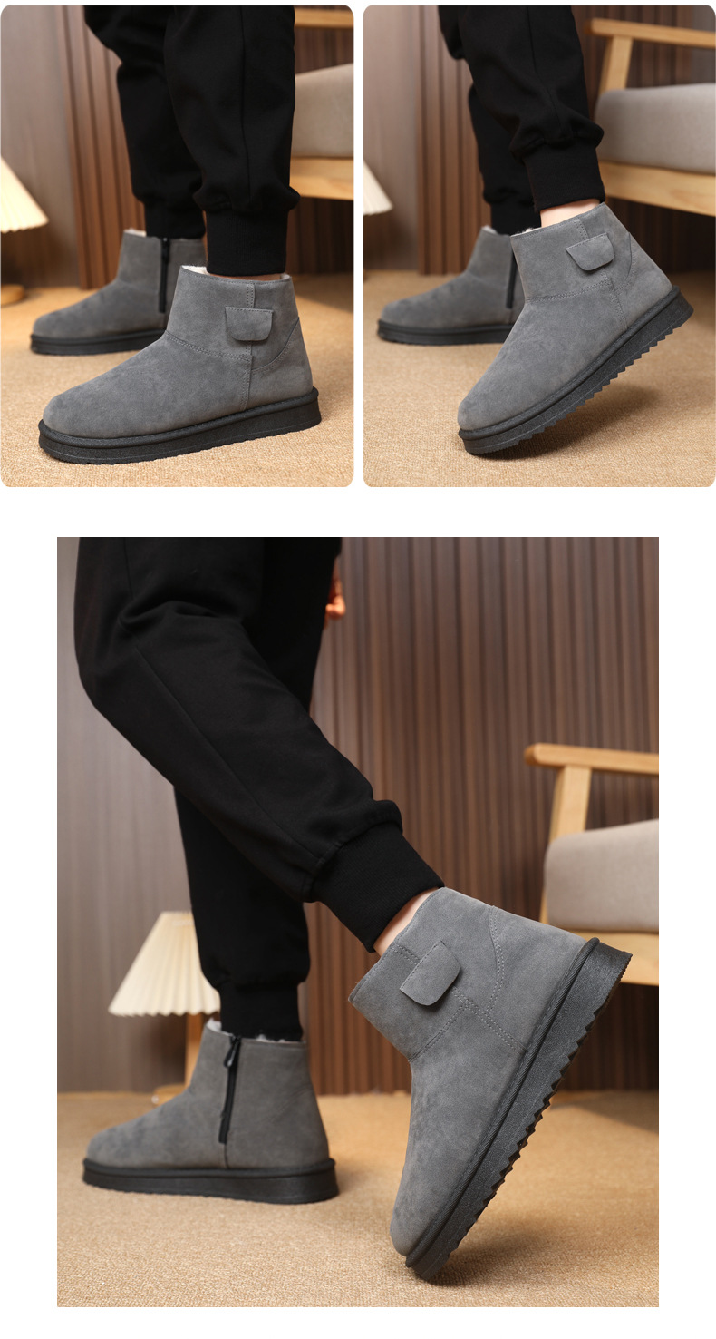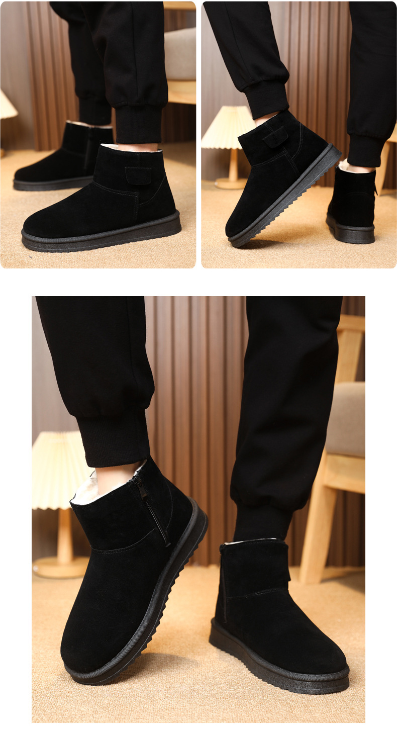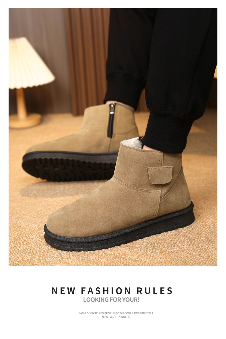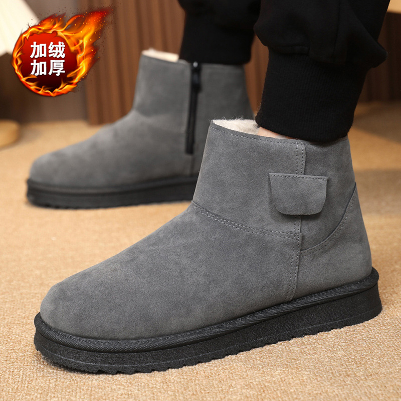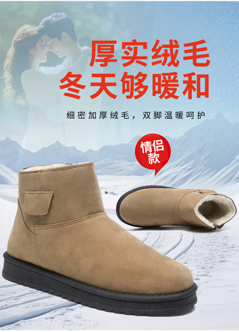 中帮雪地靴网红情侣同款冬季牛反绒防水保暖一脚蹬厚绒保暖男鞋子