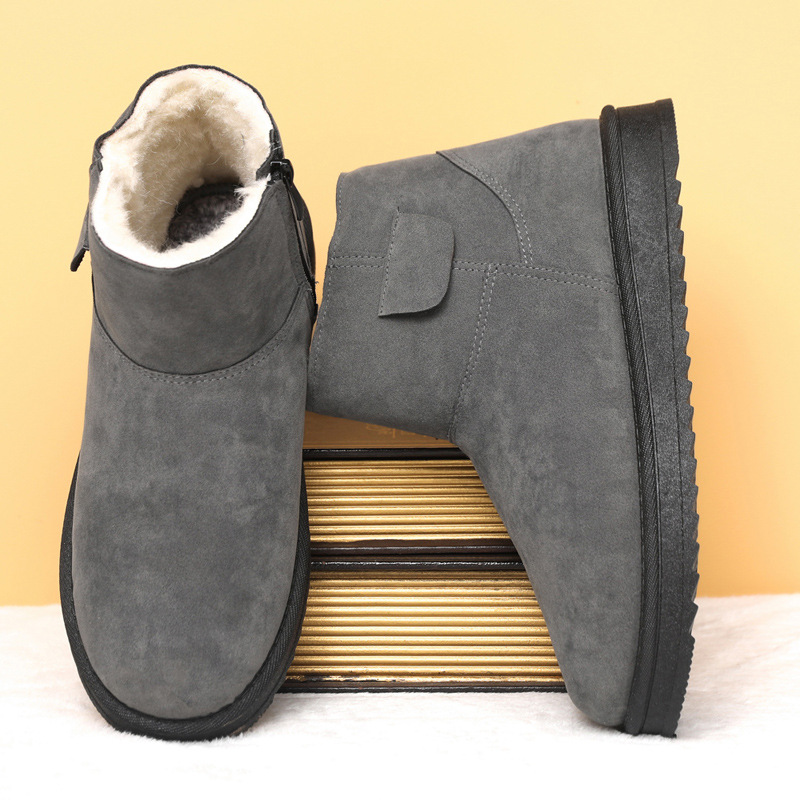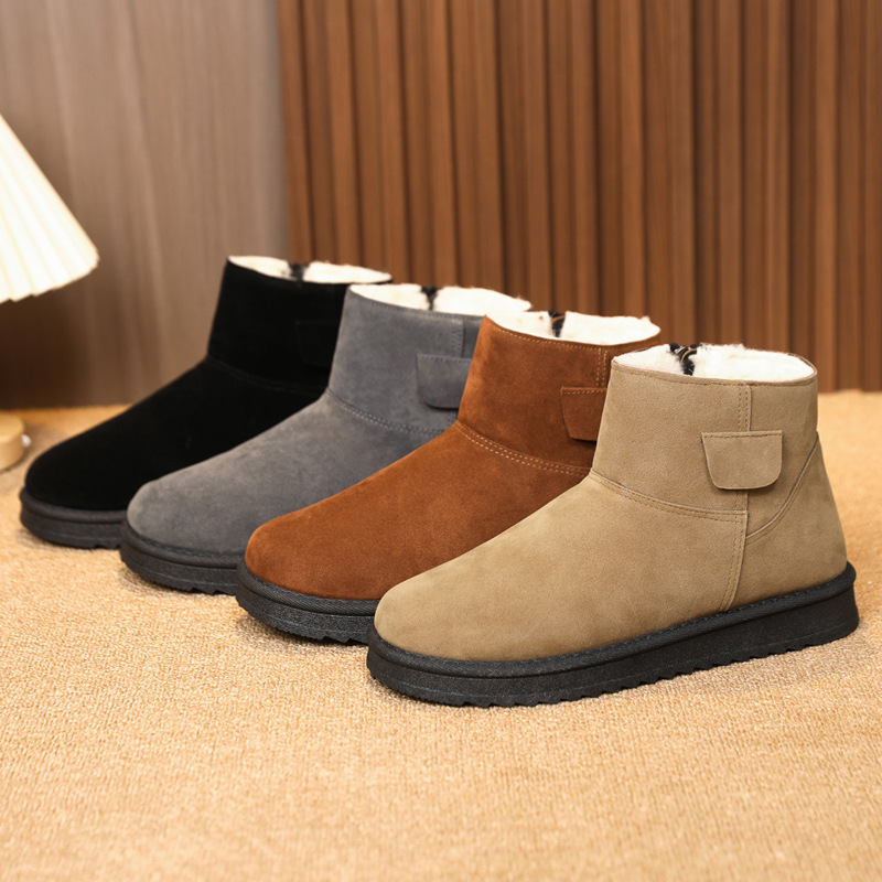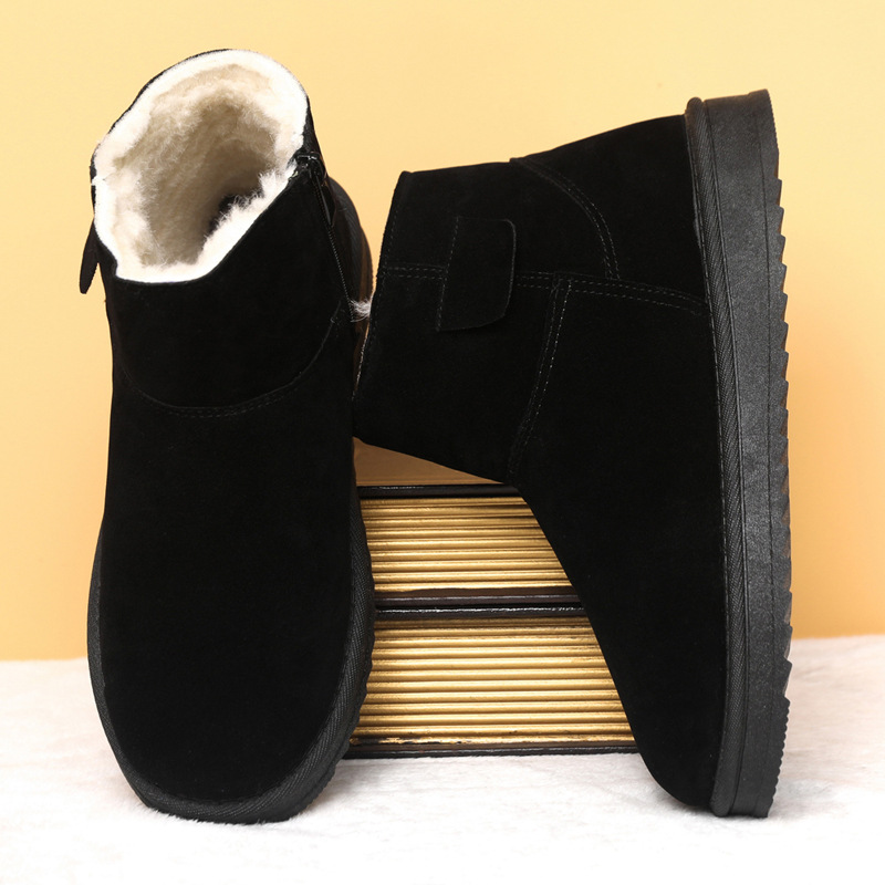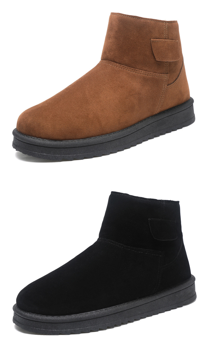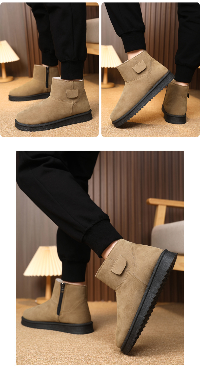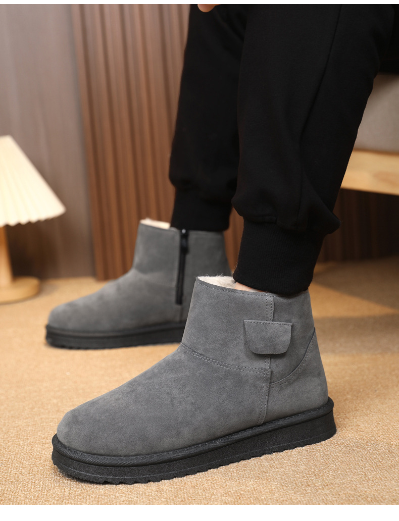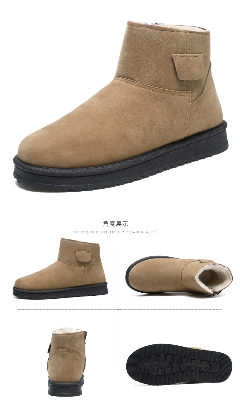 中帮雪地靴网红情侣同款冬季牛反绒防水保暖一脚蹬厚绒保暖男鞋子