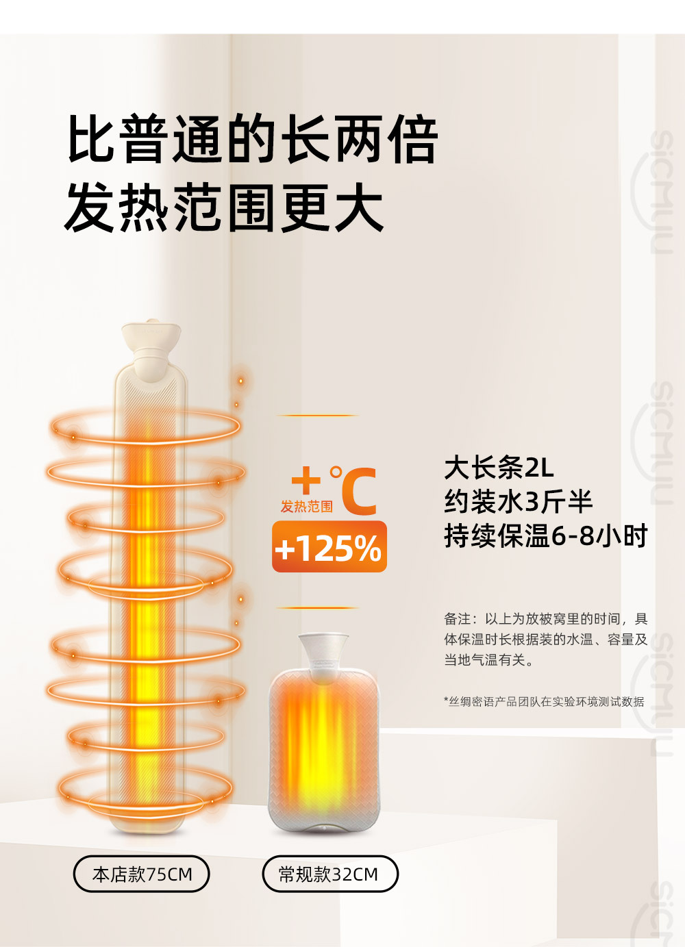 德绒超长款热水袋加长暖水袋特大号注水肩颈暖床暖被窝神器冬季