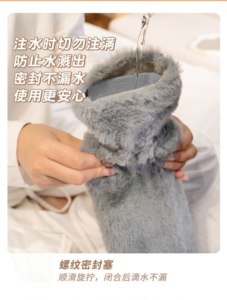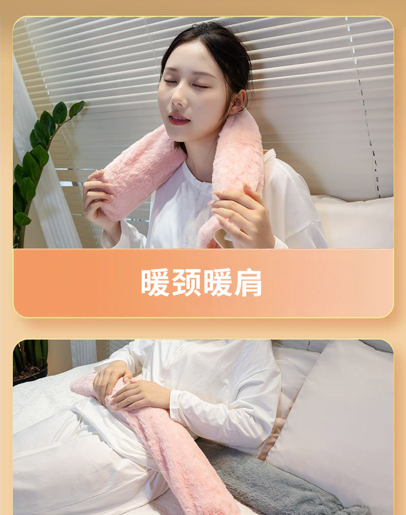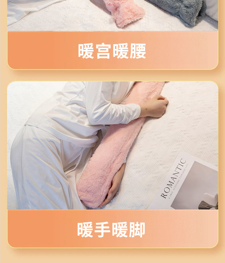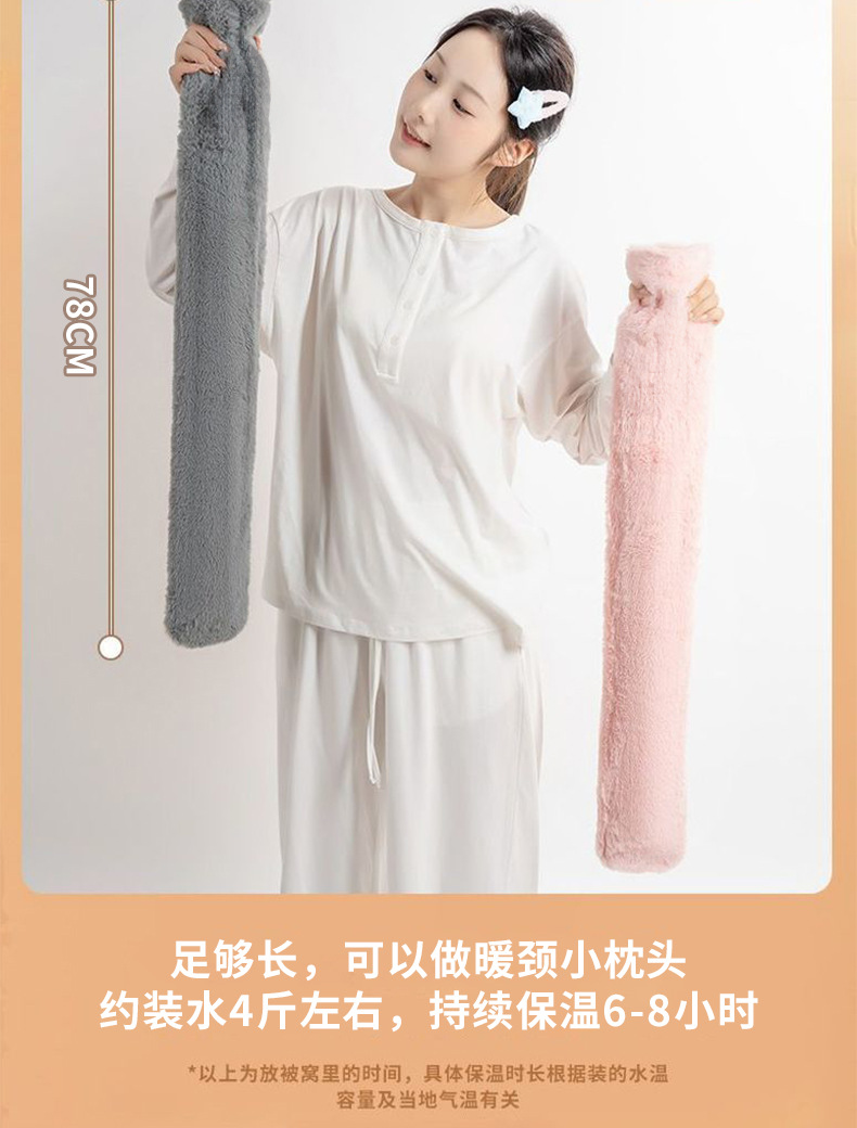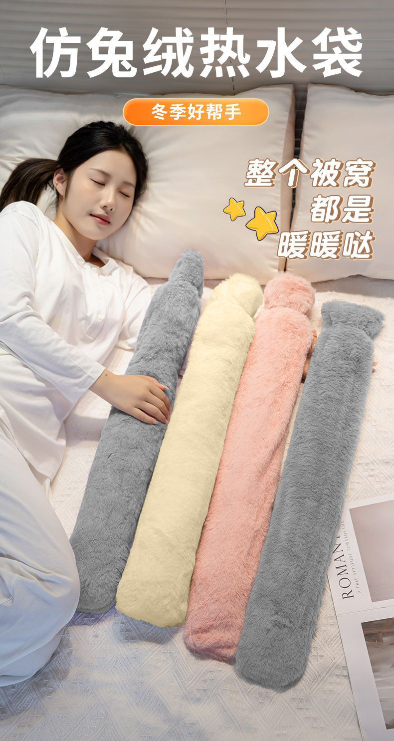 热水袋2024新款长条注水热水袋大号毛绒暖被窝神器送女生暖脚神器
