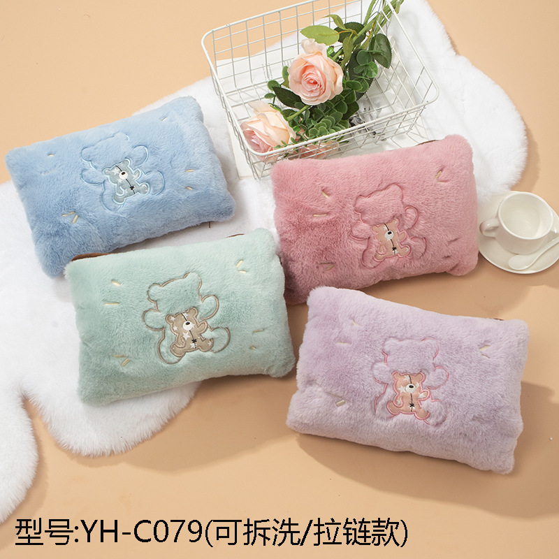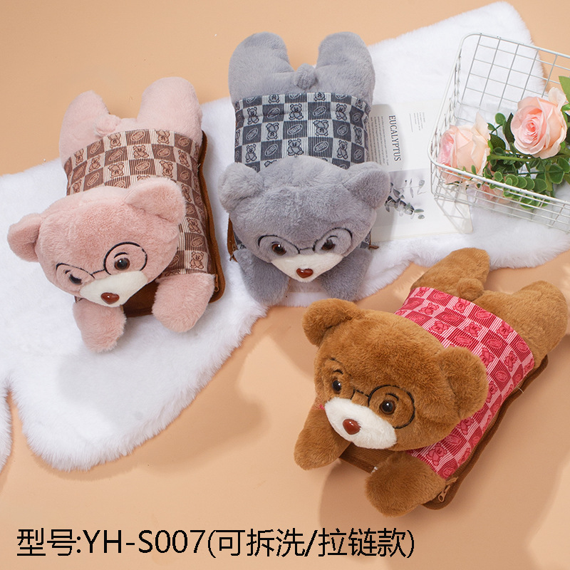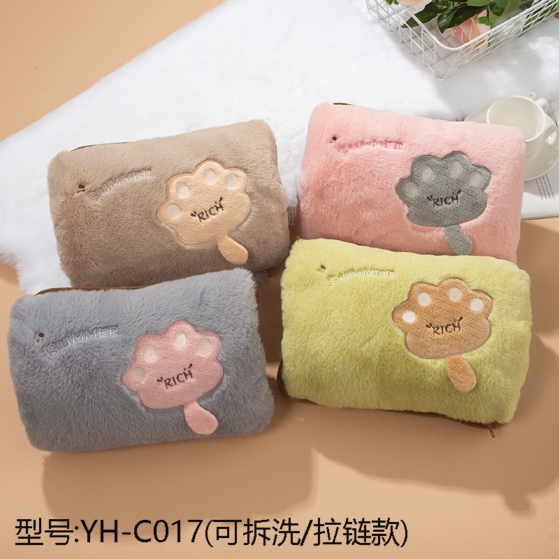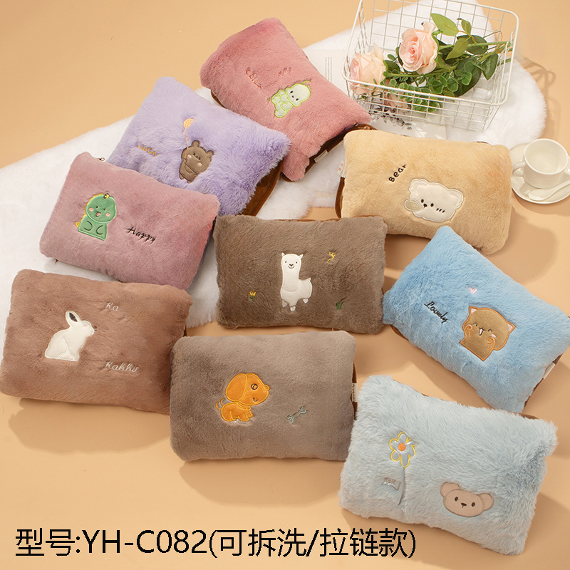 厂家批发新款充电热水袋卡通电暖宝带拉链可拆洗暖手宝毛绒暖手袋