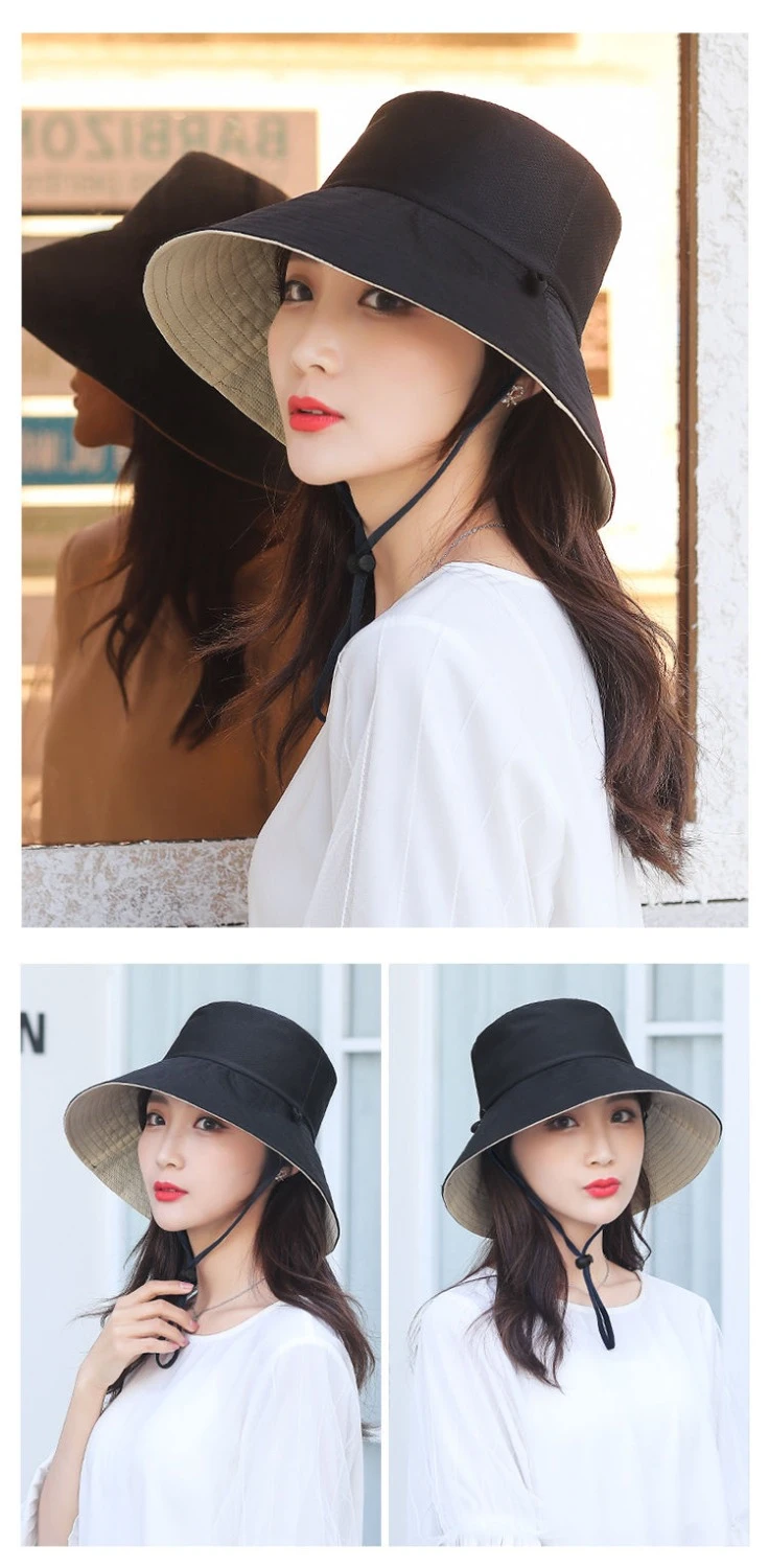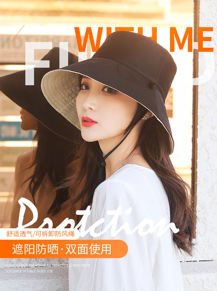 夏天渔夫帽女遮脸韩版防晒紫外线遮阳帽子大沿潮百搭日系夏季时尚