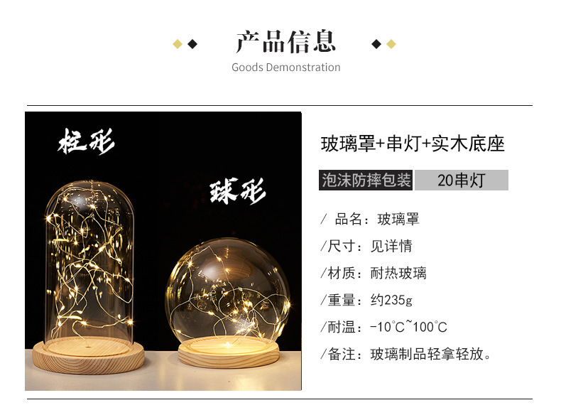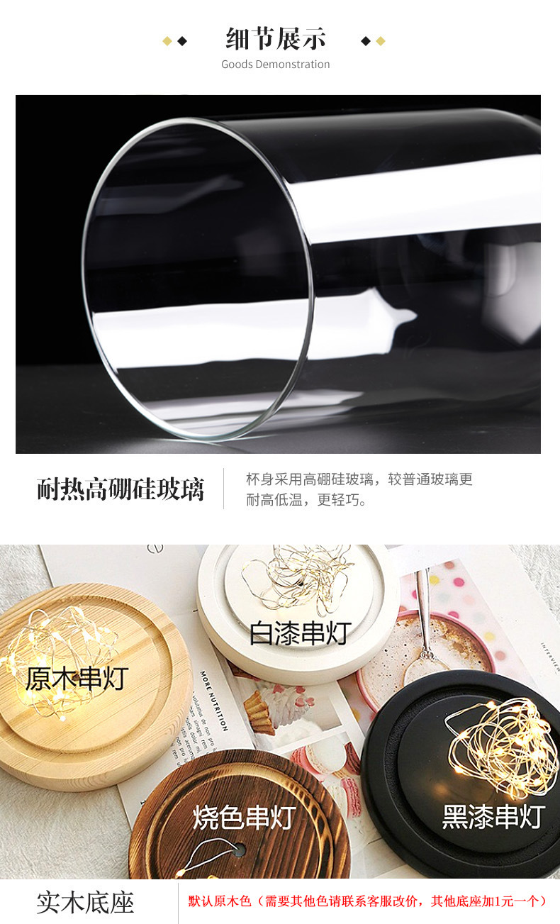 | cylindrical 8*18 glass cover +[20 string wooden base]](柱形8*18玻璃罩+【20串灯木底座】) | USD $2.0 | 99967 piece available |
