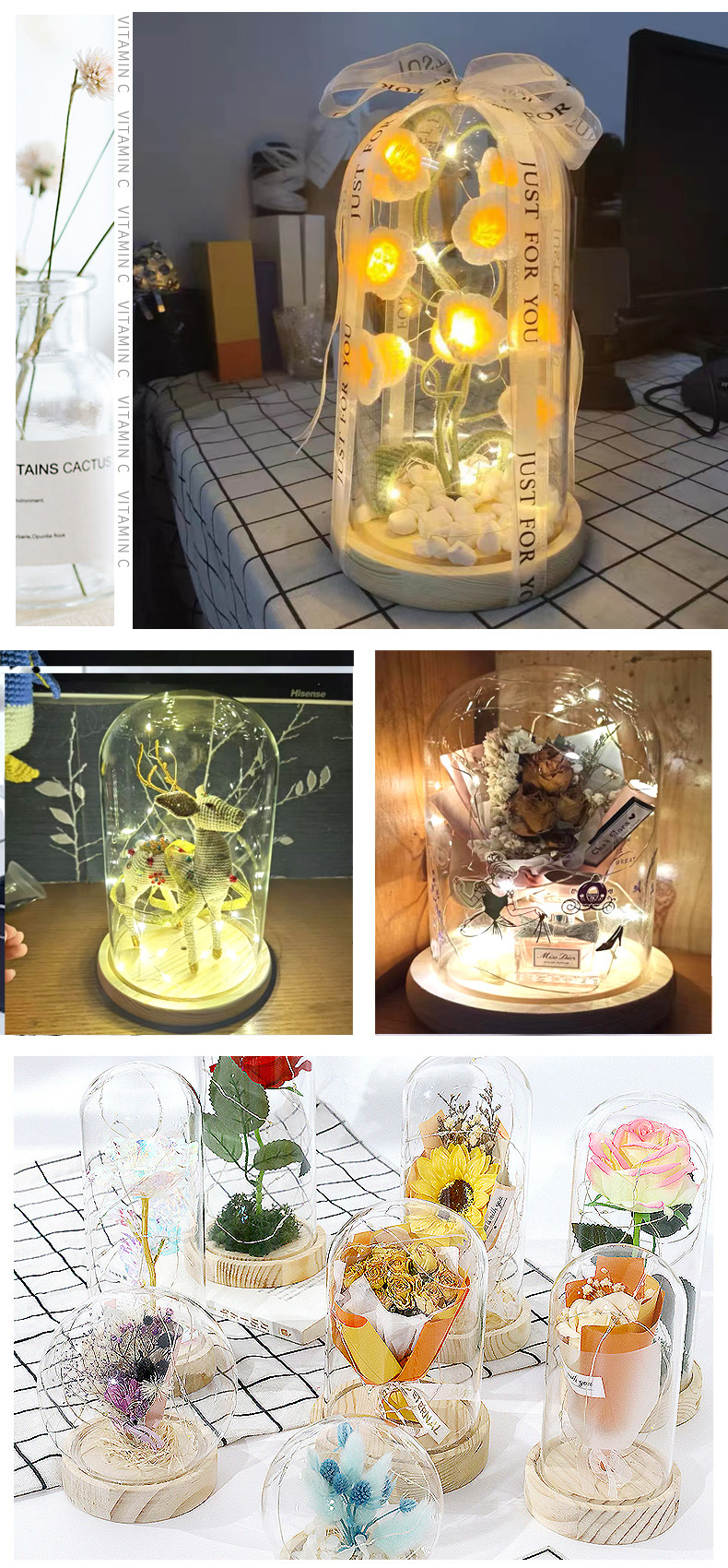 永生干花玻璃罩子海胆串灯底座手办模积木透明展示防尘罩桌面摆件