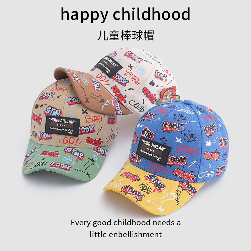 儿童棒球帽春秋季新款涂鸭宝宝帽子女童时尚百搭遮阳鸭舌帽男童